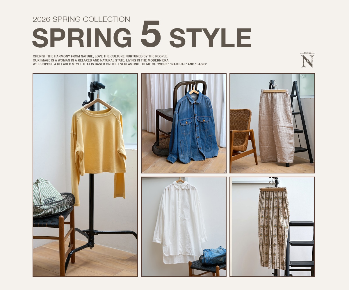 恒久的テーマ "WORK" "NATURAL" "BASIC" をベースにフェミニンなリラックススタイルを提案します。