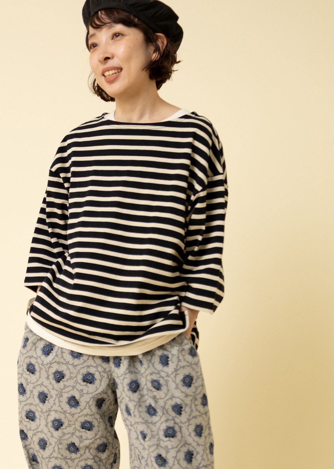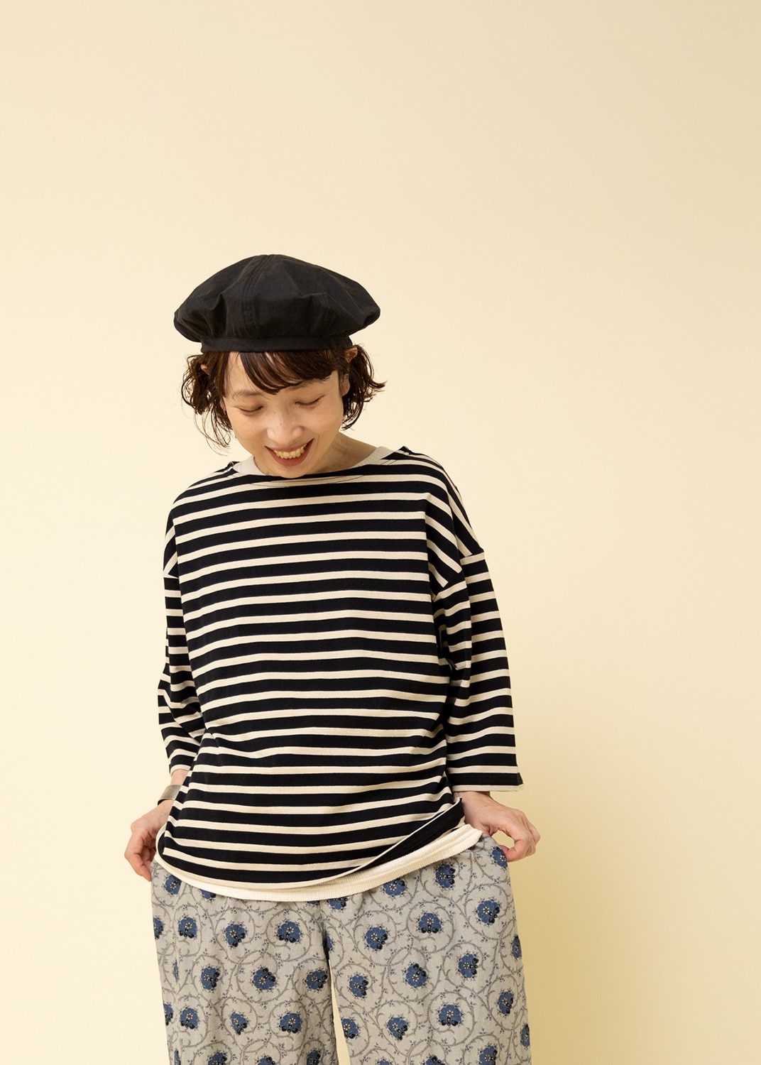RNA-NM2431 コットンボーダーハーフスリーブバスクT(F クロ/キナリ)¥5,500(29%OFF)¥7,700 -