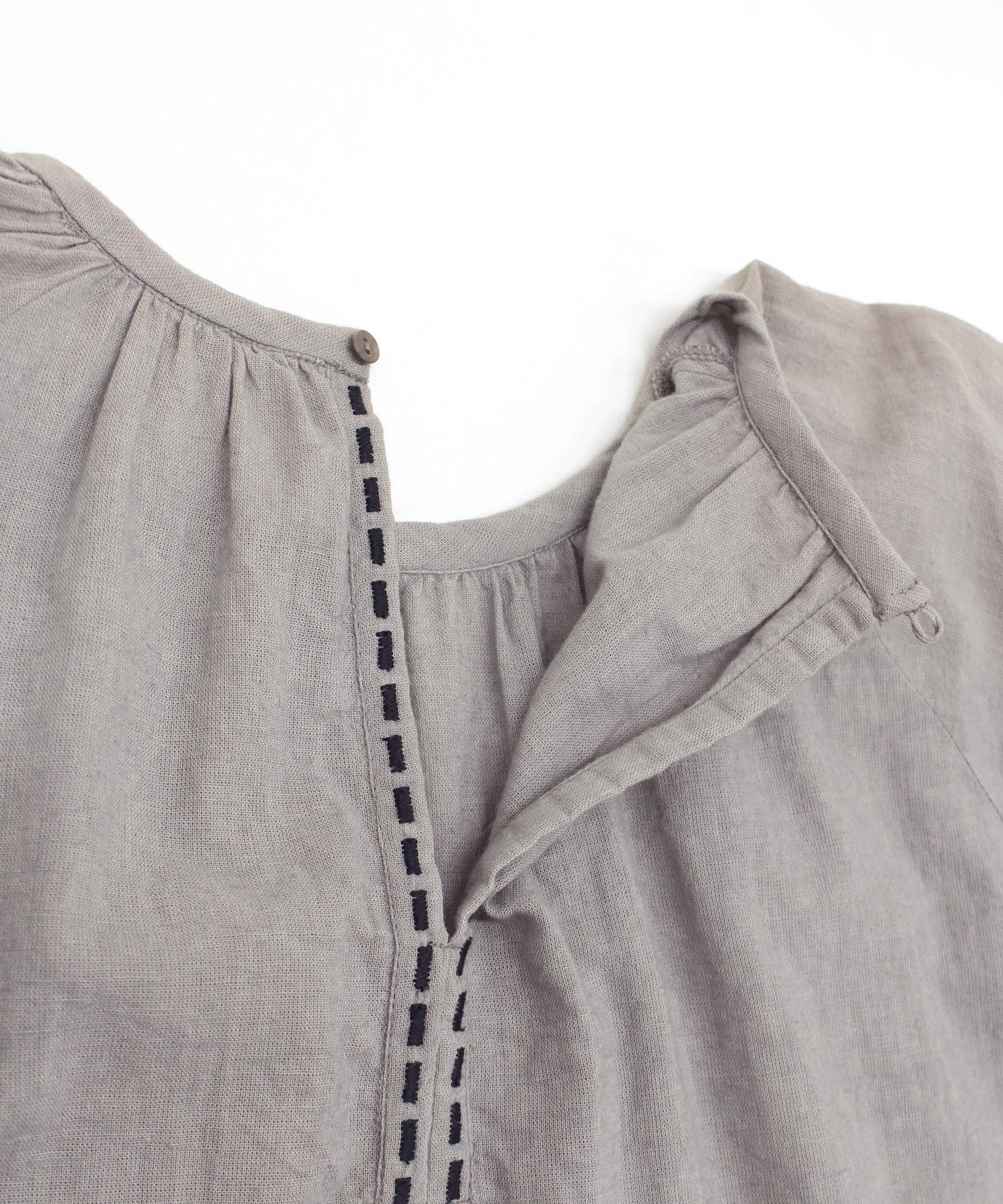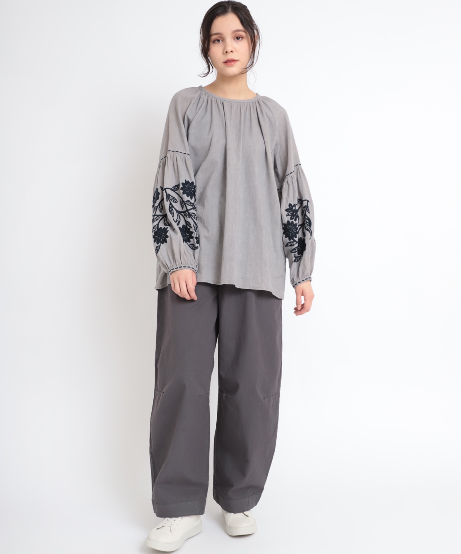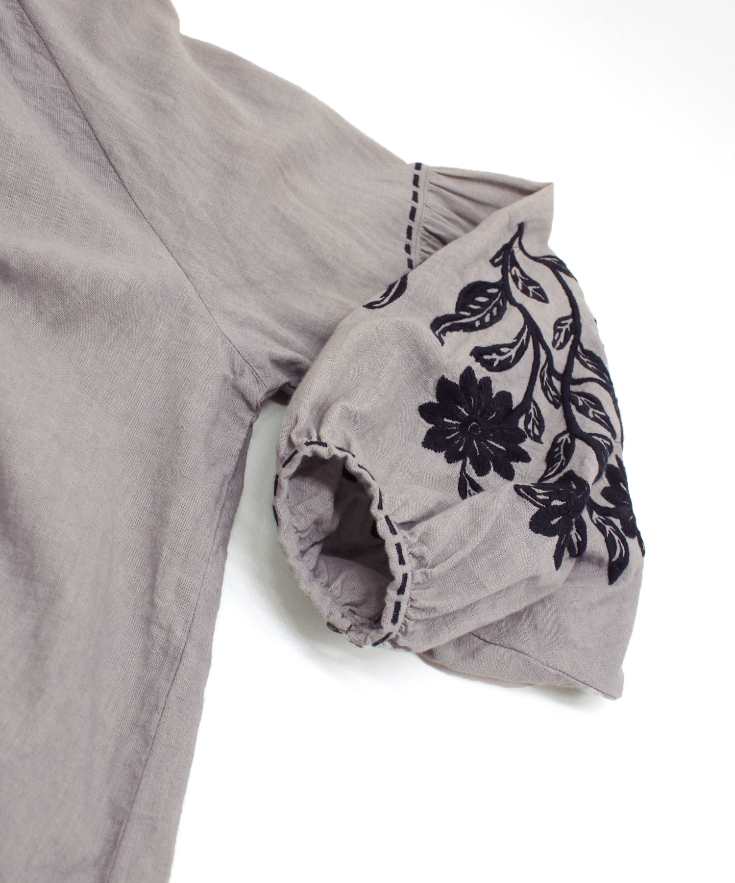 袖に大胆に入れたざっくりとした刺繍が特徴です。