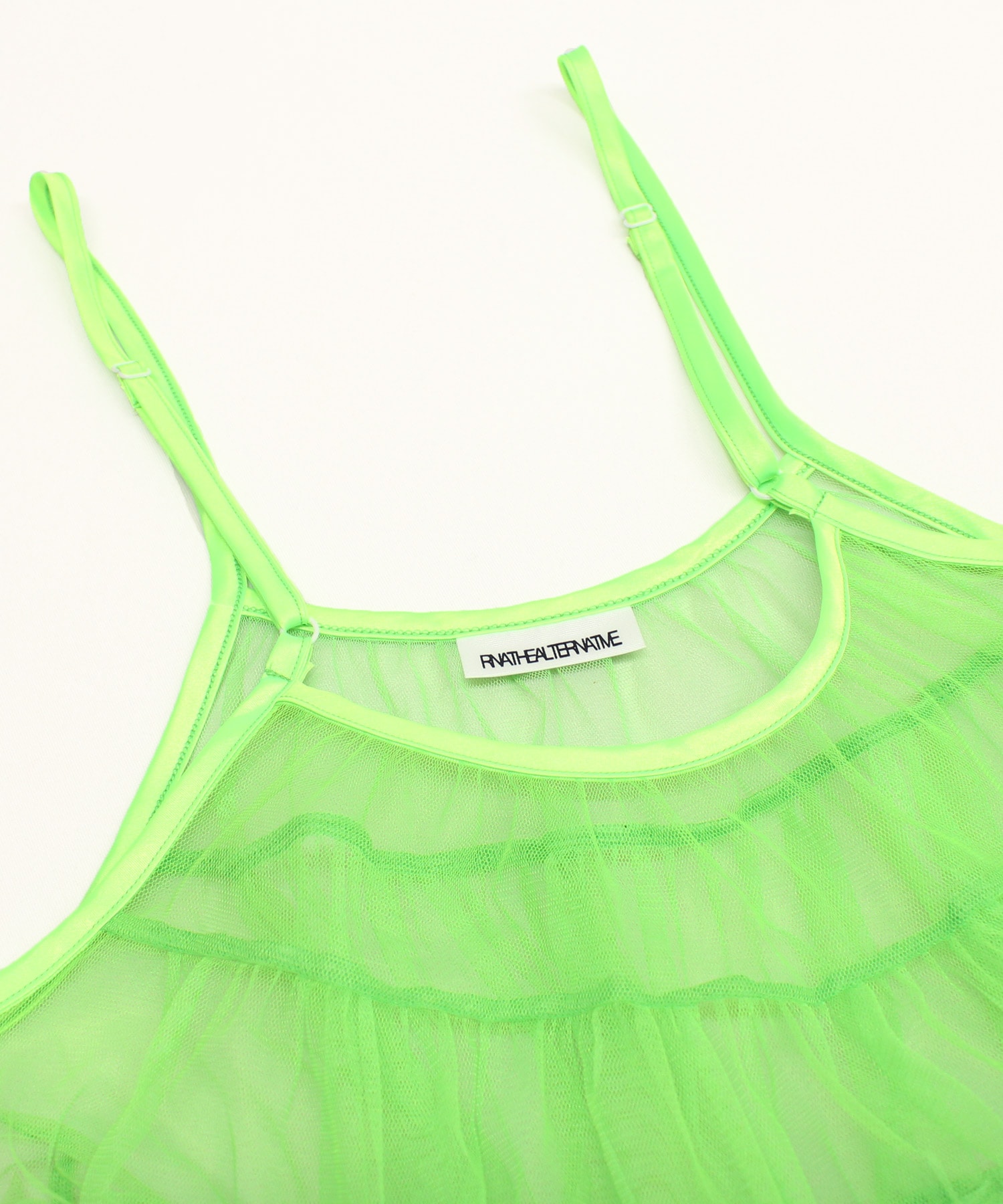 ボリュームたっぷりなシルエットがトレンド感のあるメッシュ素材のチュールキャミソールです。