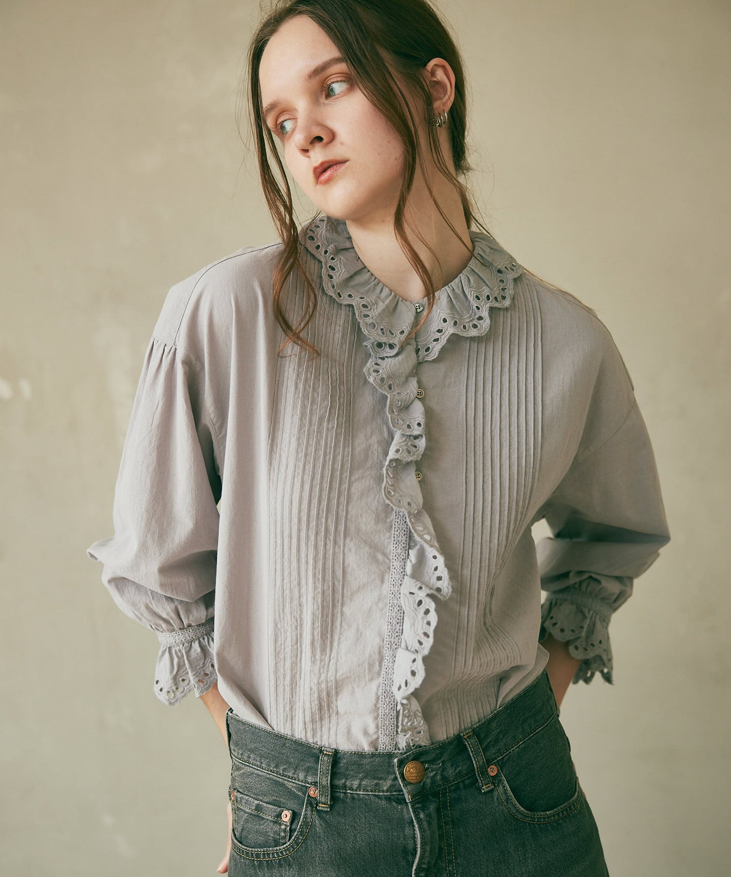 幅広のレースは、レース端に涙型のアイレットが並んでいる華やかな柄のレースです。