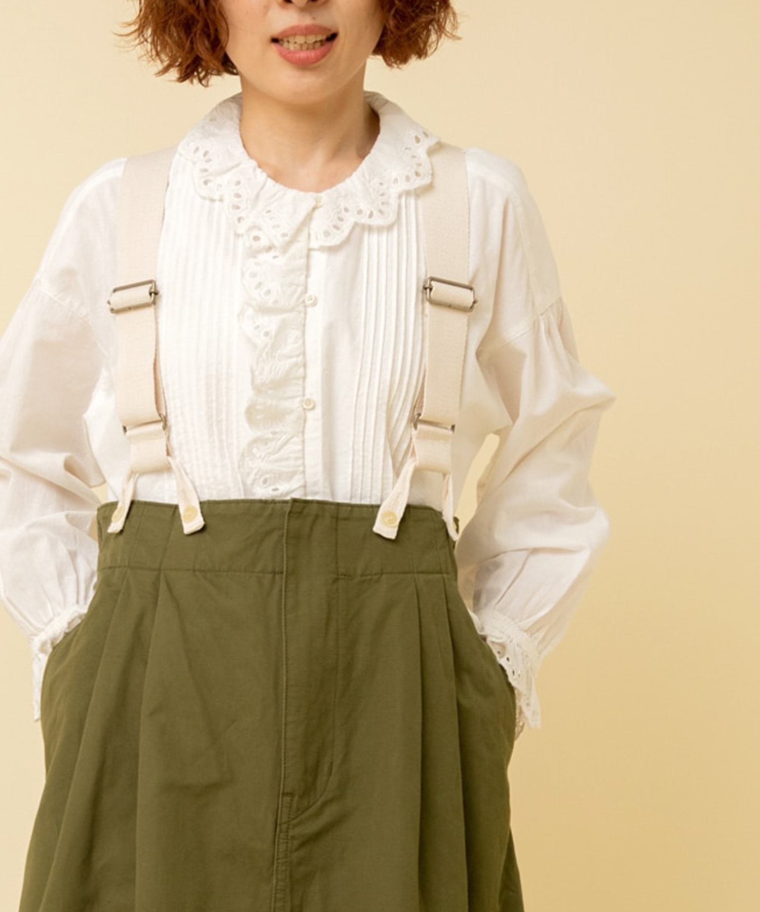 ワークパンツやオーバーオールなどのワークアイテムとも相性抜群です。