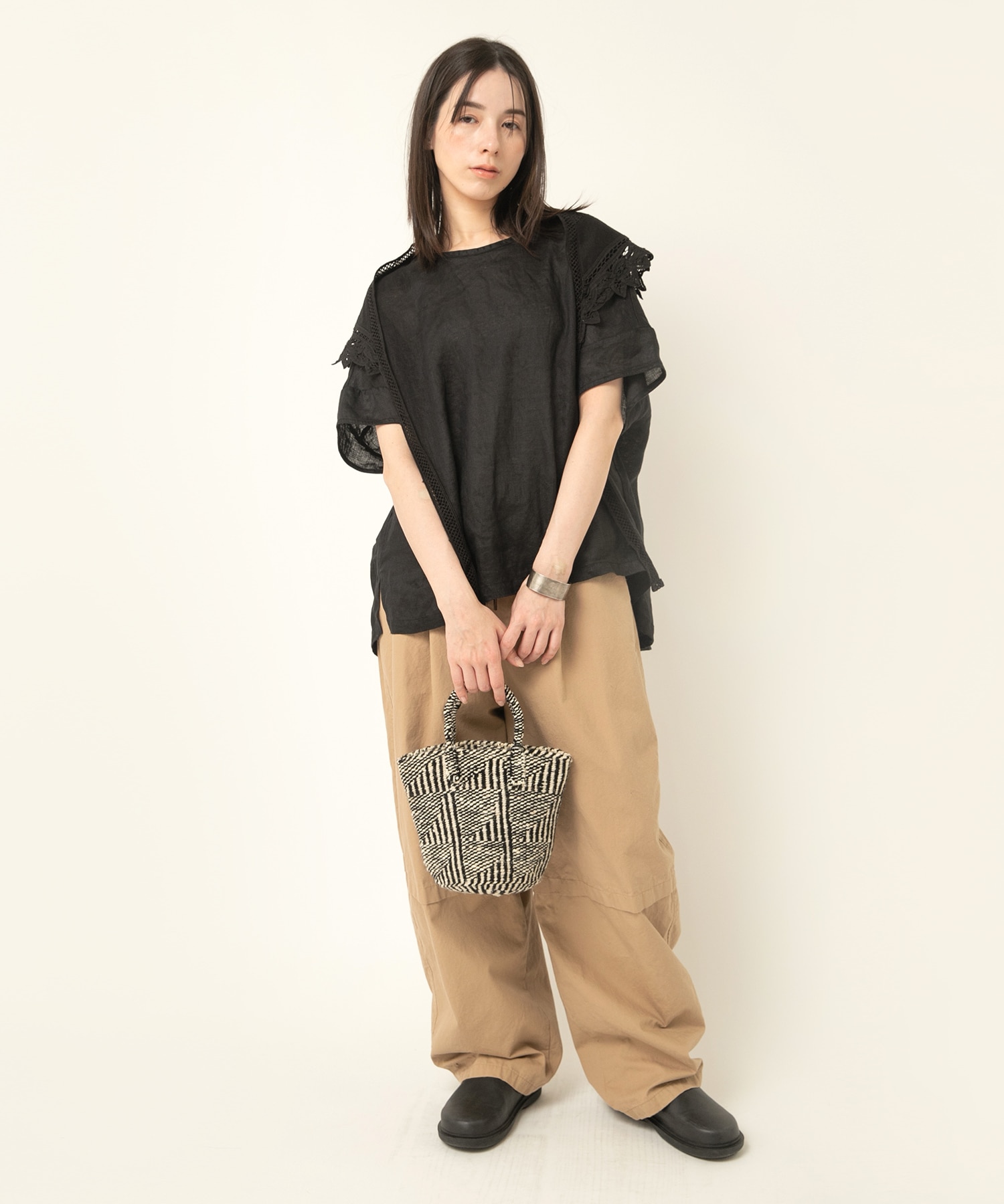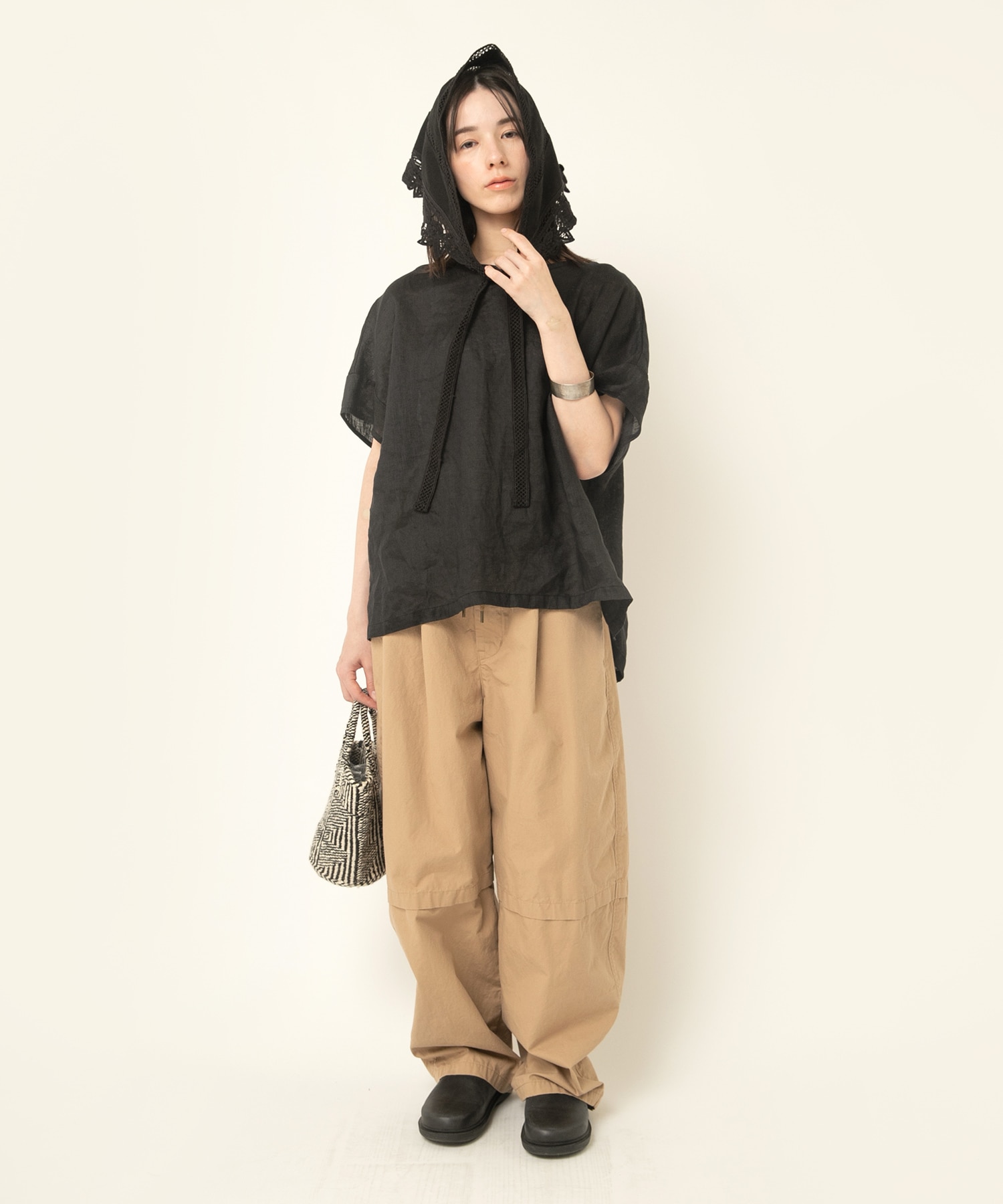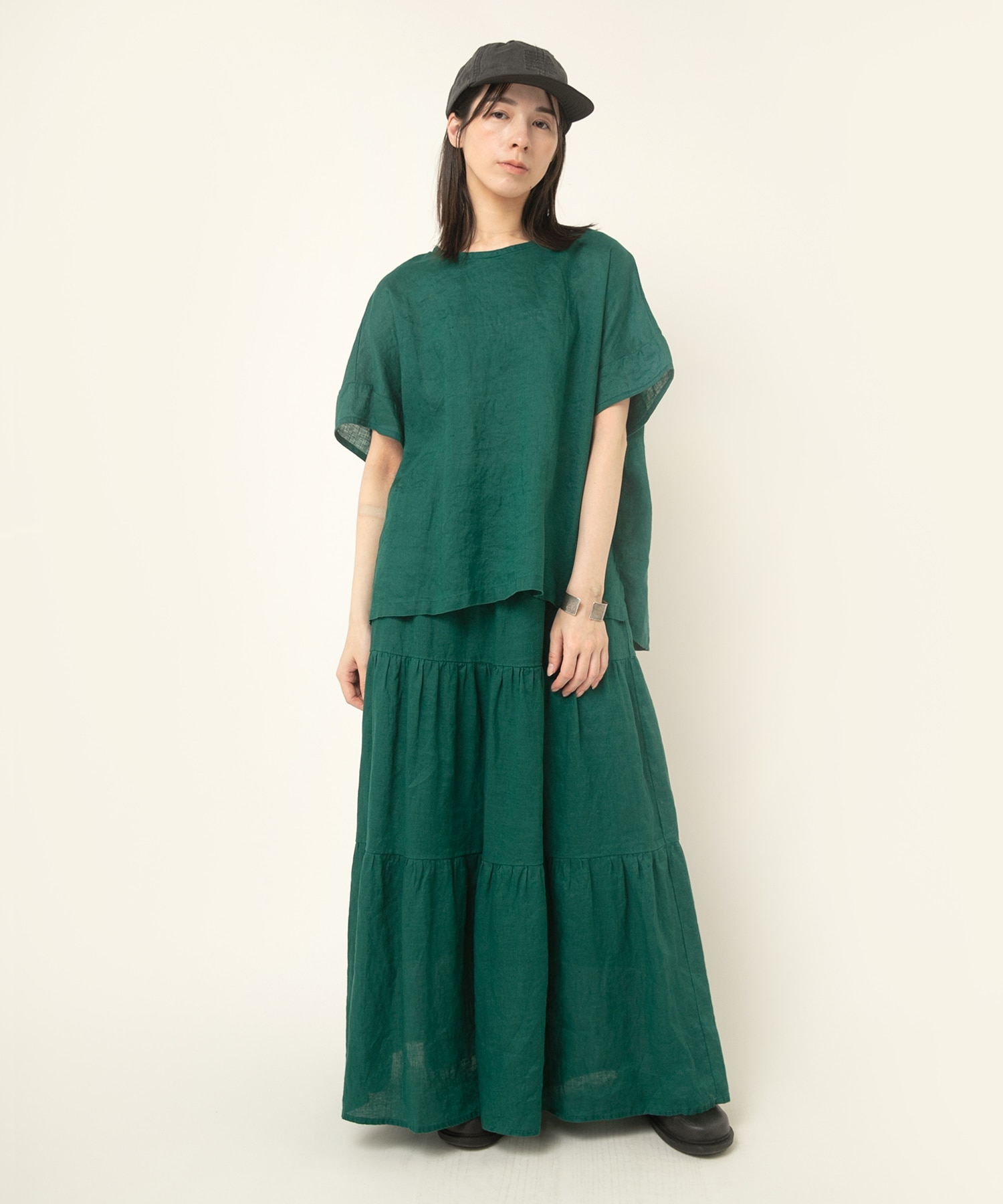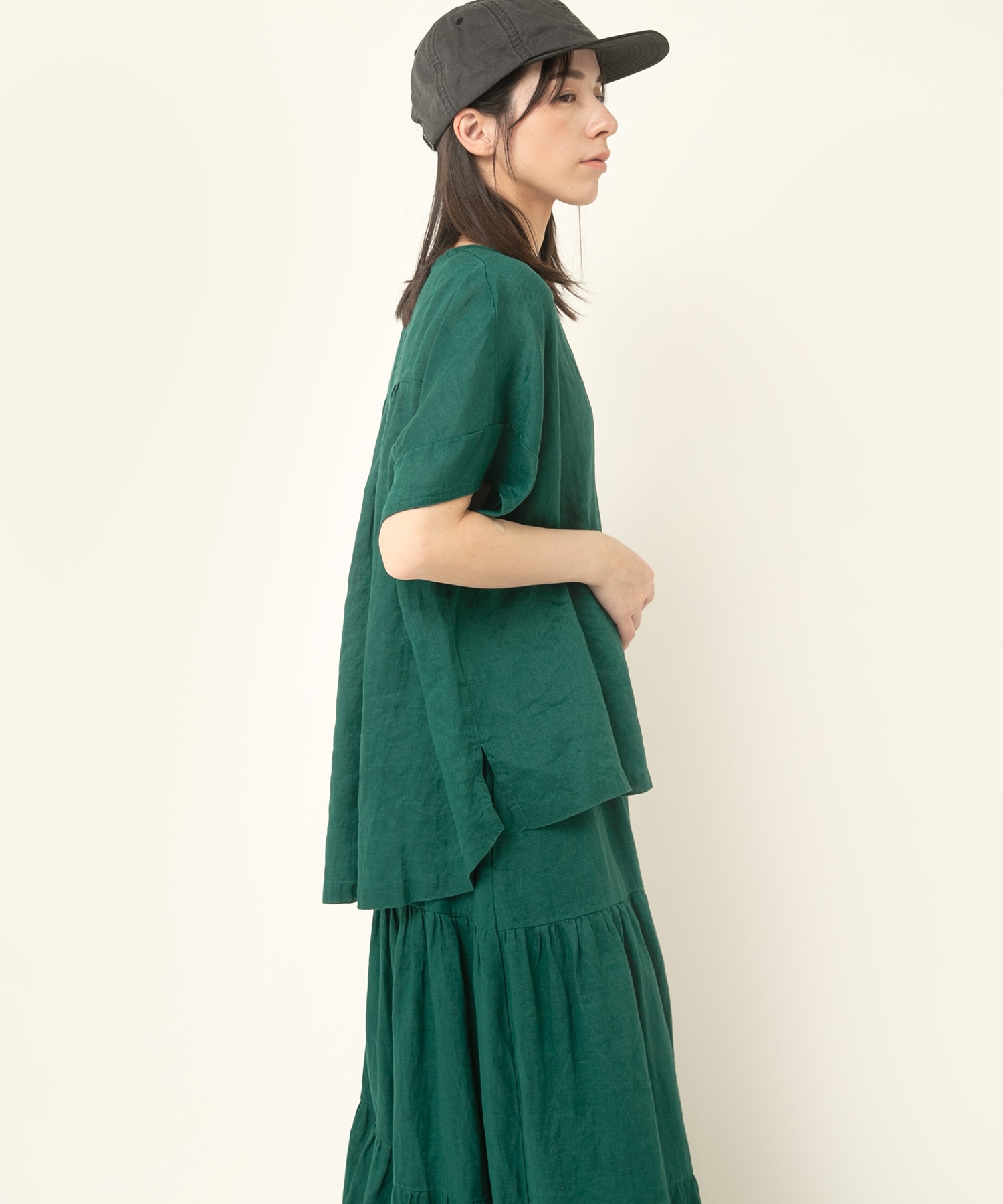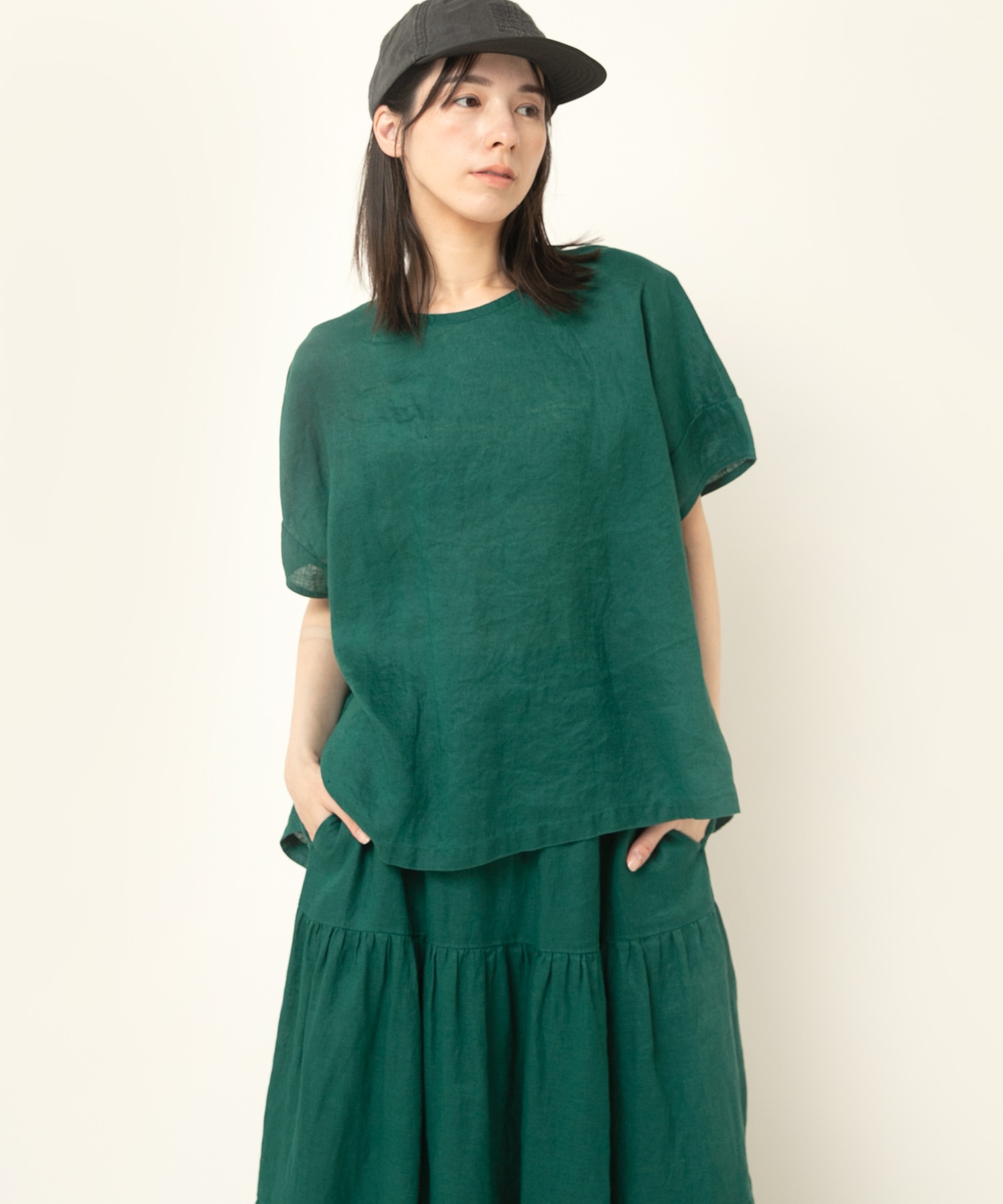 肩線を大きく落としたブラウスは肌離れがよく、これからの暑い時期にさらりと着れるアイテムです。