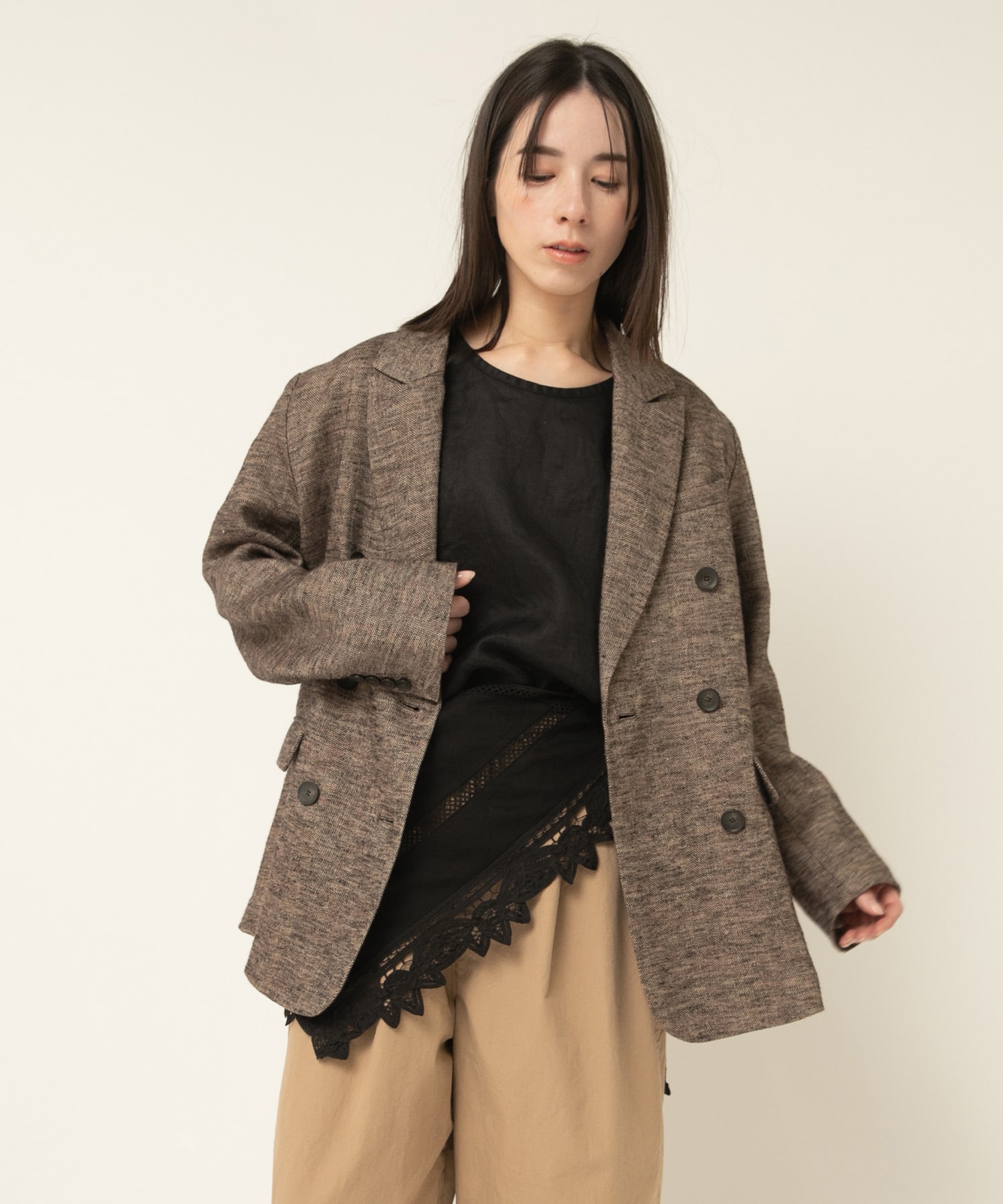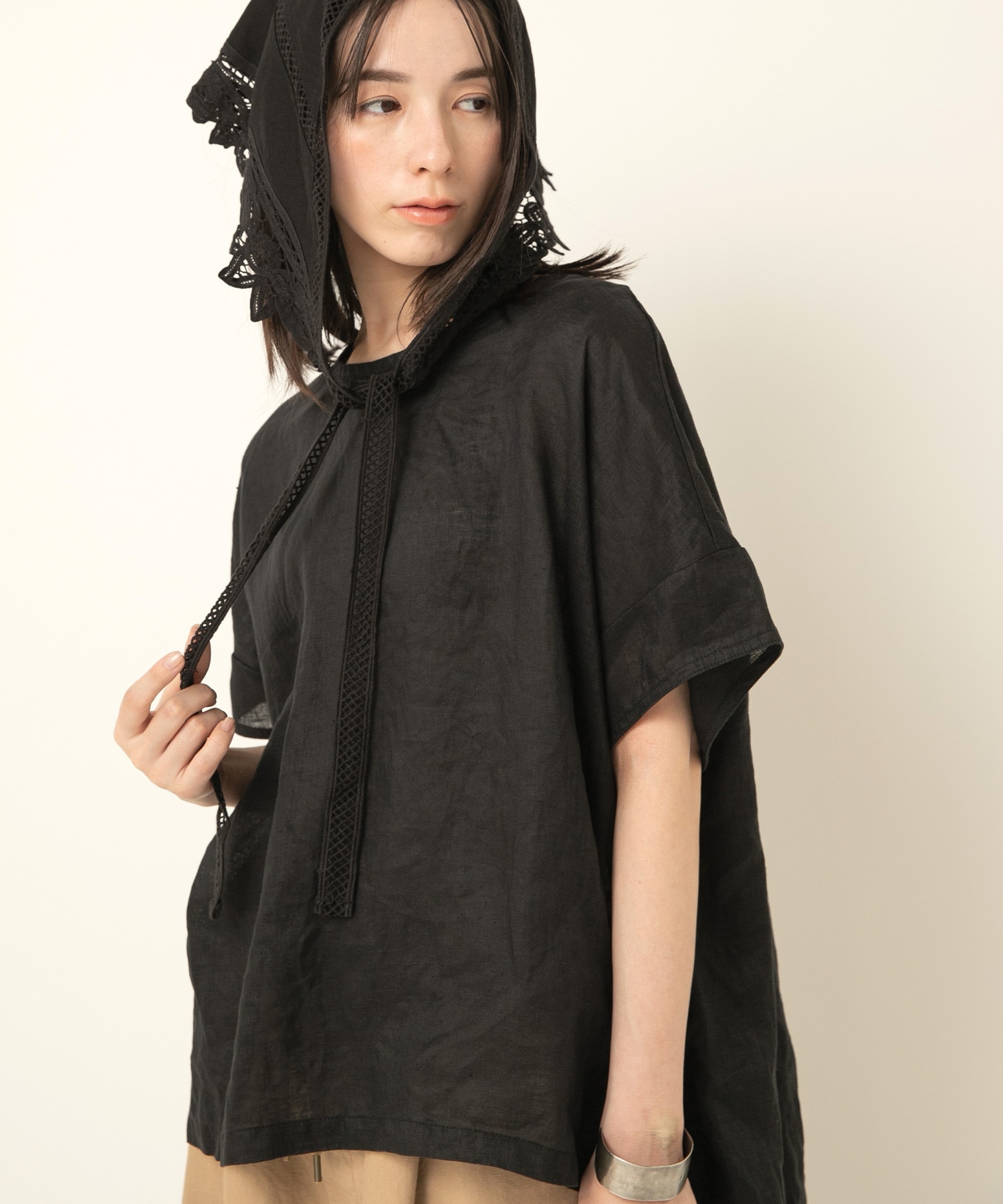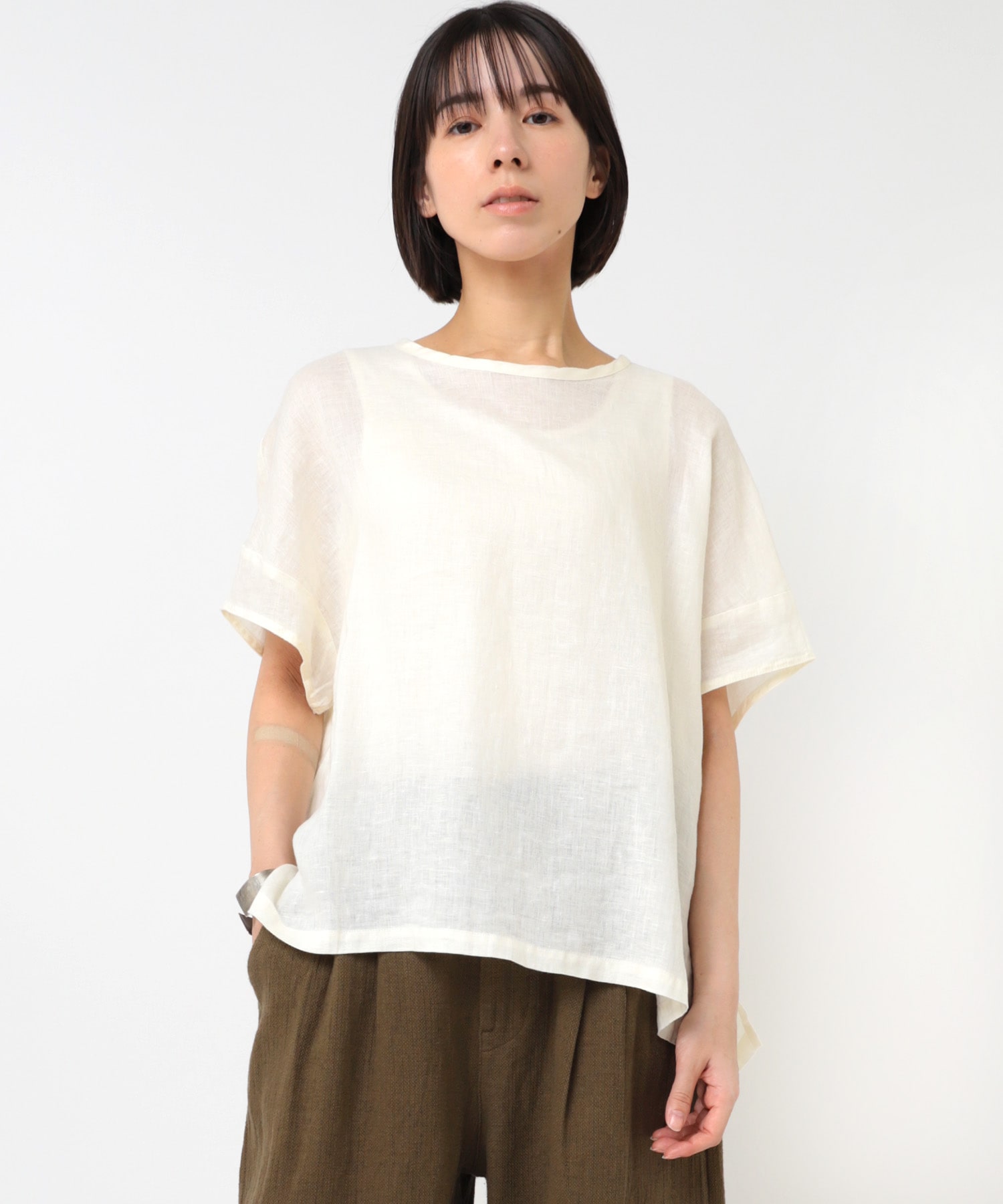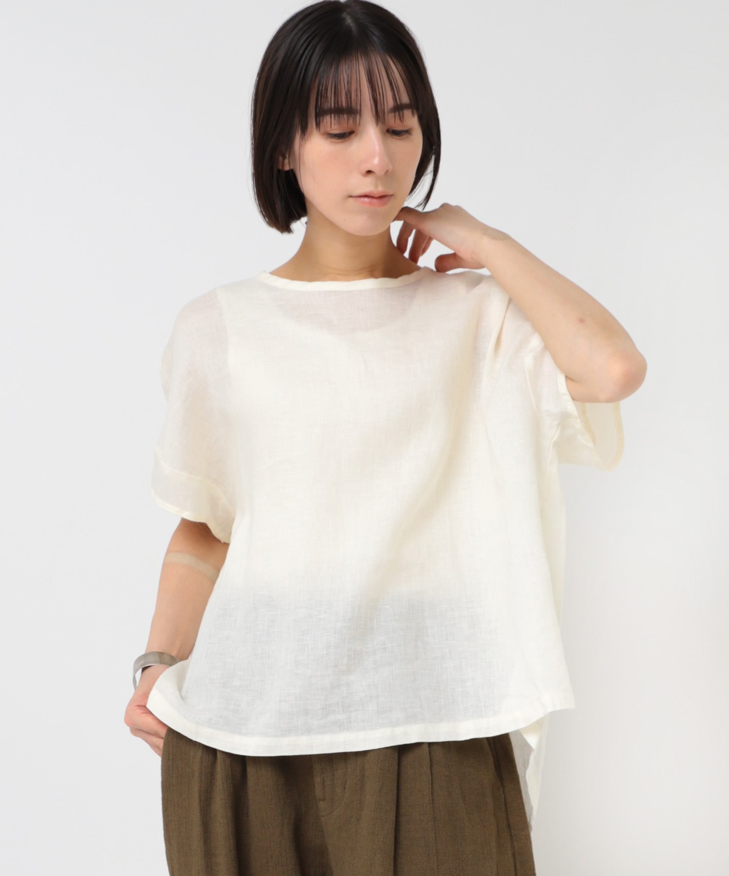 リネン特有の透け感が上品なブラウス。
