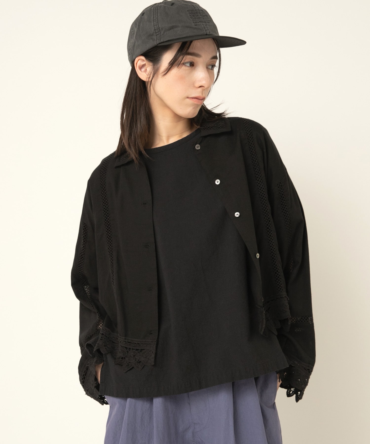 糸や生機本来のふくらみとナチュラルな質感を表現するために、現在では使用頻度の少なくなったウインス染色機をあえて使用して染色した、特別な生地を使ったブラウスです。