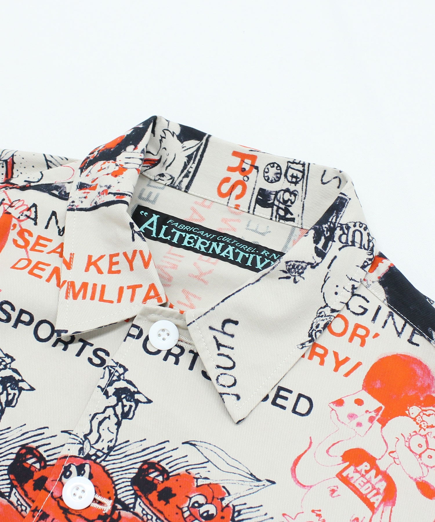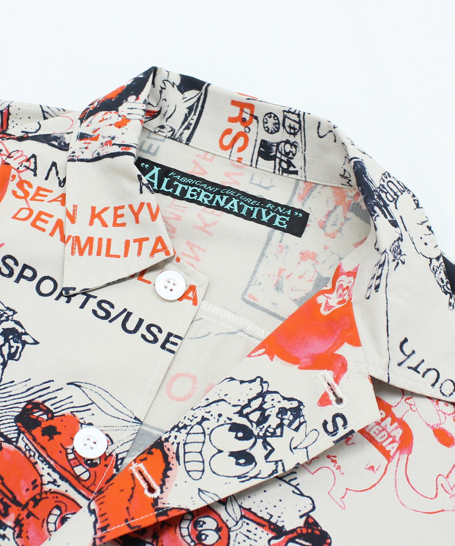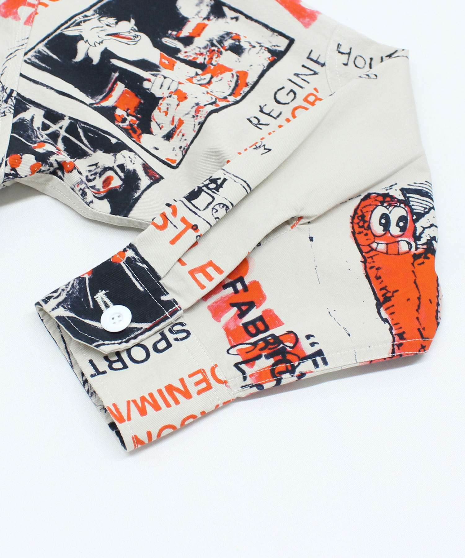 丁寧にハンドドローイングされた落書き柄のシャツ