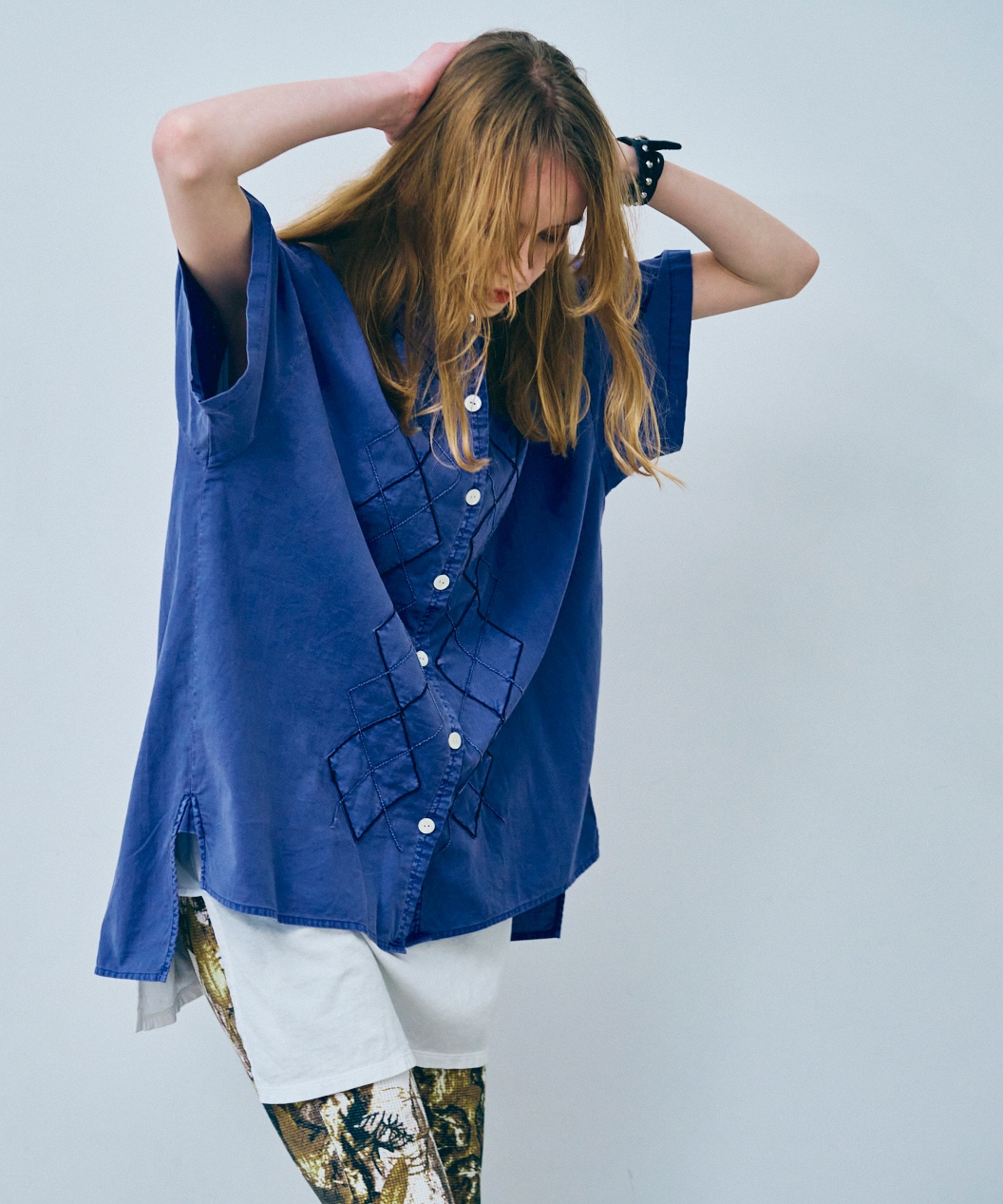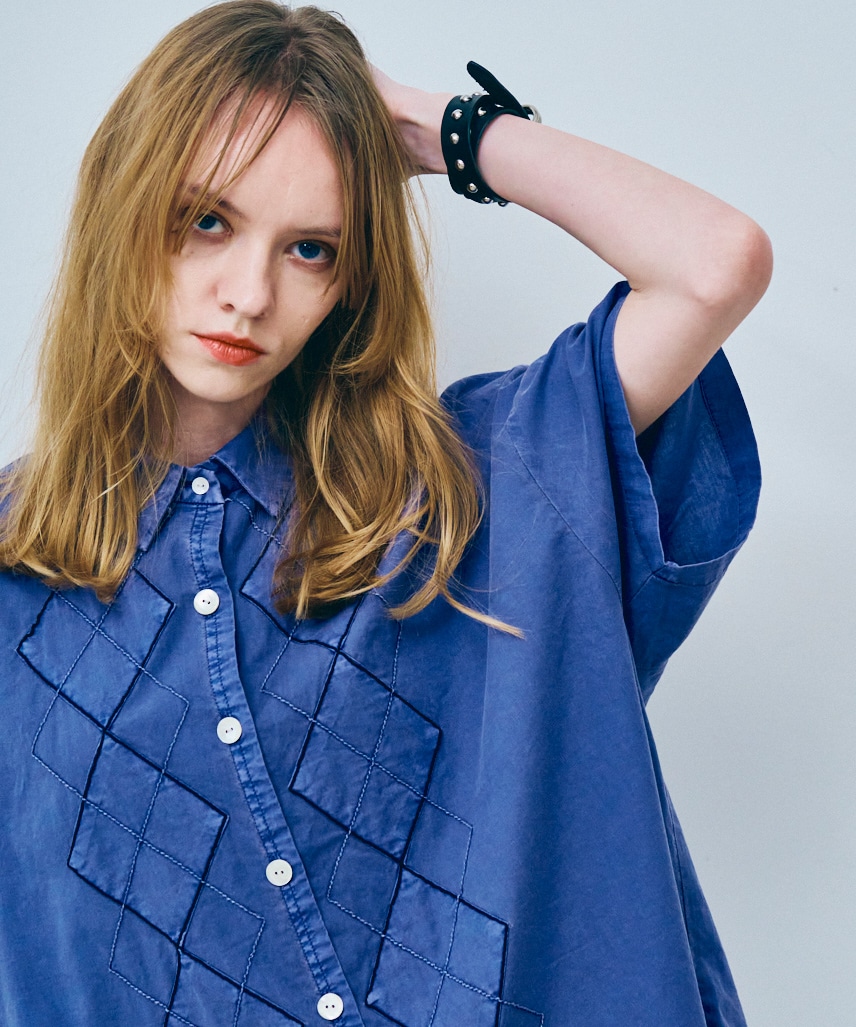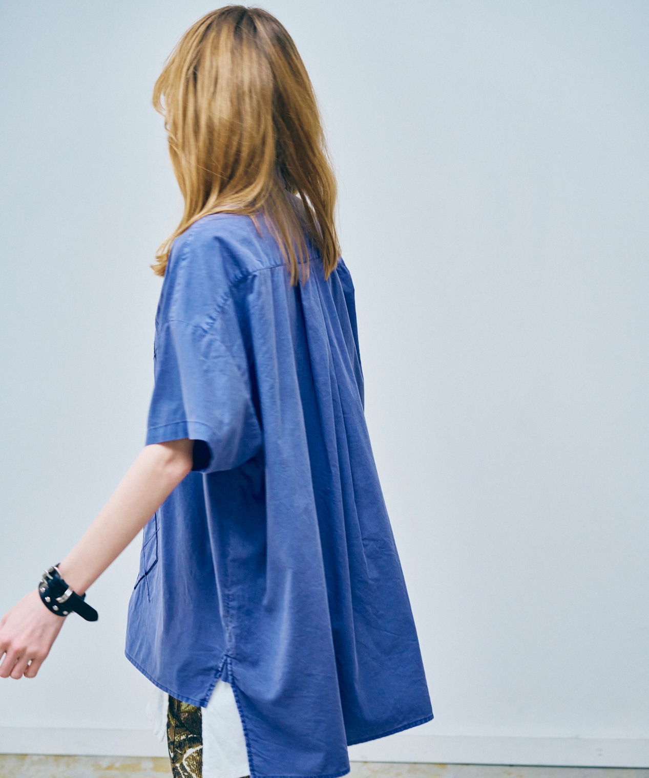 やや小ぶりな襟とオーバーサイズのルーズシルエットが雰囲気のあるシャツ