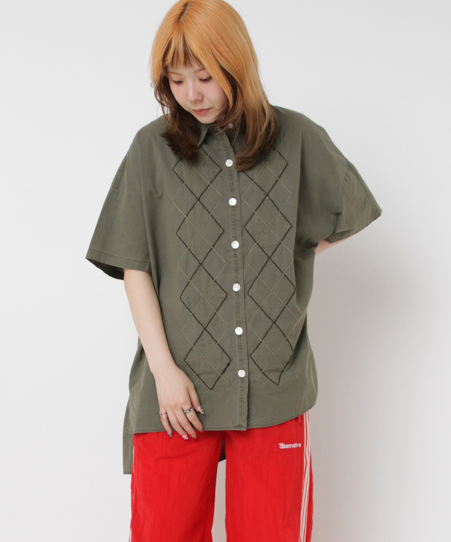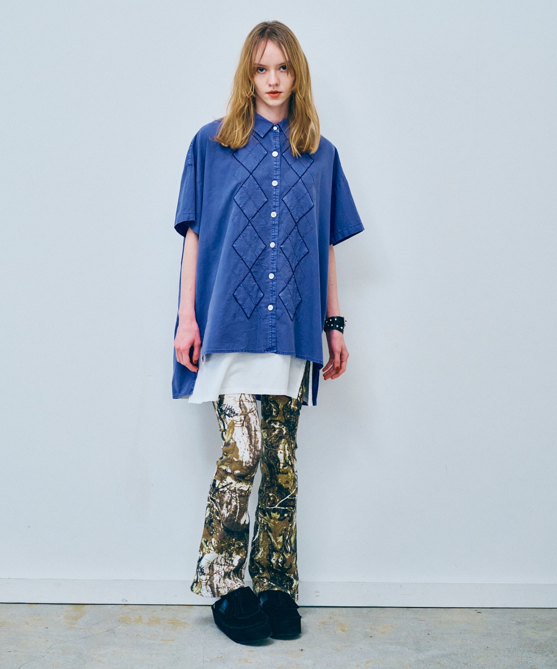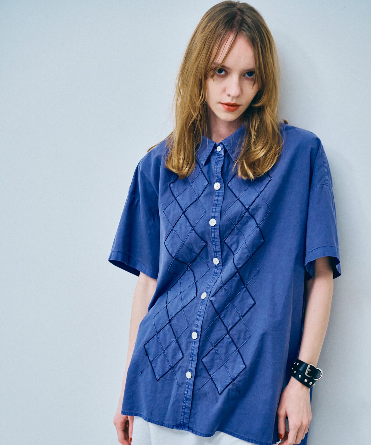 やや小ぶりな襟とオーバーサイズのルーズシルエットが雰囲気のあるシャツ