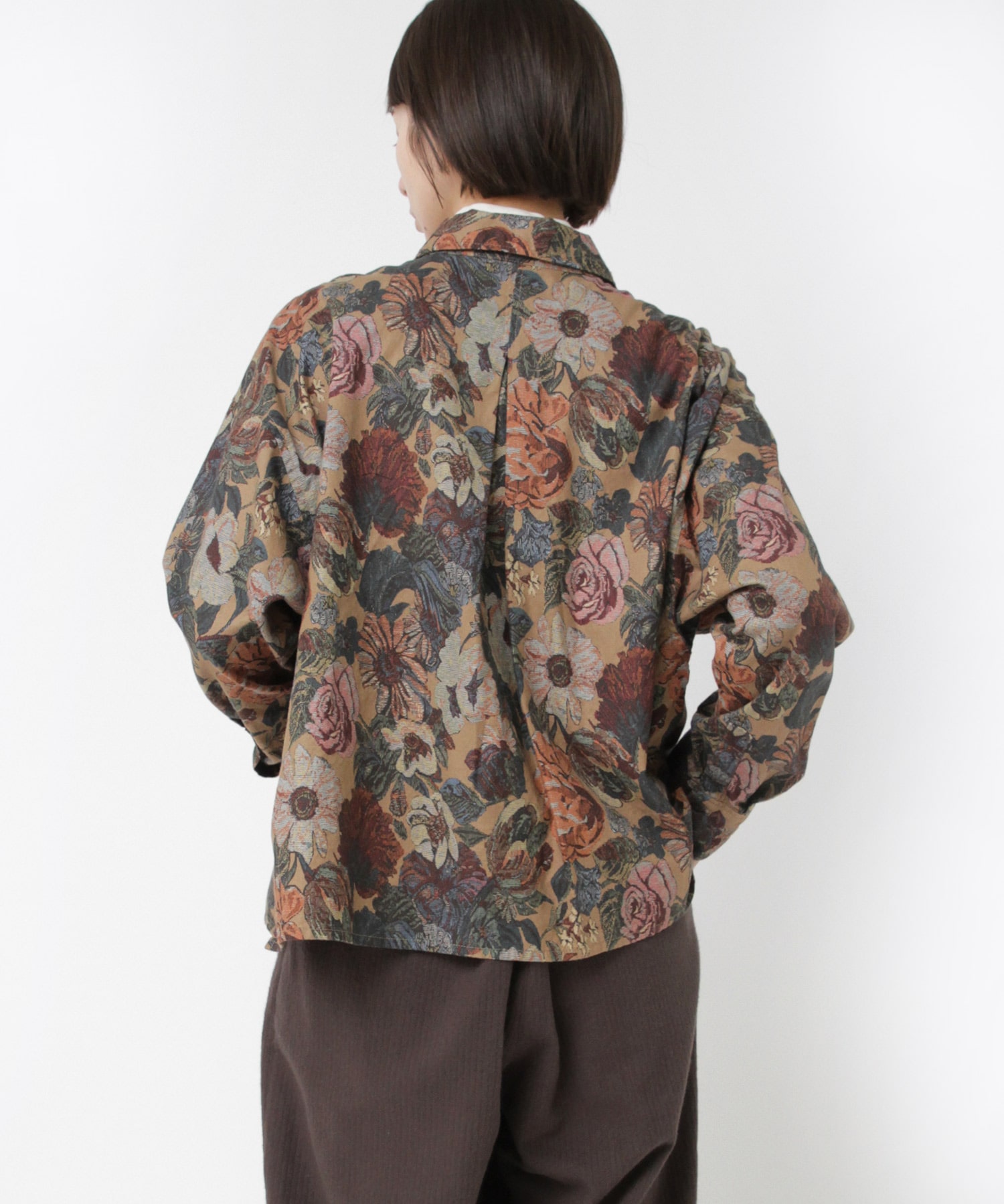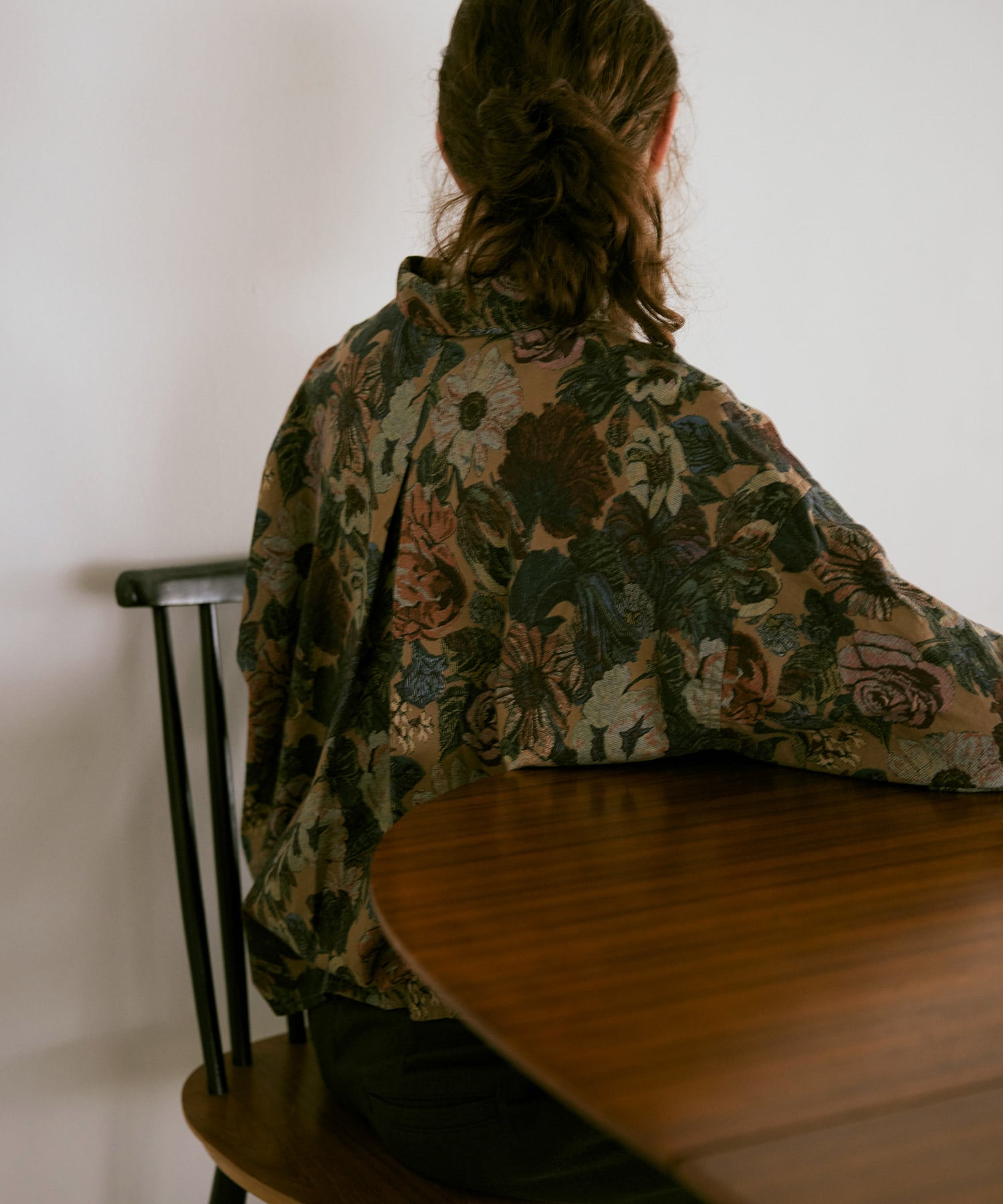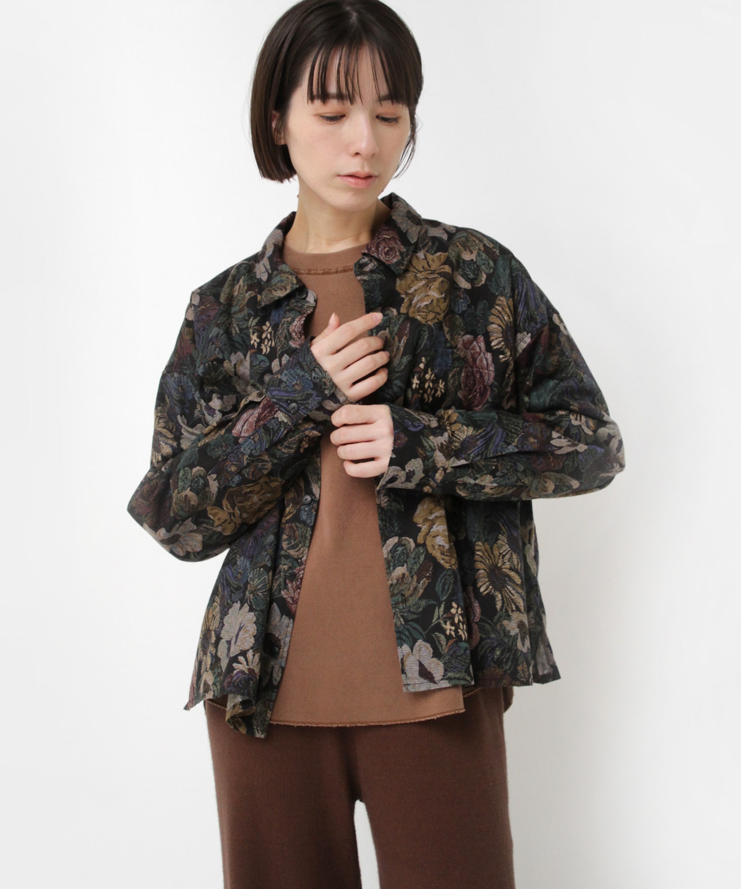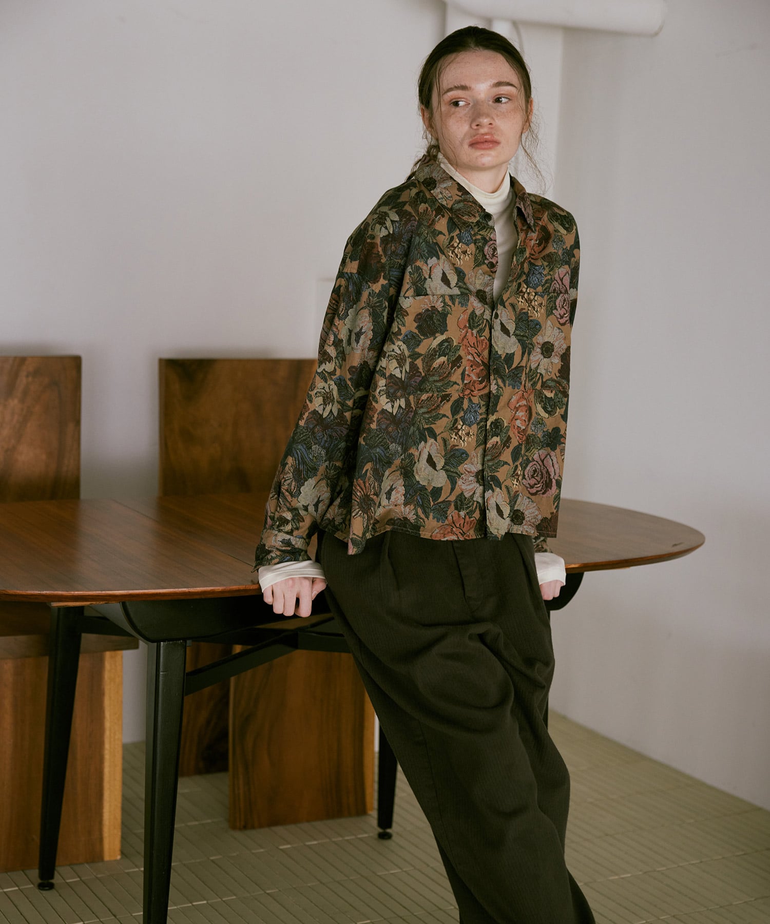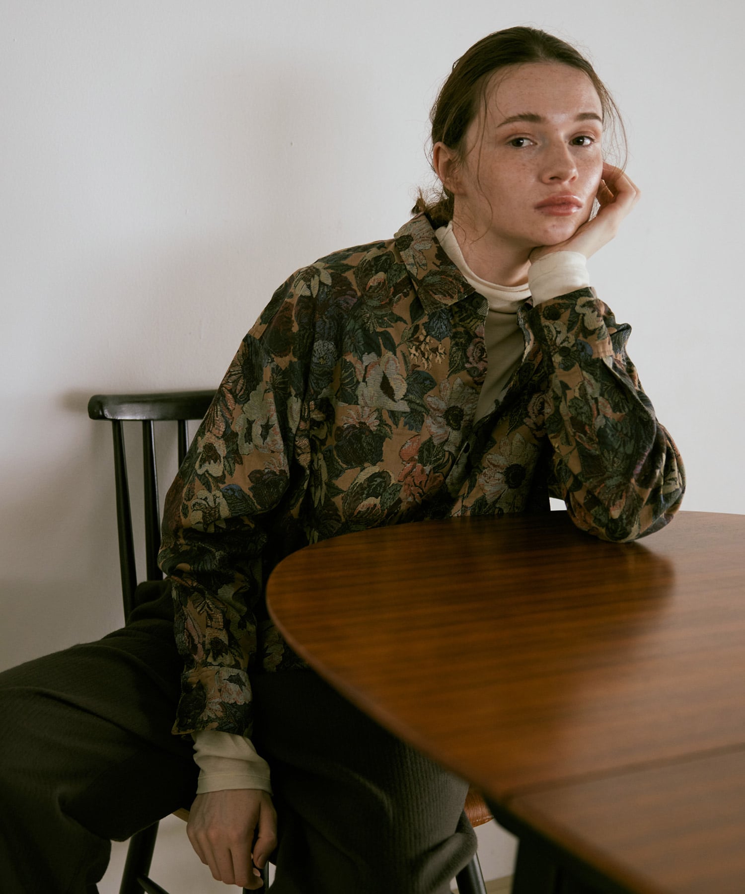 身幅と肩幅を大きく取ったシャツジャケット寄りのアイテムです。着丈を少し短めにして重くなりすぎないようにしています。