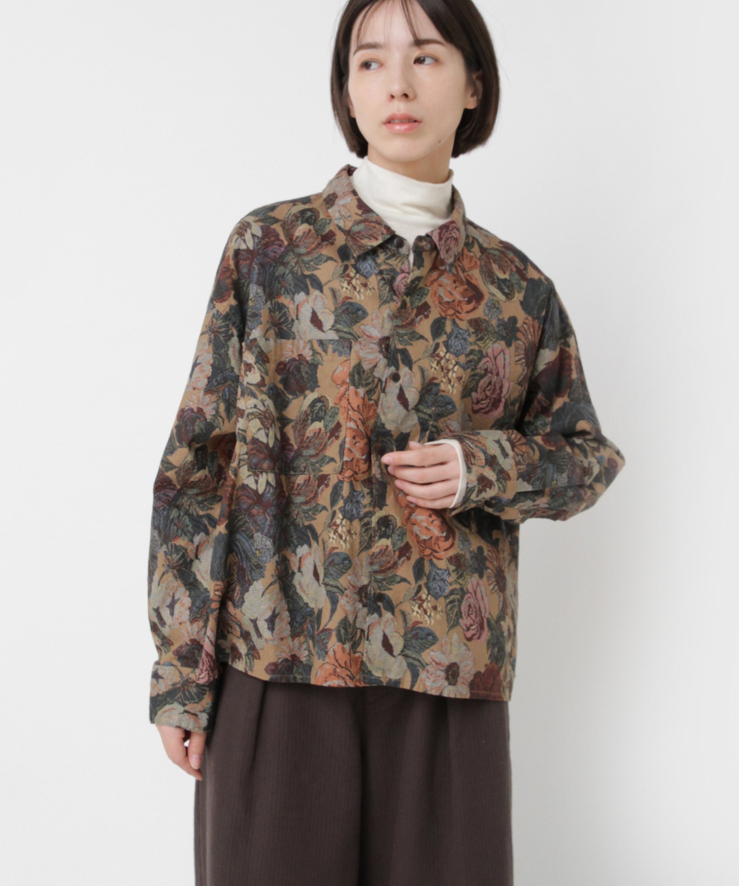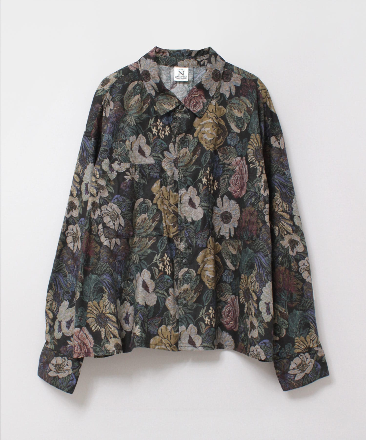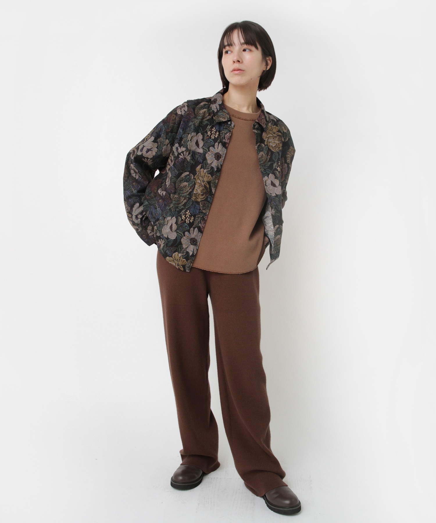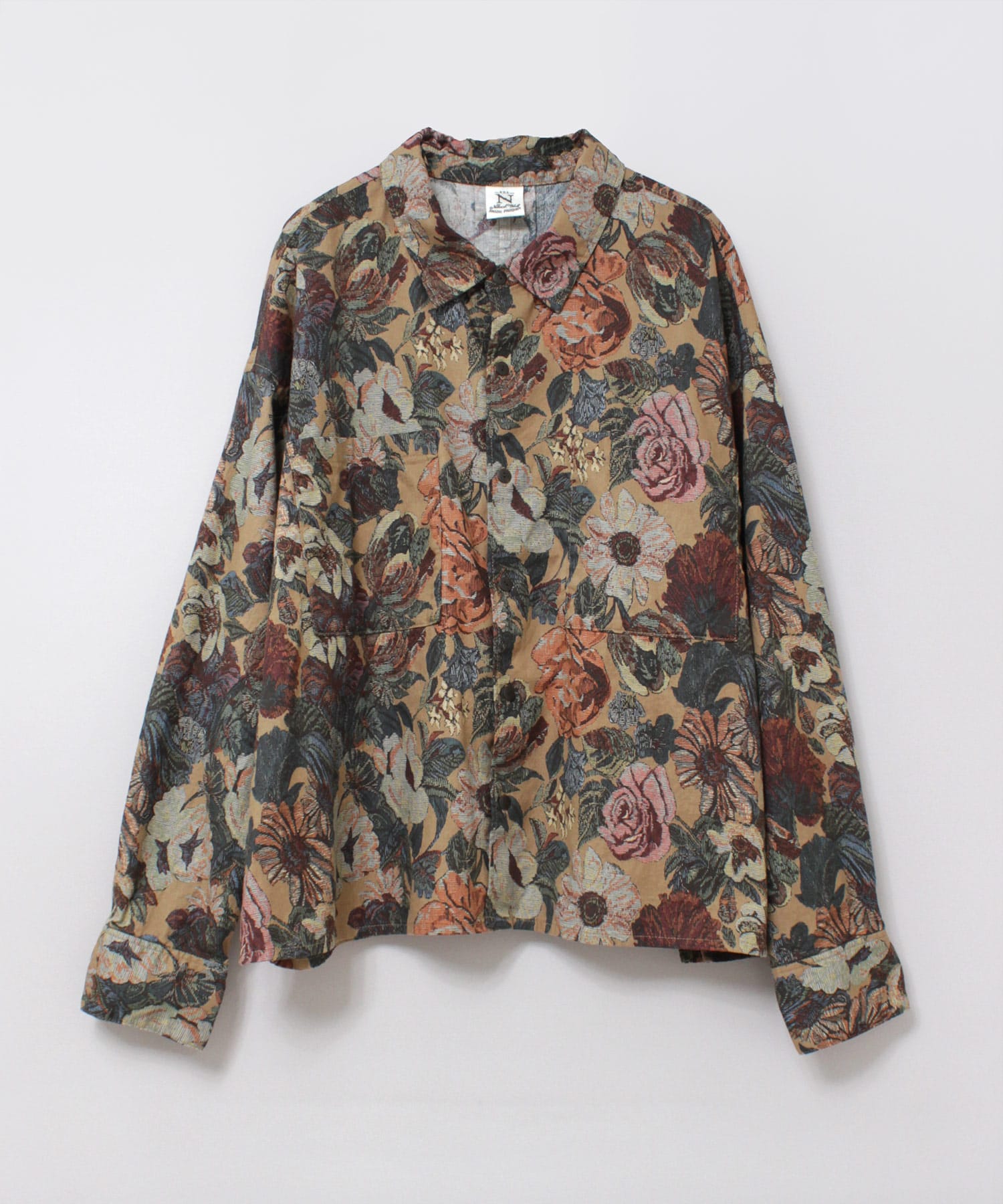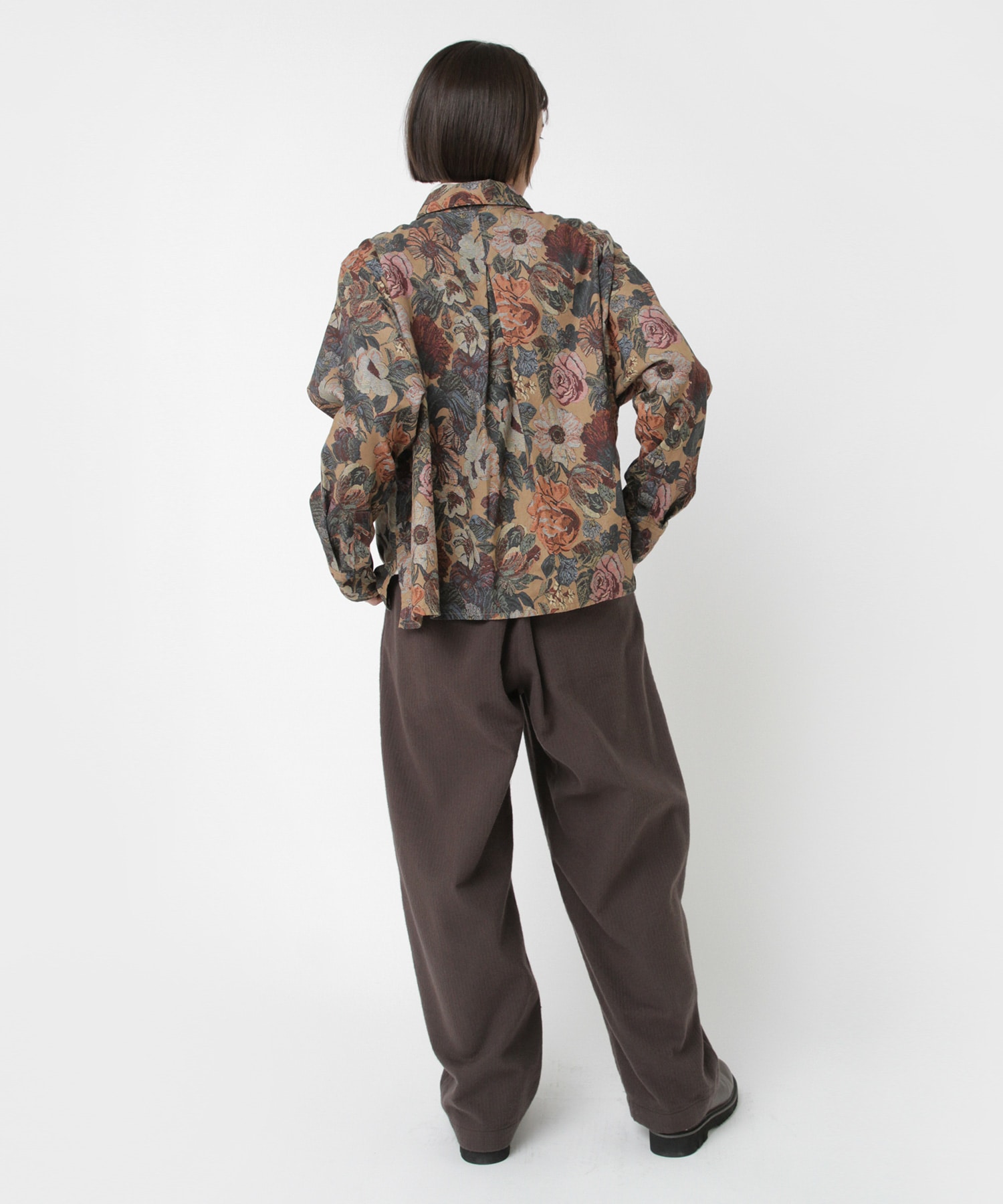 身幅と肩幅を大きく取ったシャツジャケット寄りのアイテムです。着丈を少し短めにして重くなりすぎないようにしています。