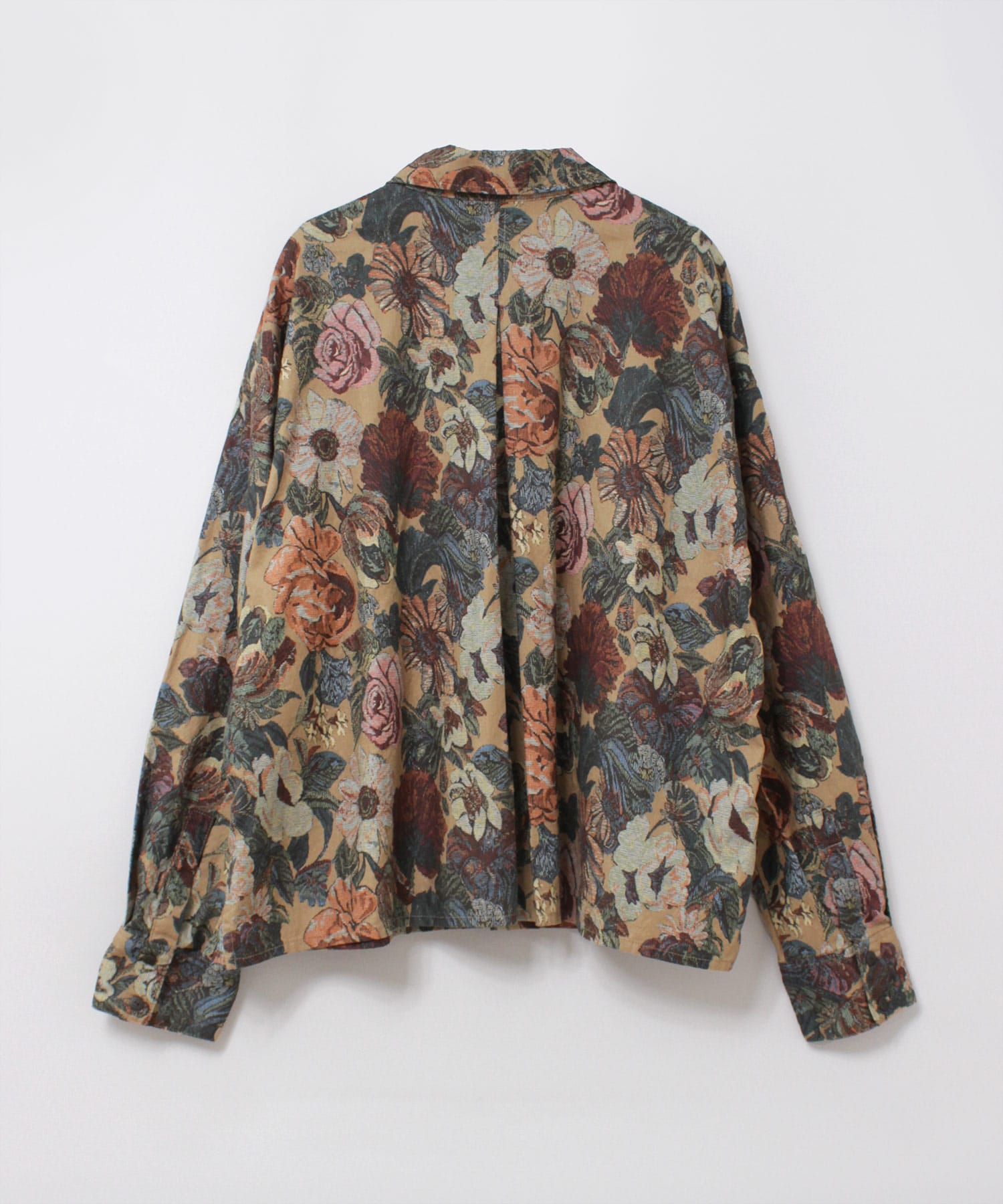 バックのタックがポイント、羽織としても着てもらえるようなバランスのシャツです。