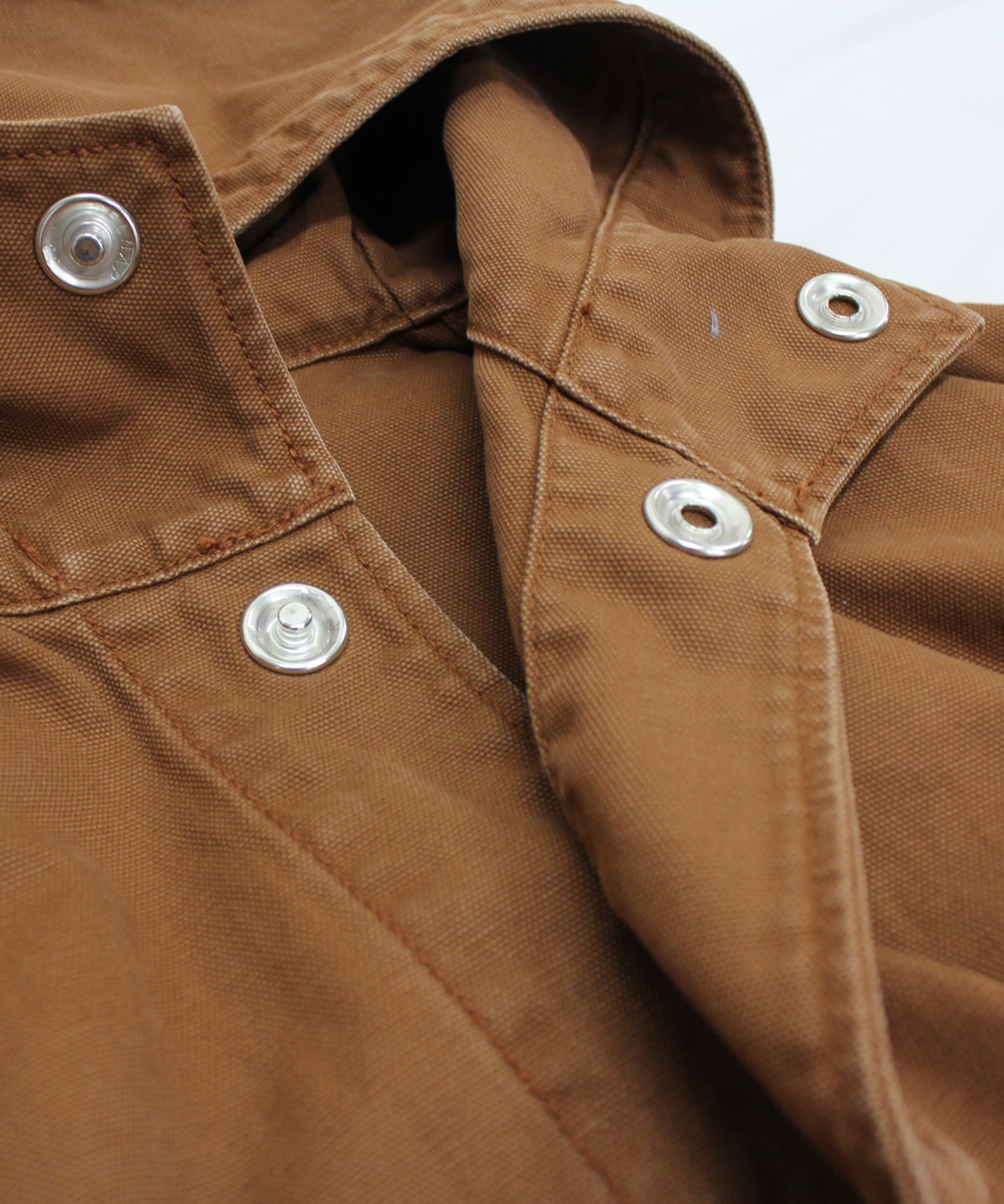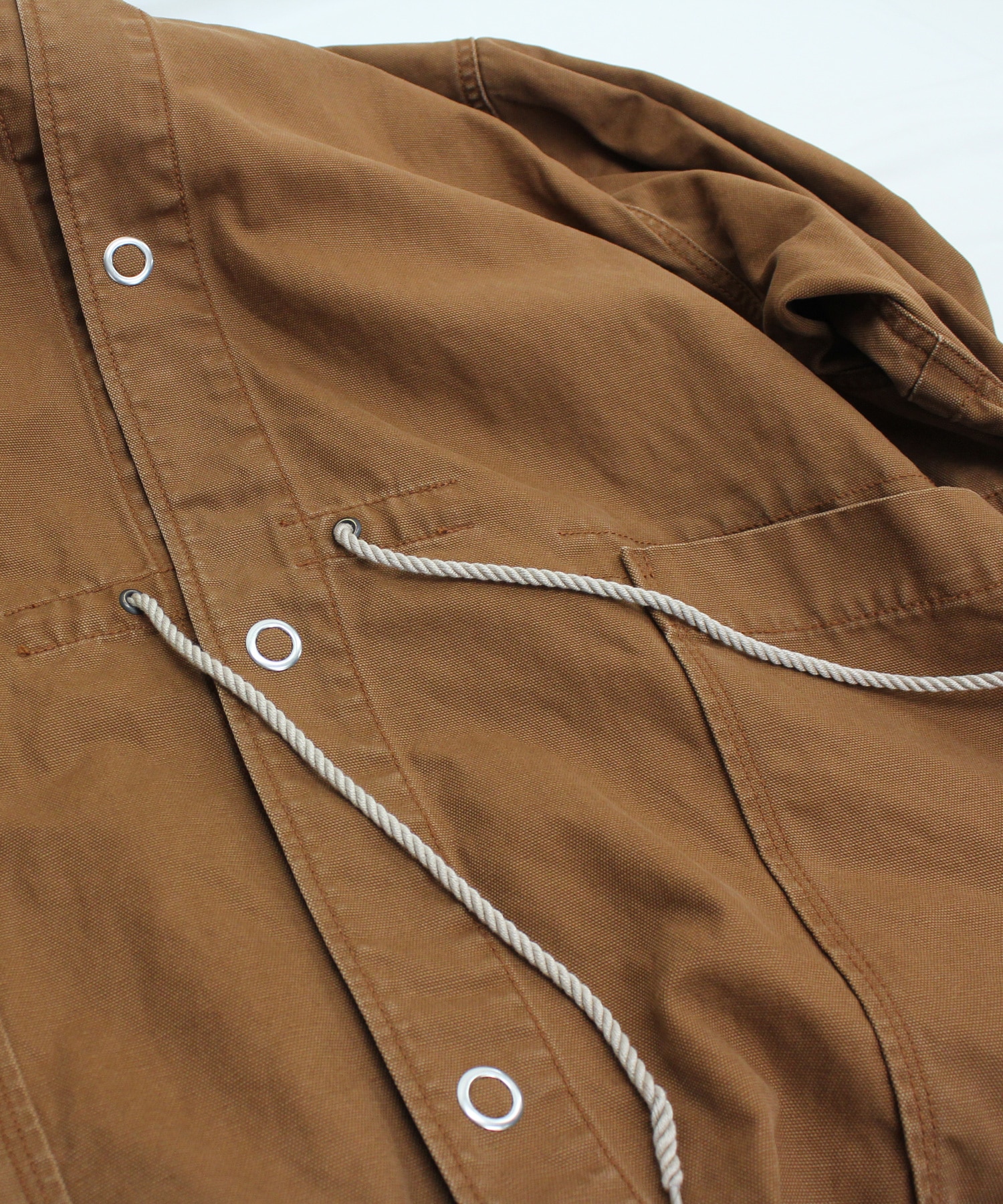シンプルなデザインですが大ぶりのスナップ釦、ポケットなどで、存在感の有るコートになりました。