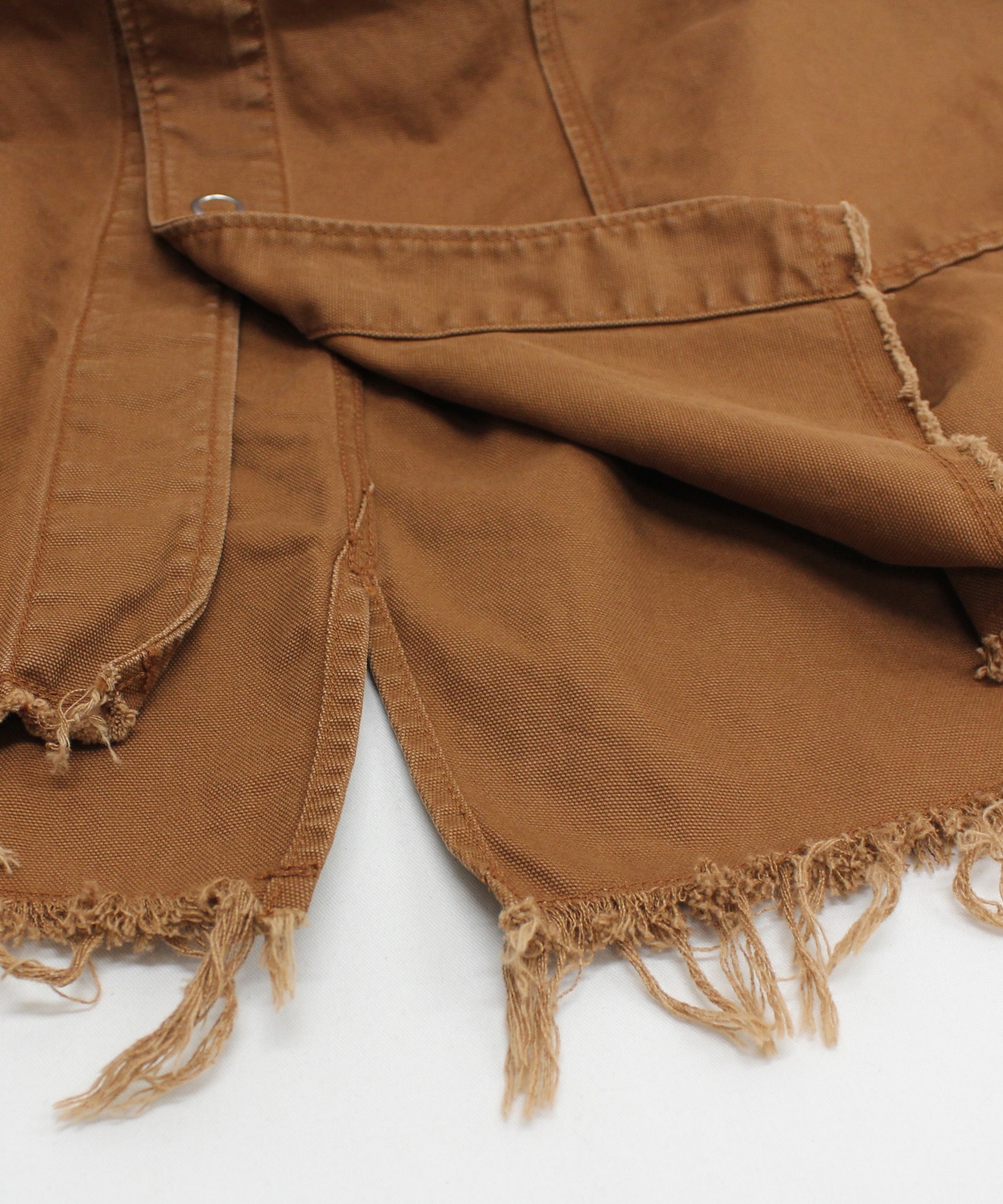裾周りを裁ち切りフリンジにする事で軽快な印象に仕上げました。