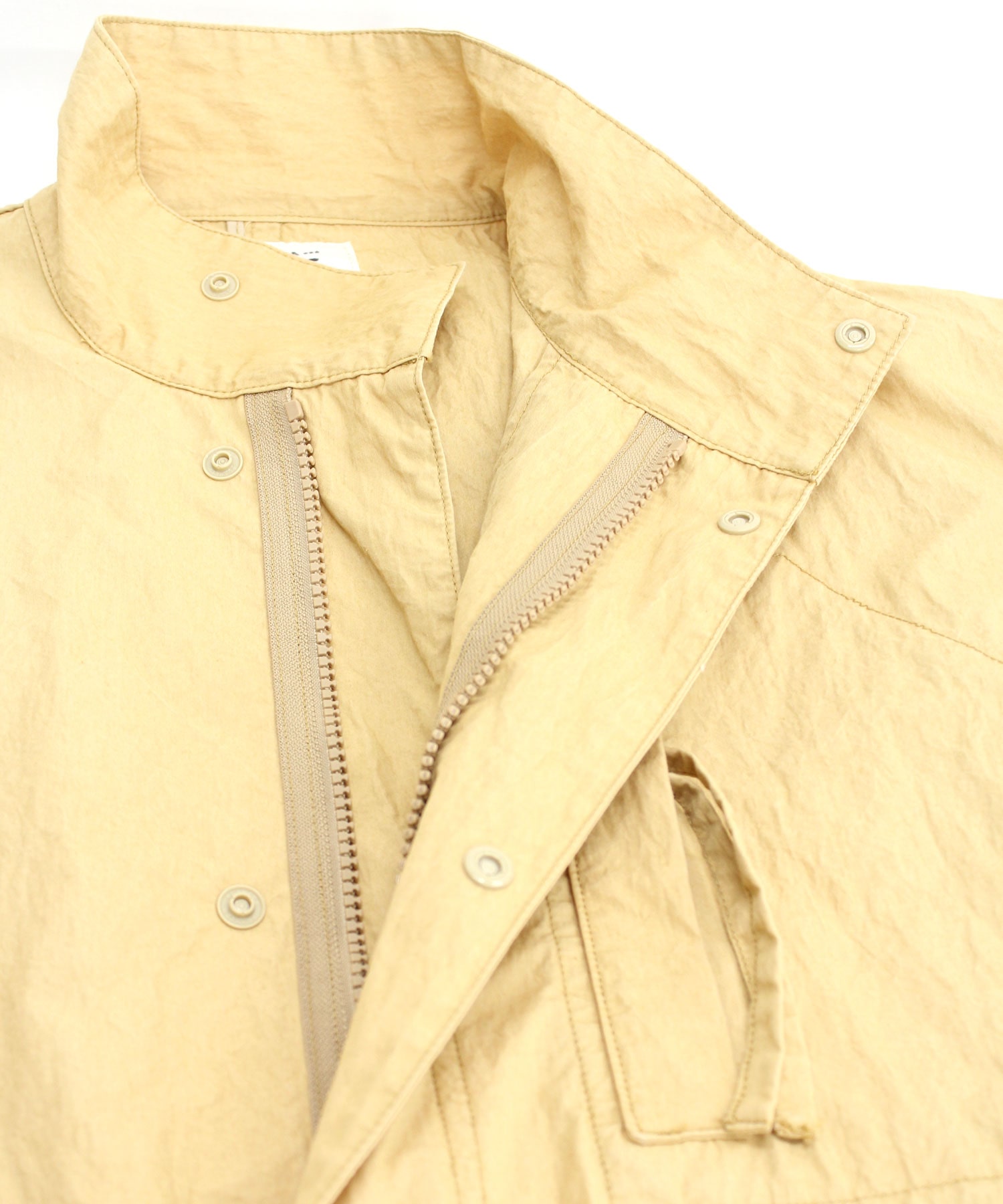 綿ナイロンの生地を使った、スポーティーなイメージのスタンドカラーコート。