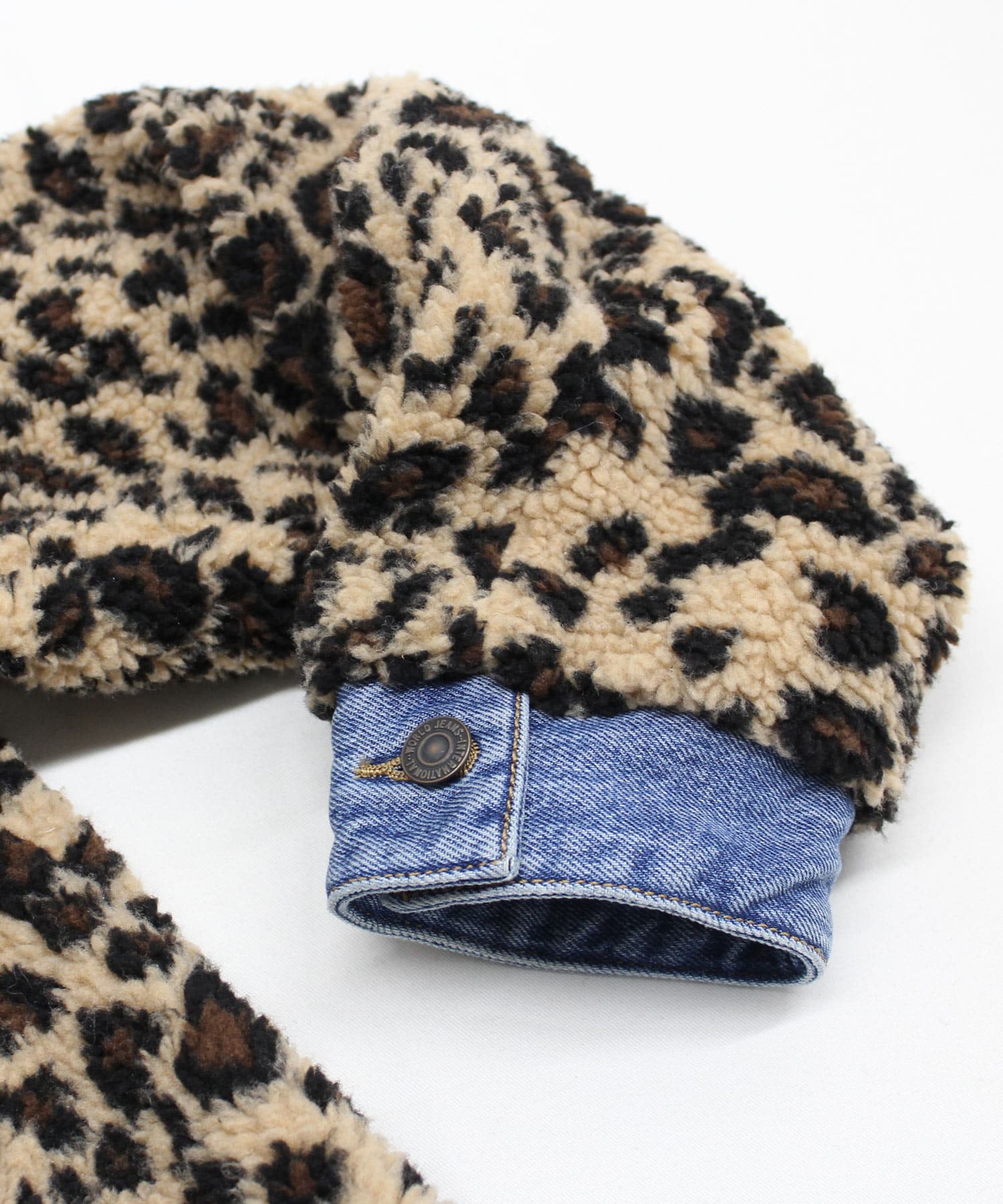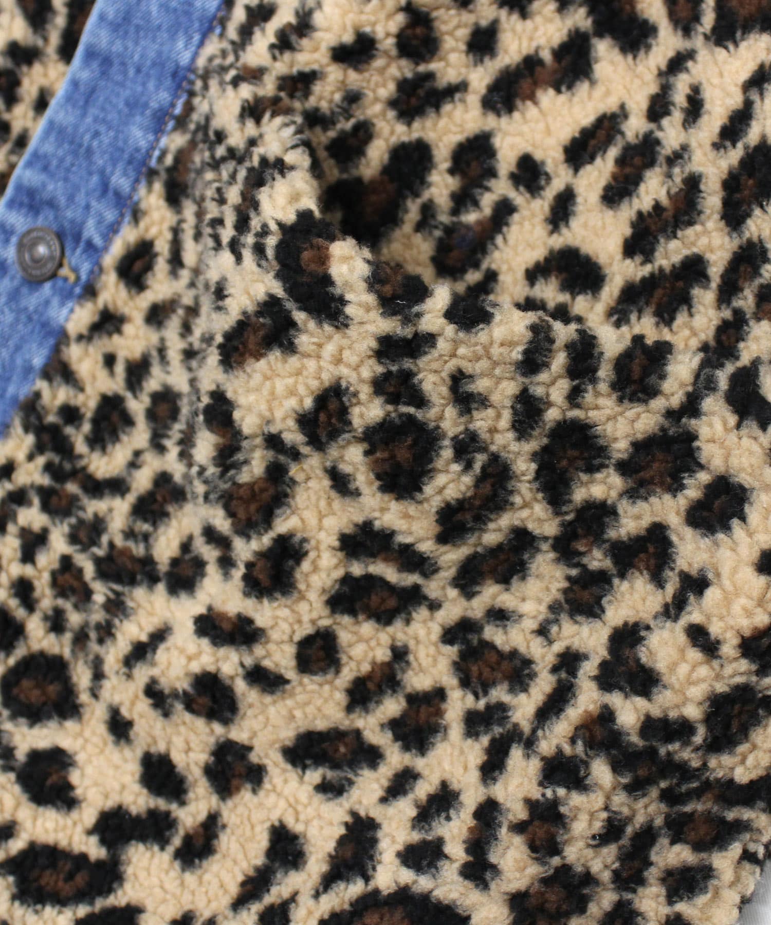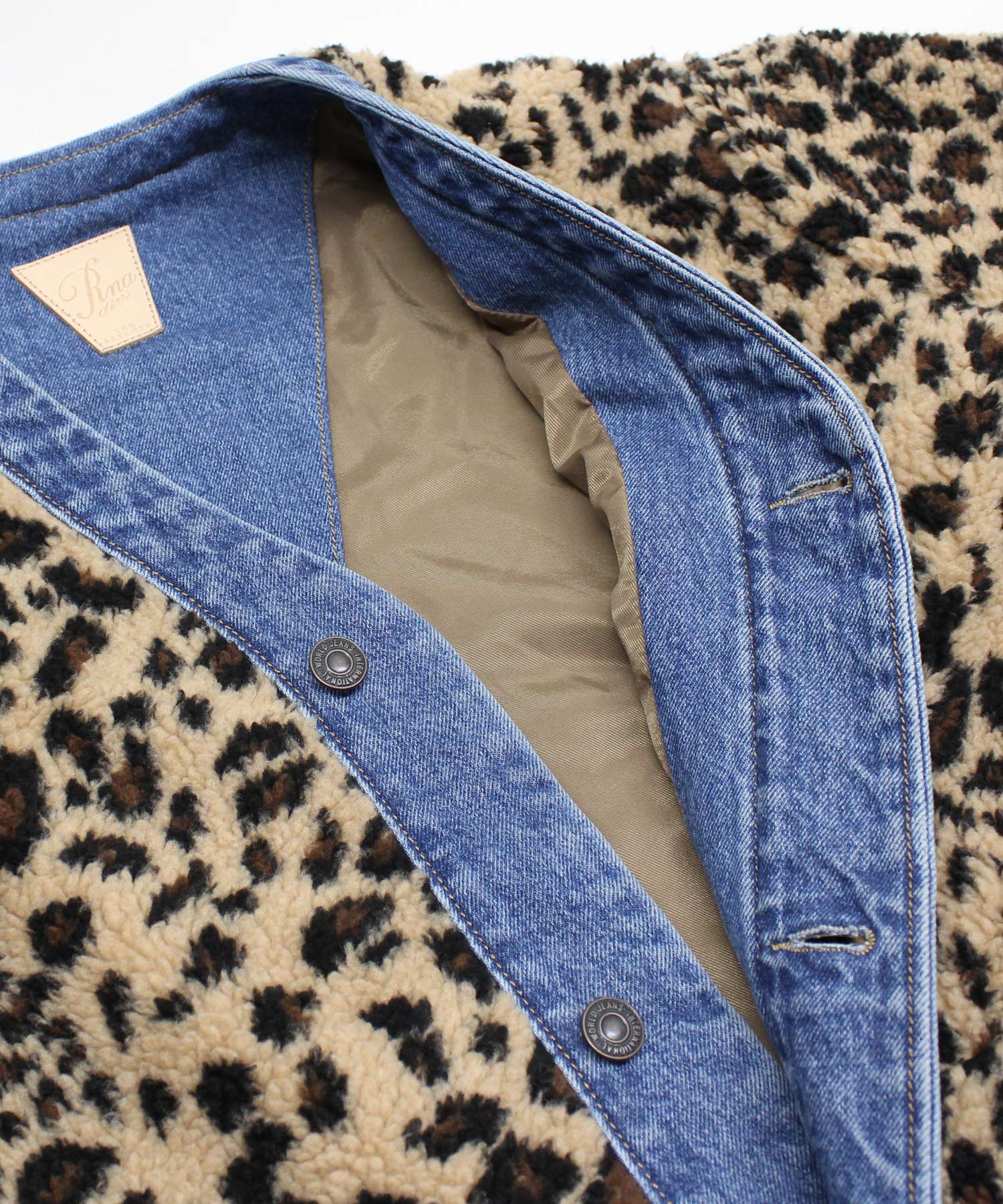 ボア素材とビンテージ感のあるデニムコンビのノーカラーボアコートです。