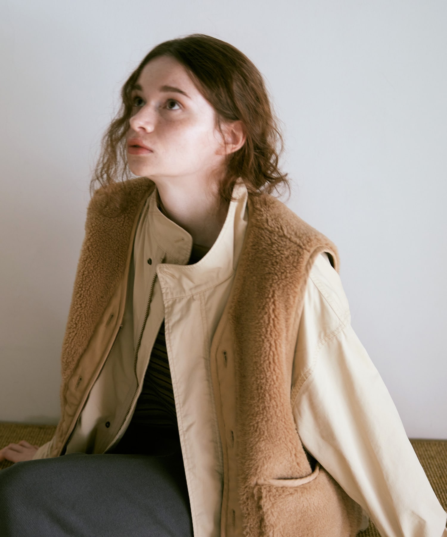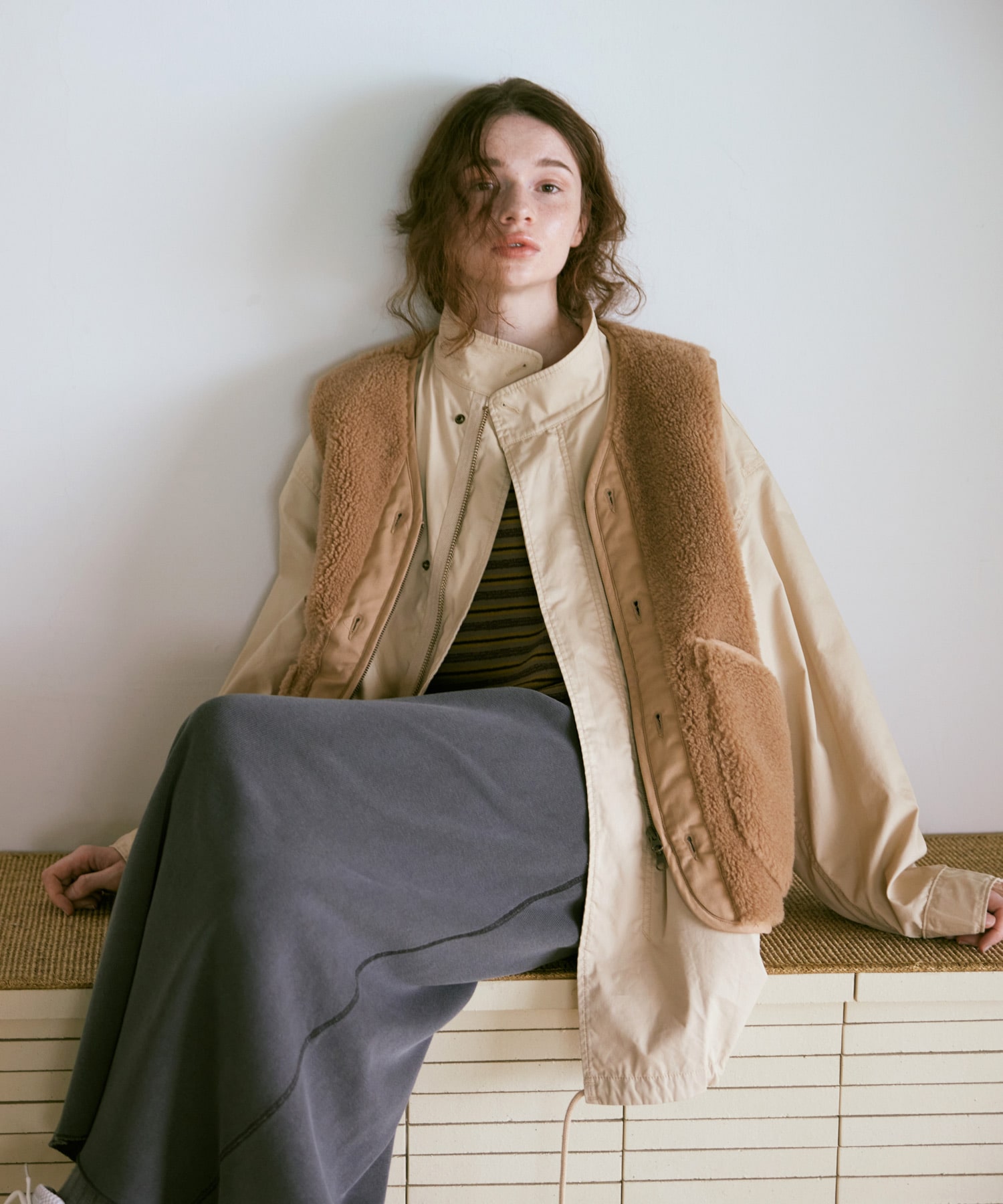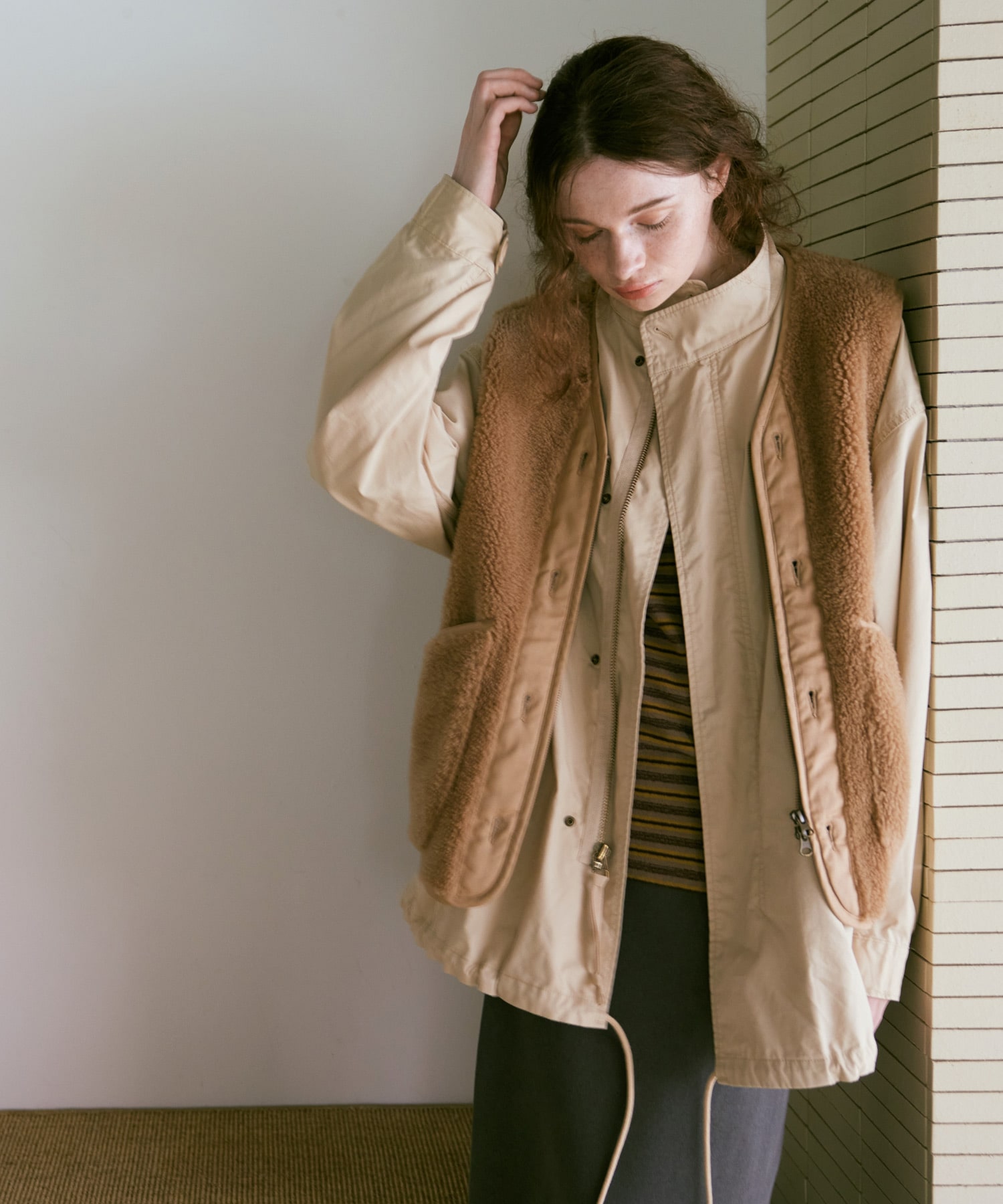 ファーライナーをコートの上から羽織ったり、他のアウターと組み合わせて、気分を変えた着こなしもおすすめです。