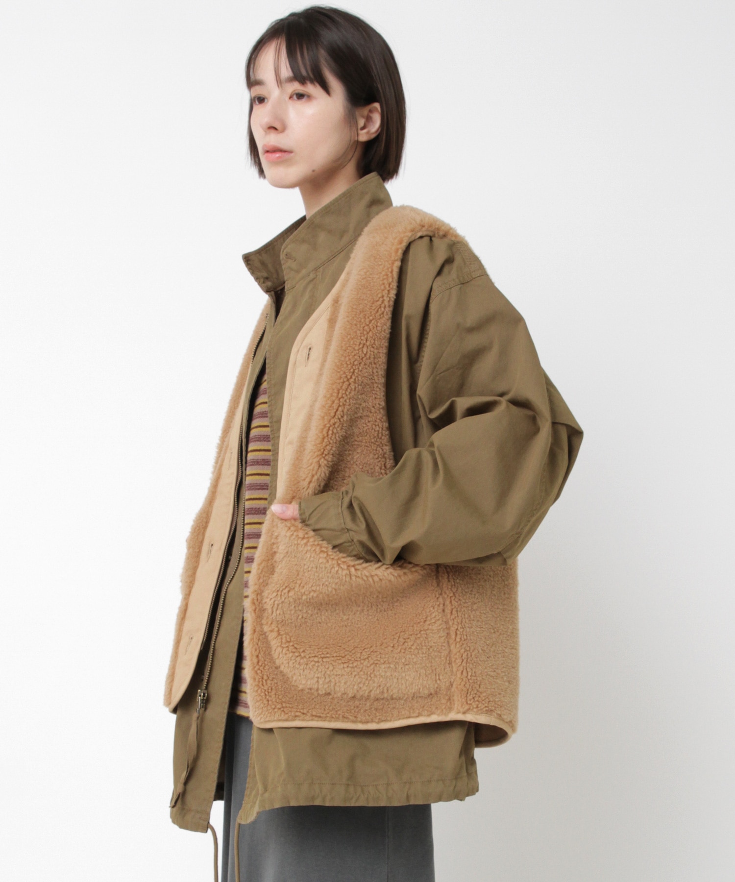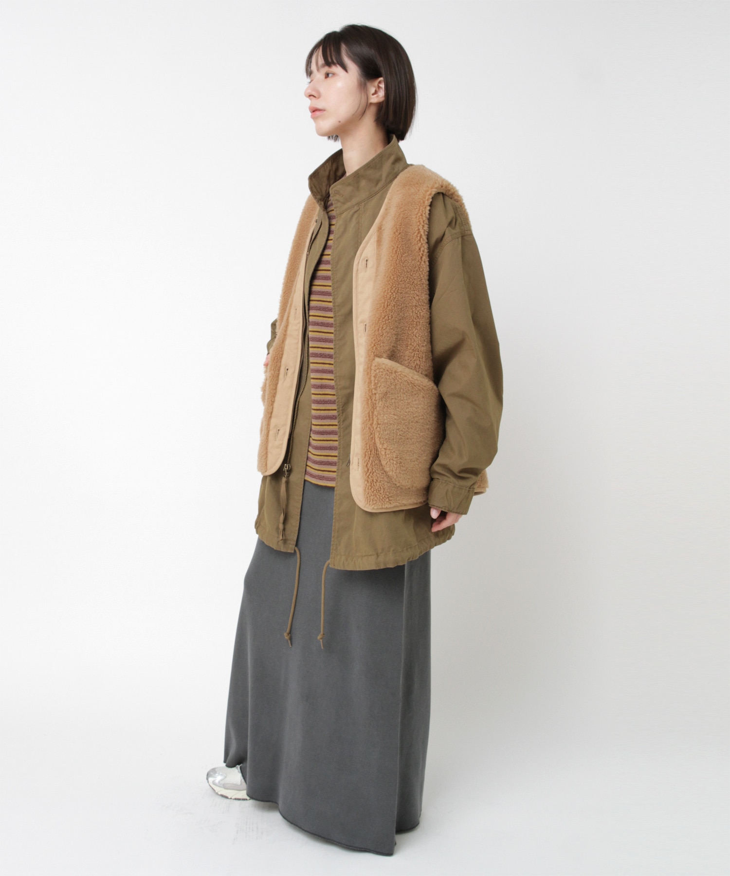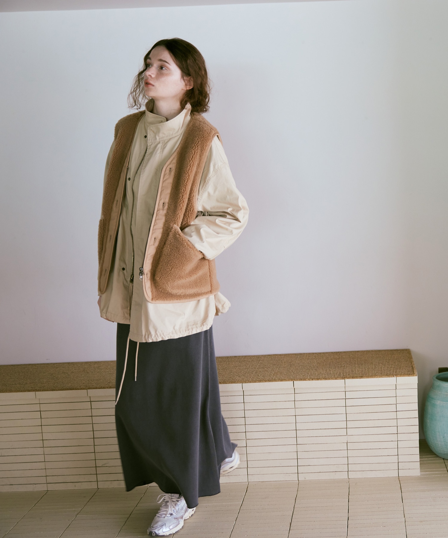 ファーライナーをコートの上から羽織ったり、他のアウターと組み合わせて、気分を変えた着こなしもおすすめです。
