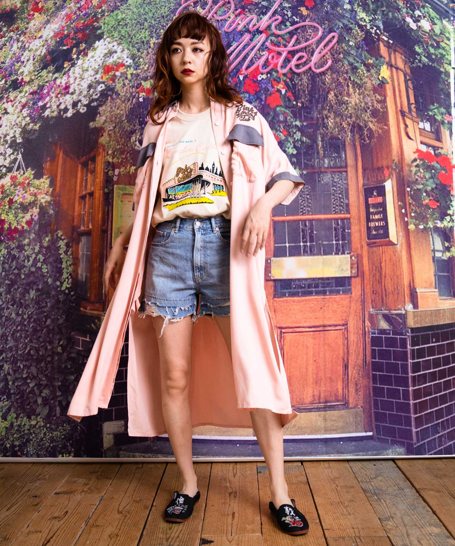 【PINK MOTEL】D1604 PMカラーコンビシャツワンピース