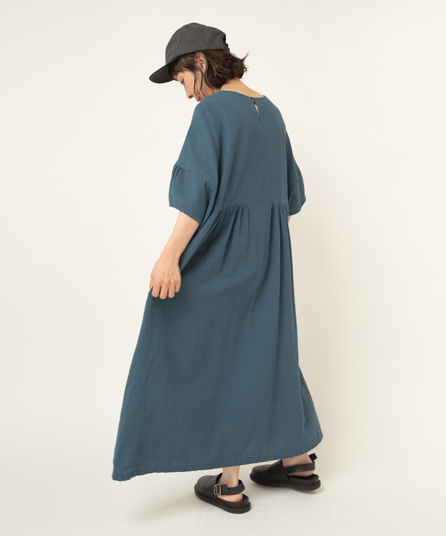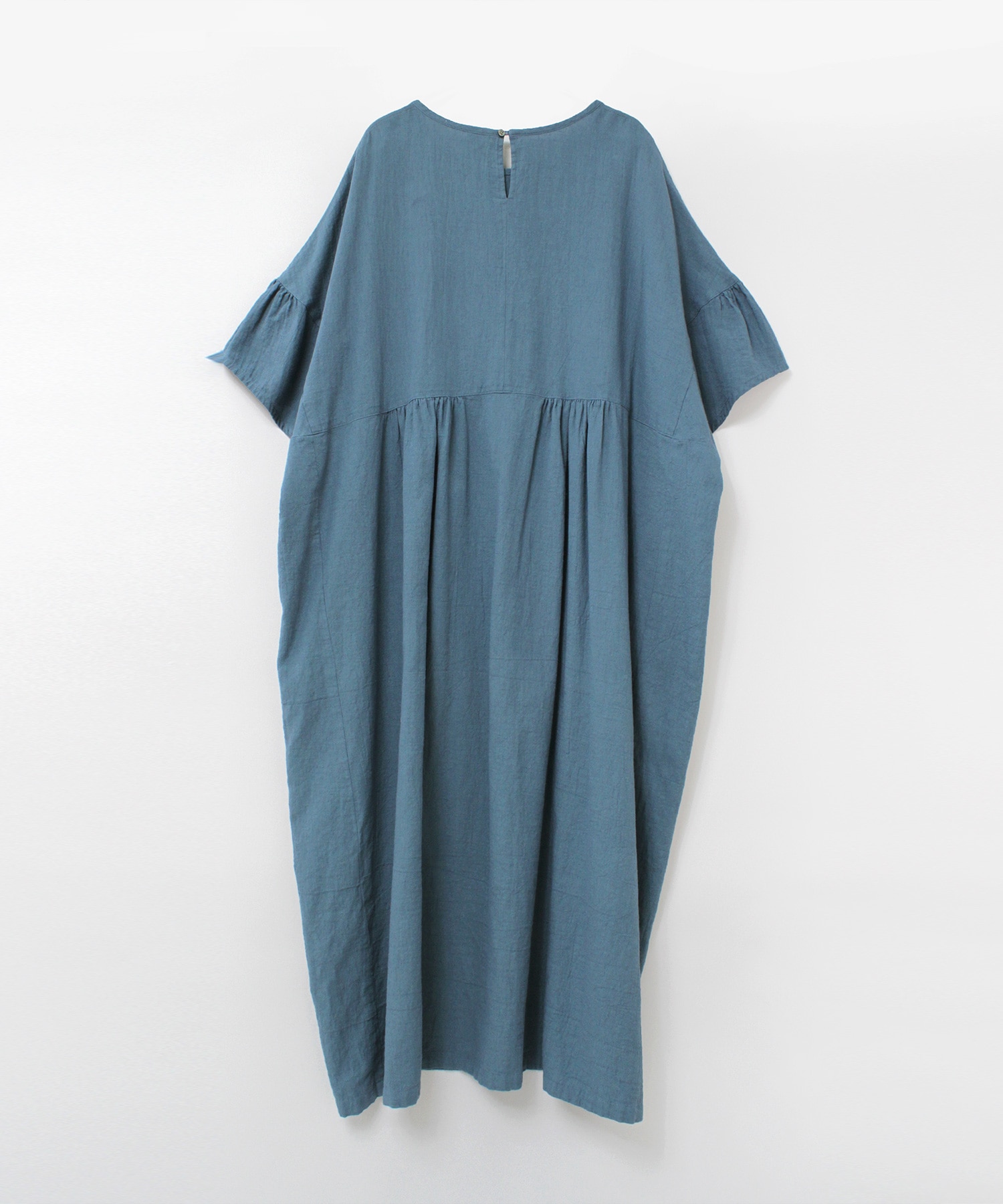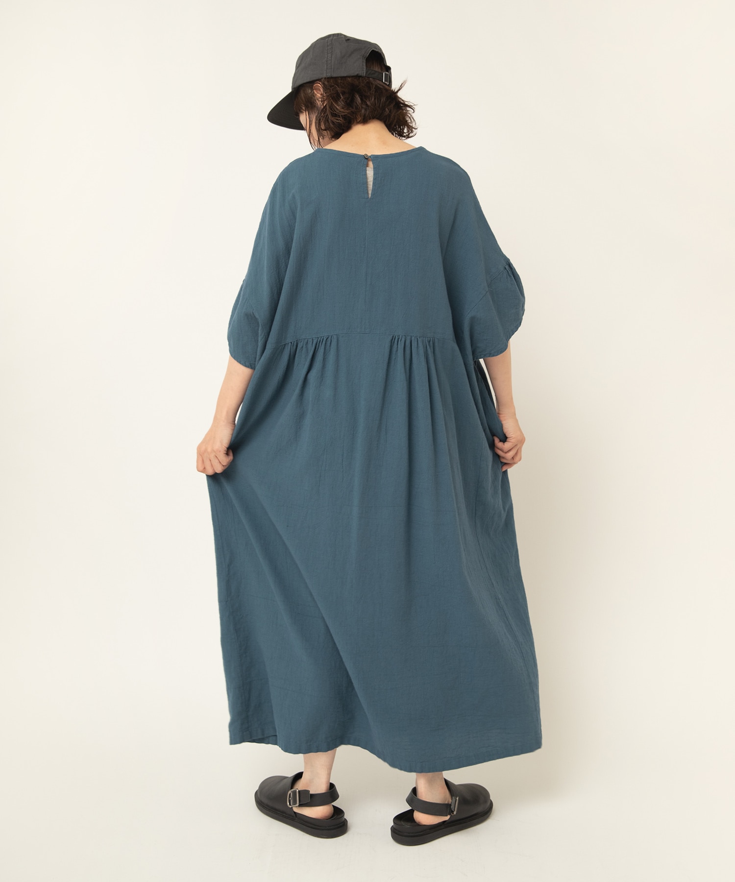 身幅、肩幅をかなりのオーバーサイズにして、風合い豊かな生地をたっぷり使ったナチュラルなテイストのオーバーワンピースです。
