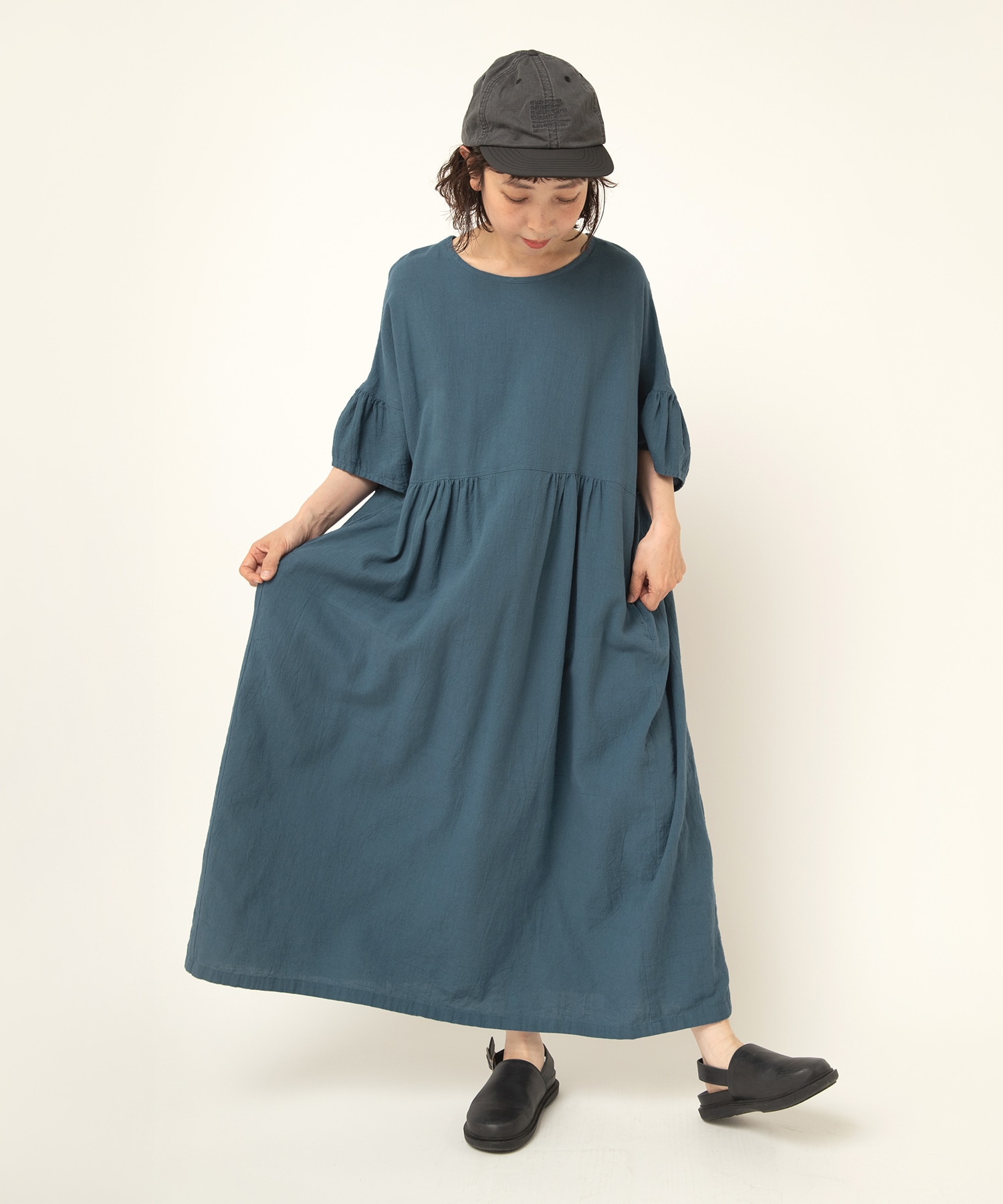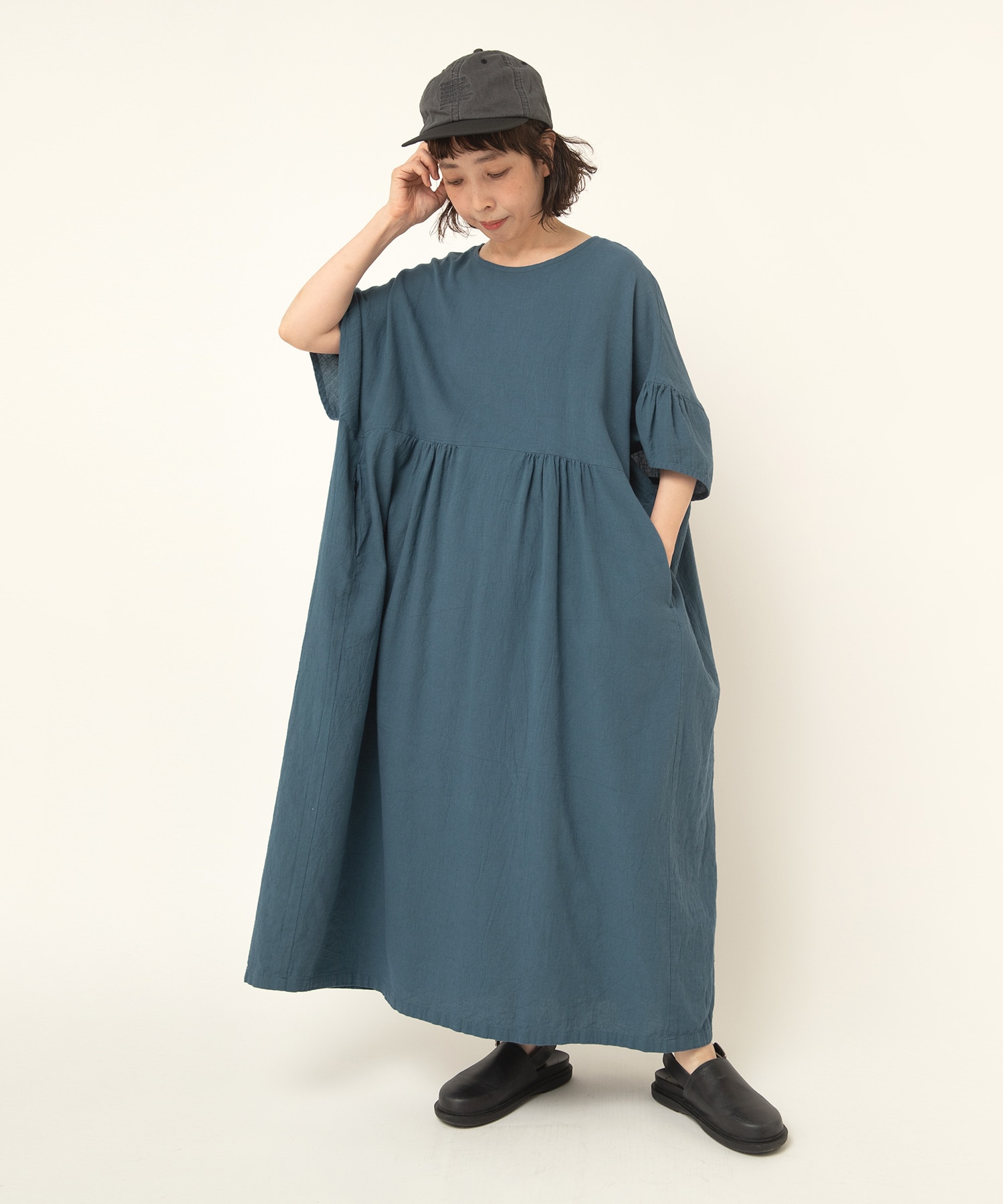 風合い豊かな生地をたっぷり使ったオーバーワンピース