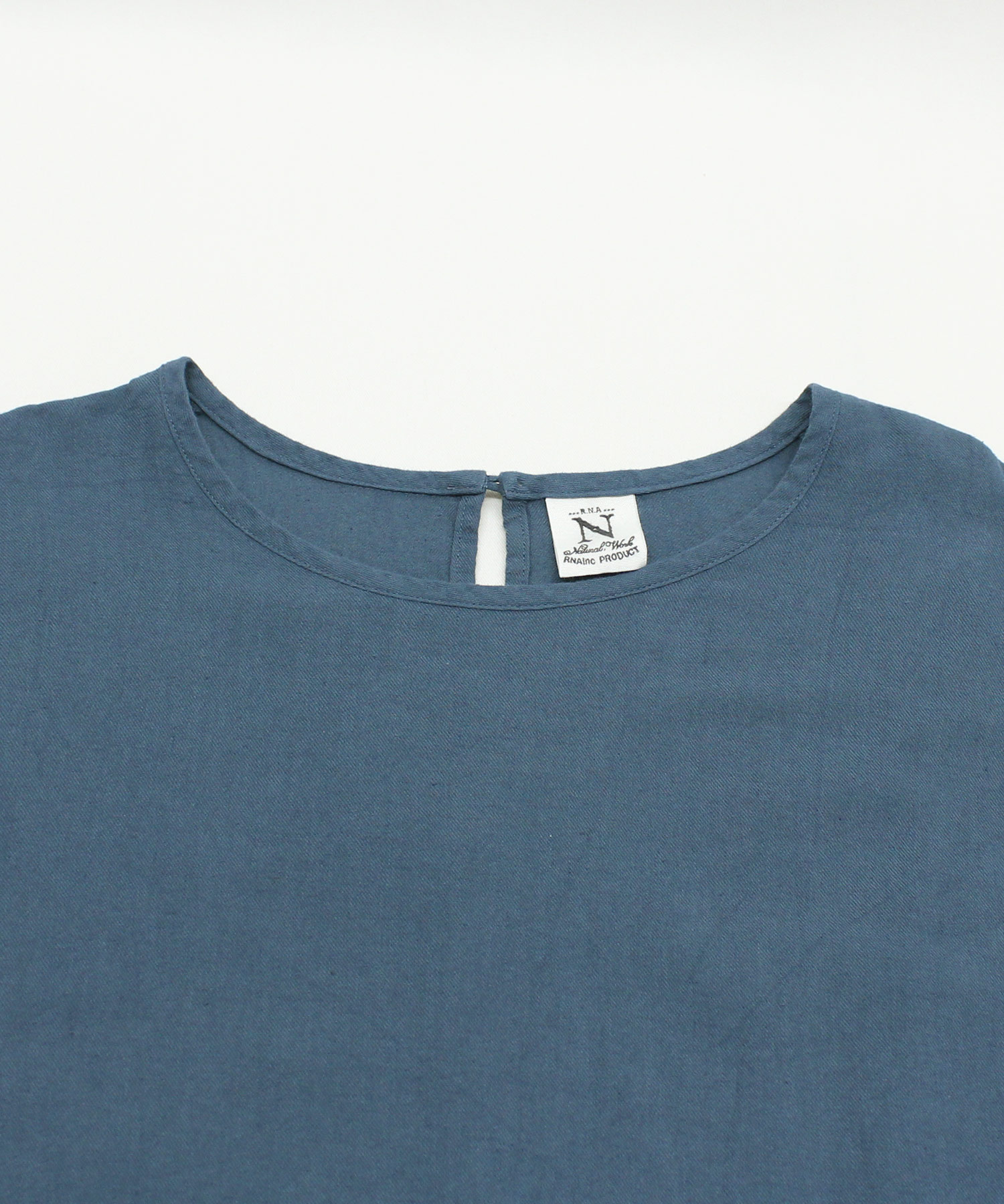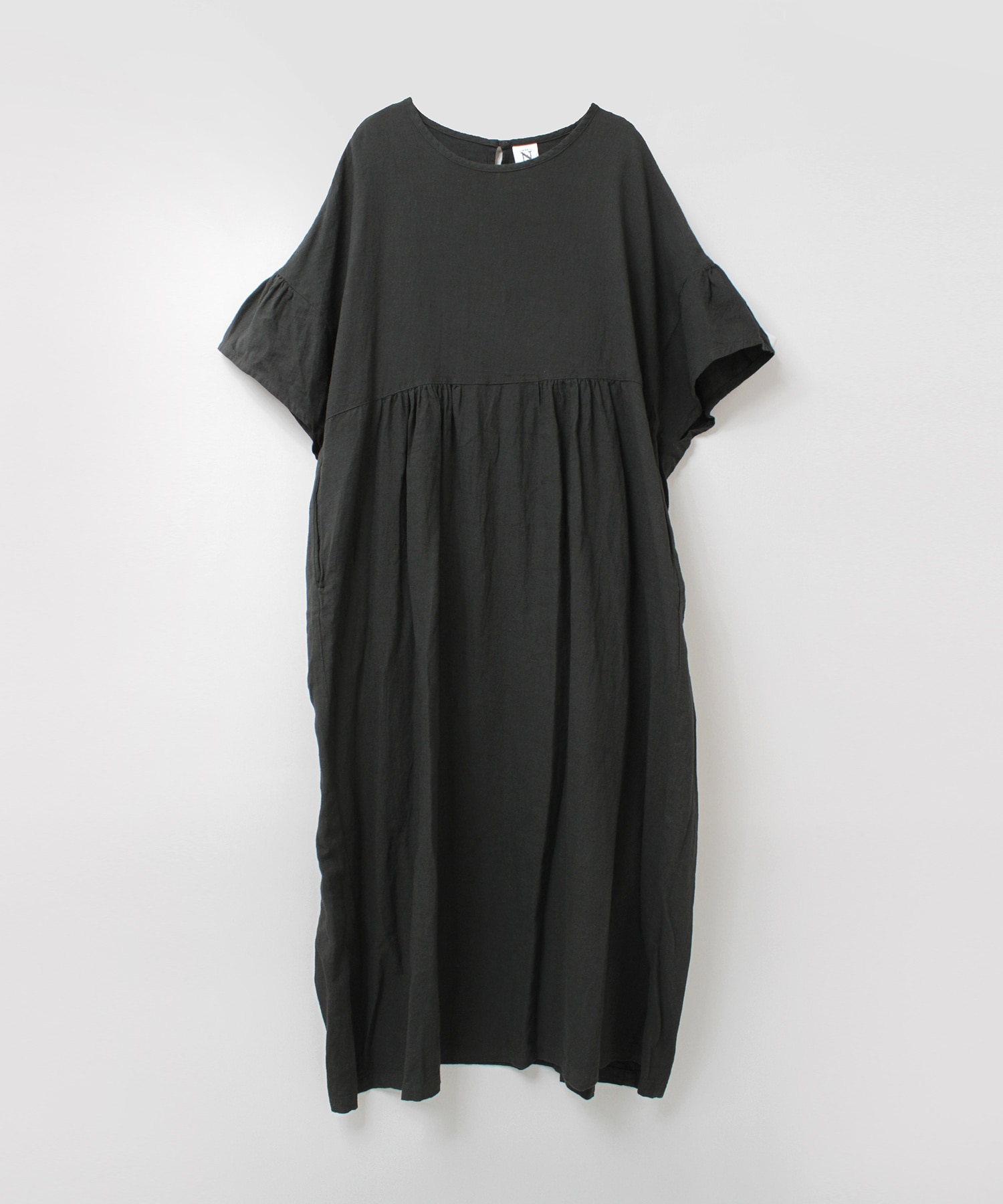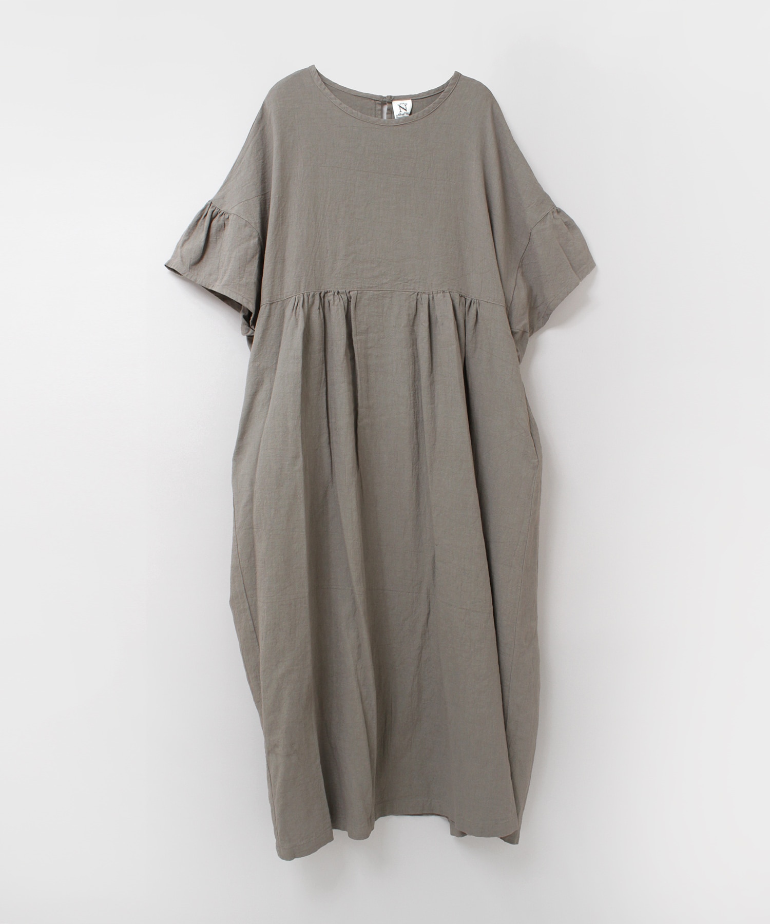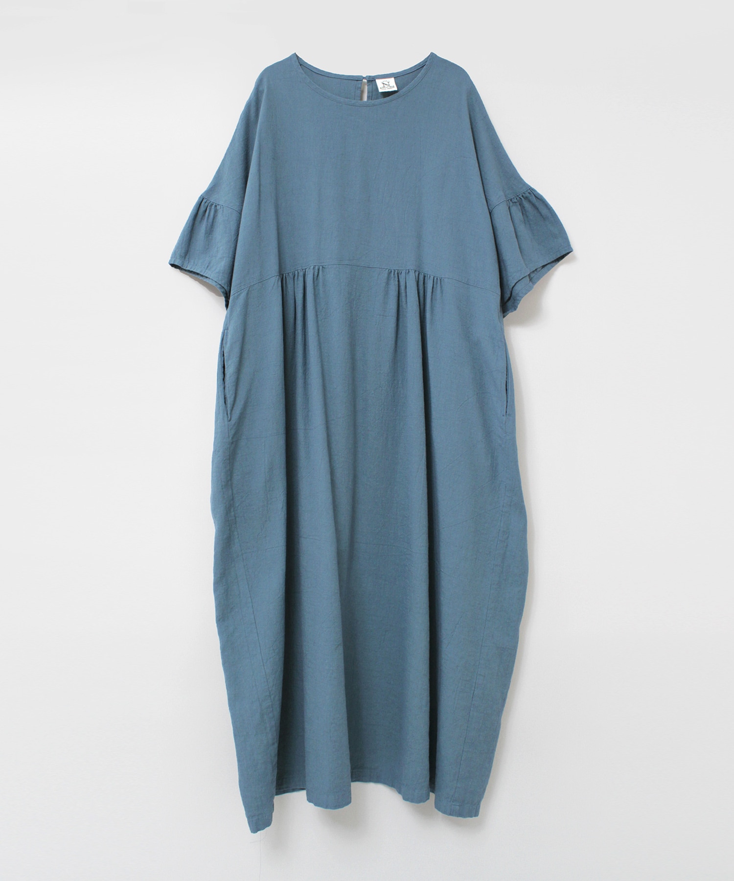 浜松の先行場で昔ながらの手作業にて染色整理加工を施して、生地に独特な染めのムラ感を出したヴィンテージな雰囲気のある、綿麻の生地のワンピースです。