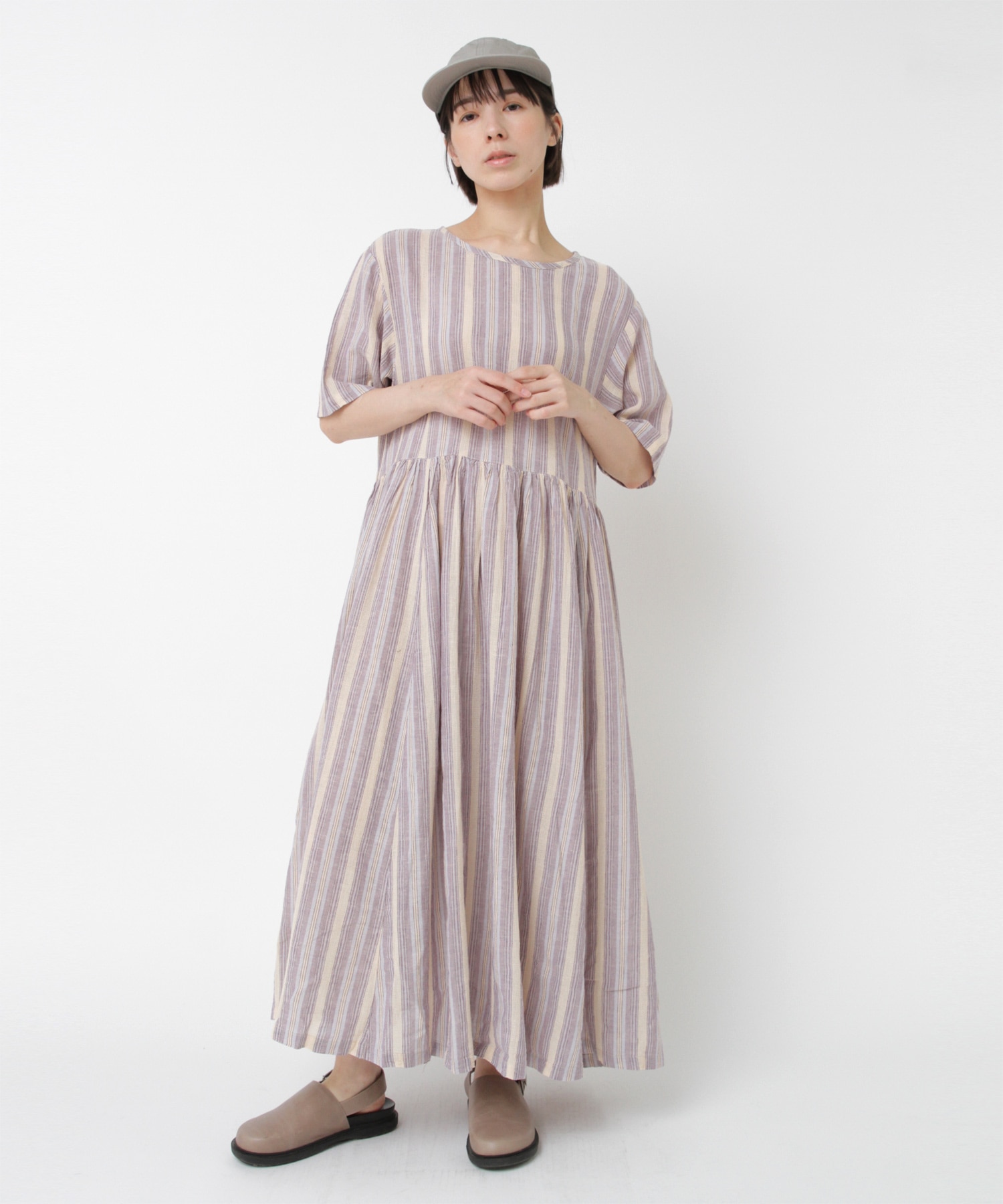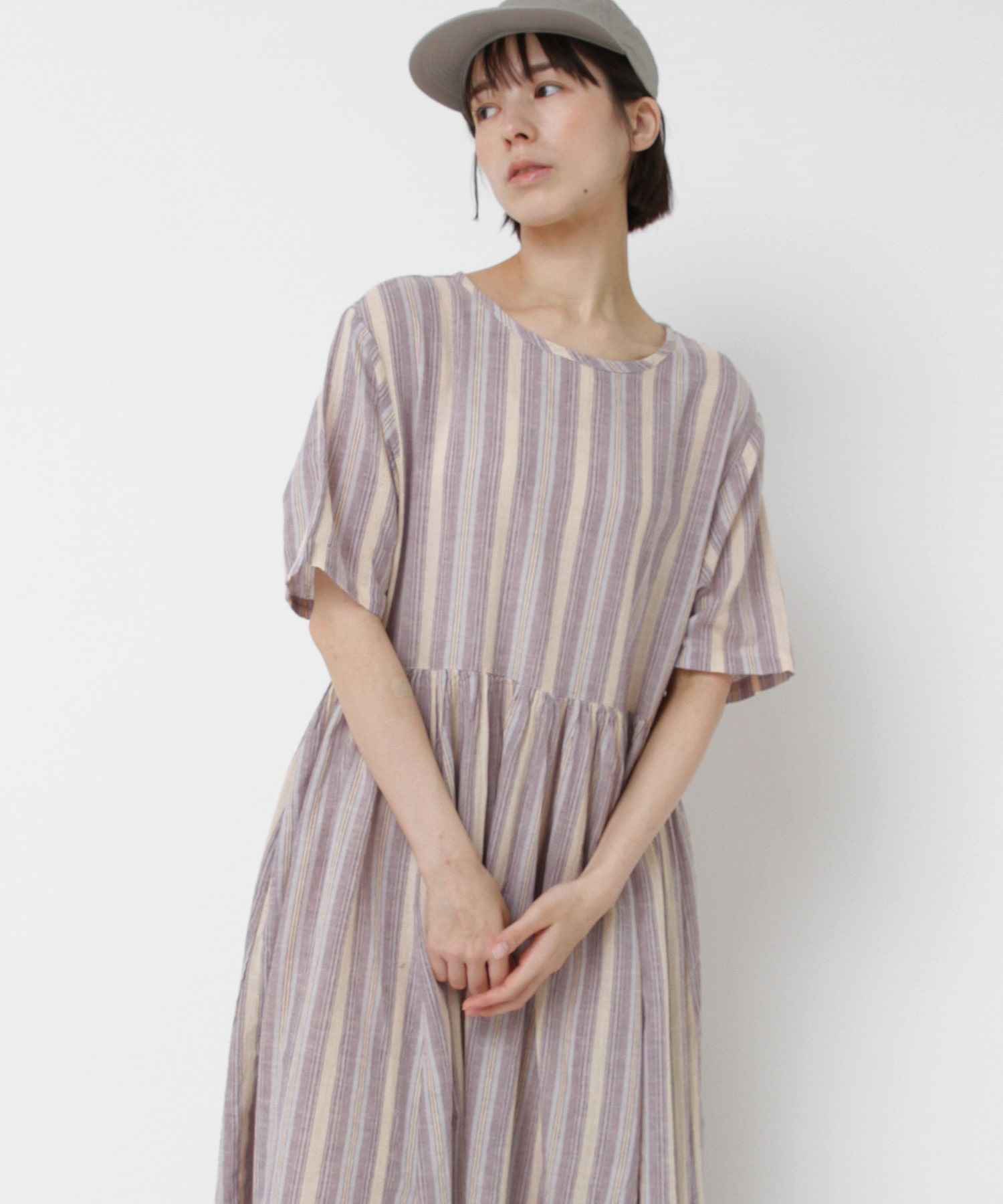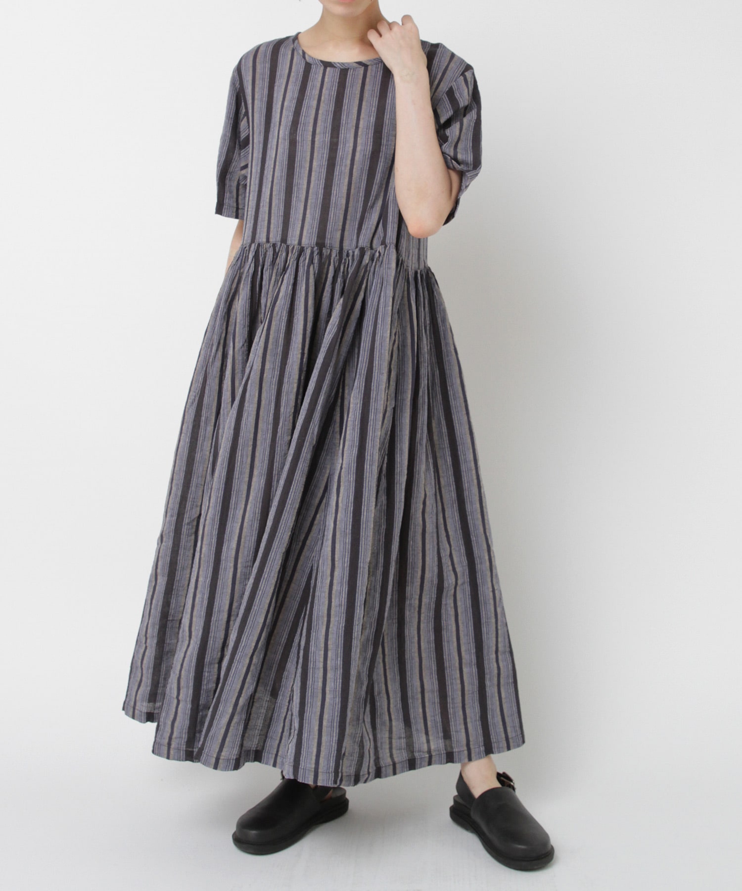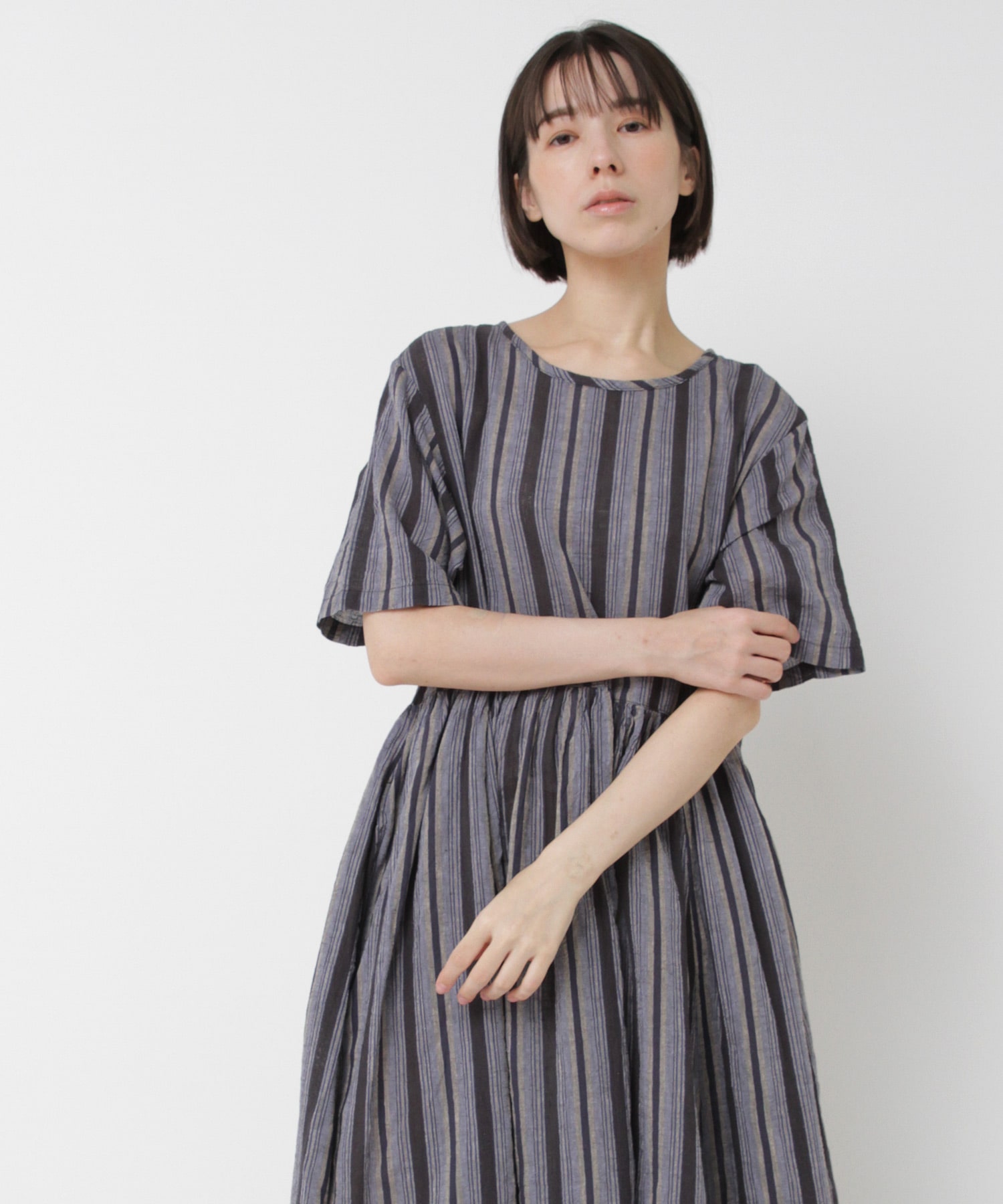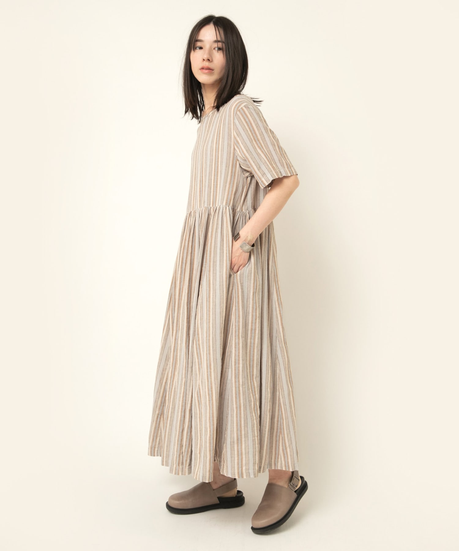 表情豊かなオリジナル生地で仕立てた、夏に映えるマルチストライプワンピ
