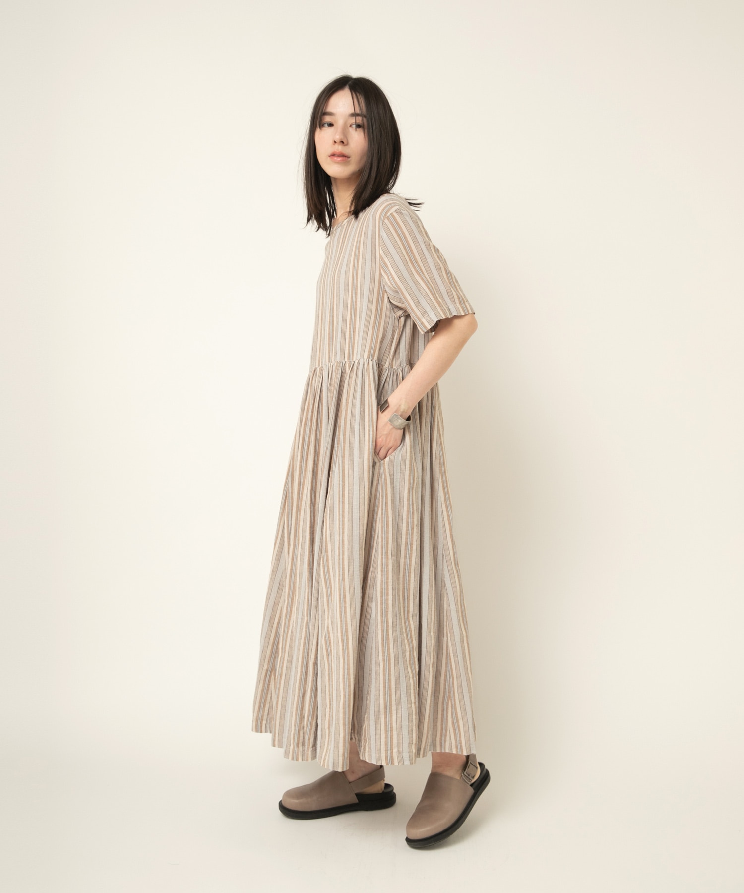 表情豊かなオリジナル生地で仕立てた、夏に映えるマルチストライプワンピ