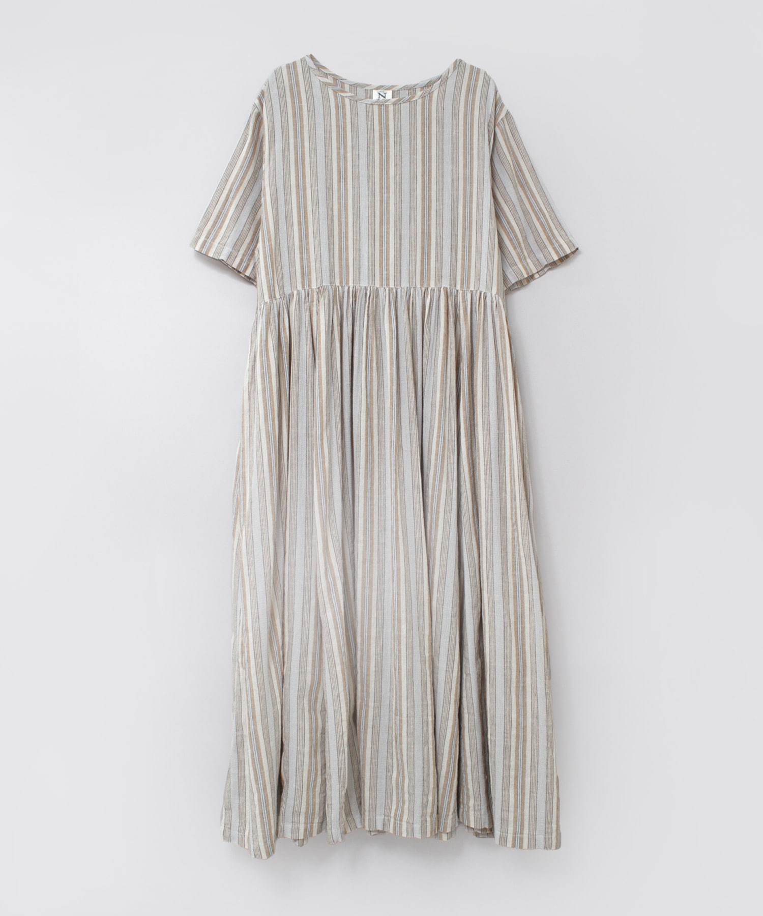D1678 マルチストライプギャザーワンピ