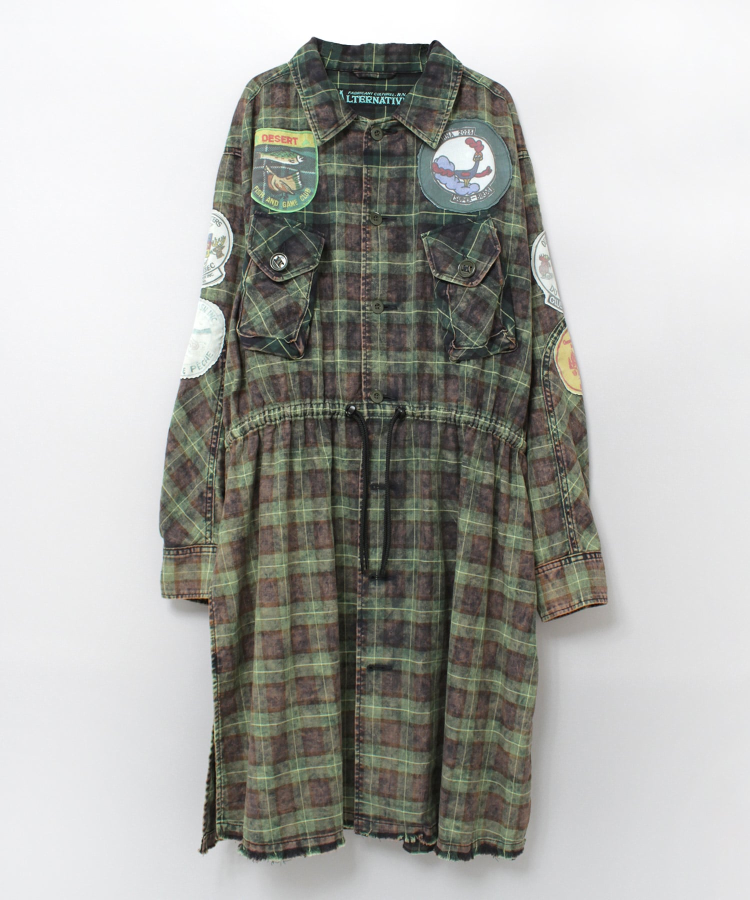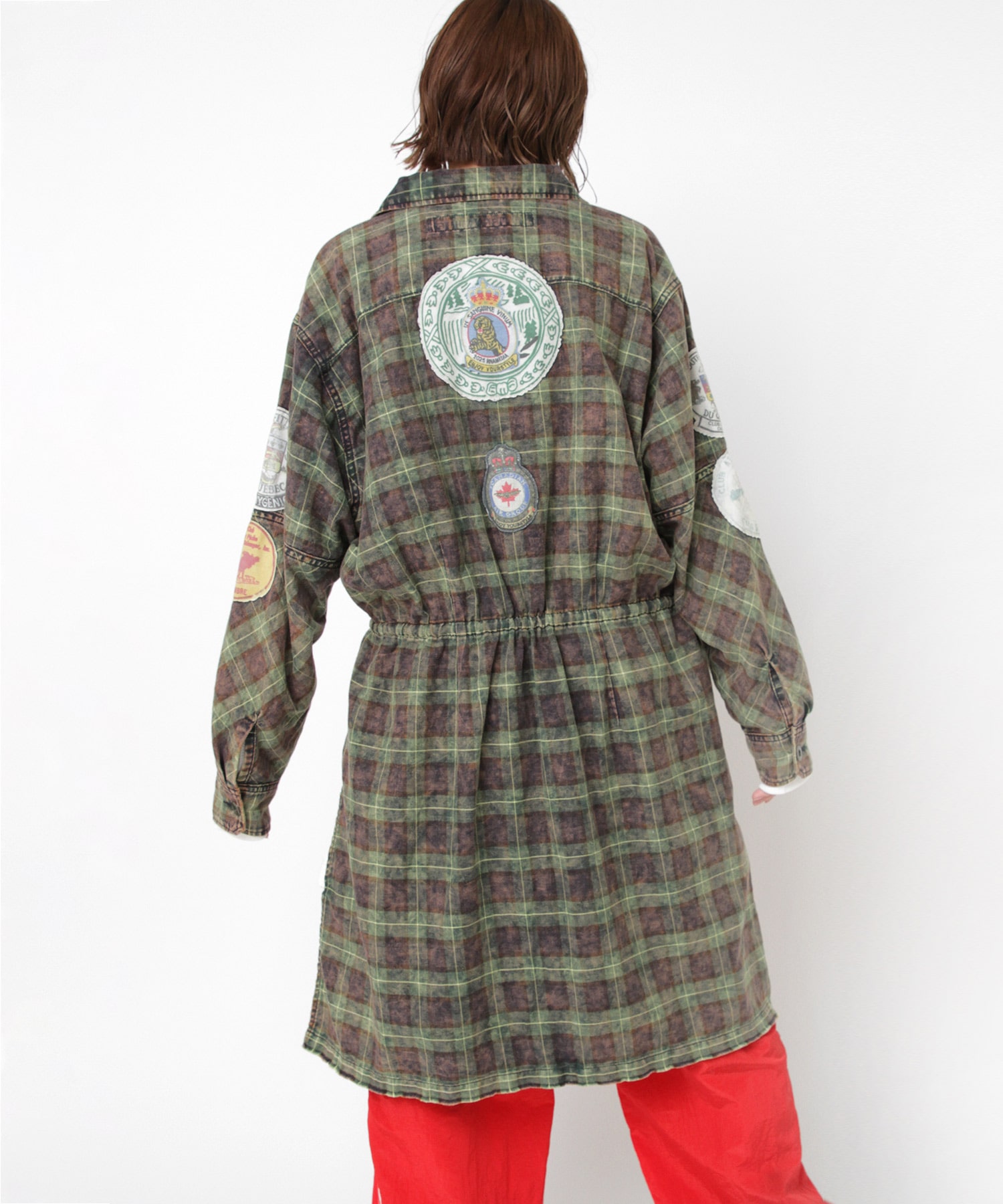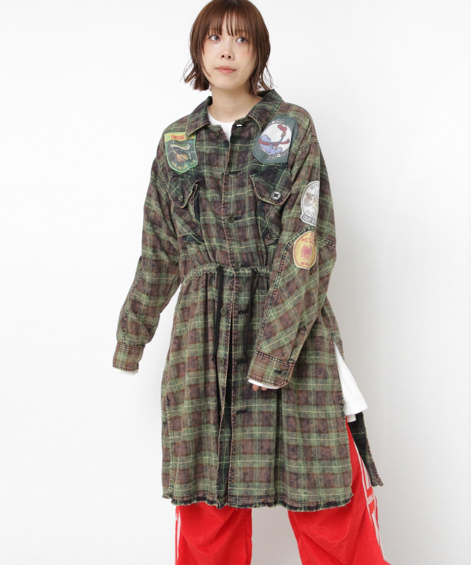 ミリタリーシャツの丈を伸ばしたようなデザインシャツワンピース