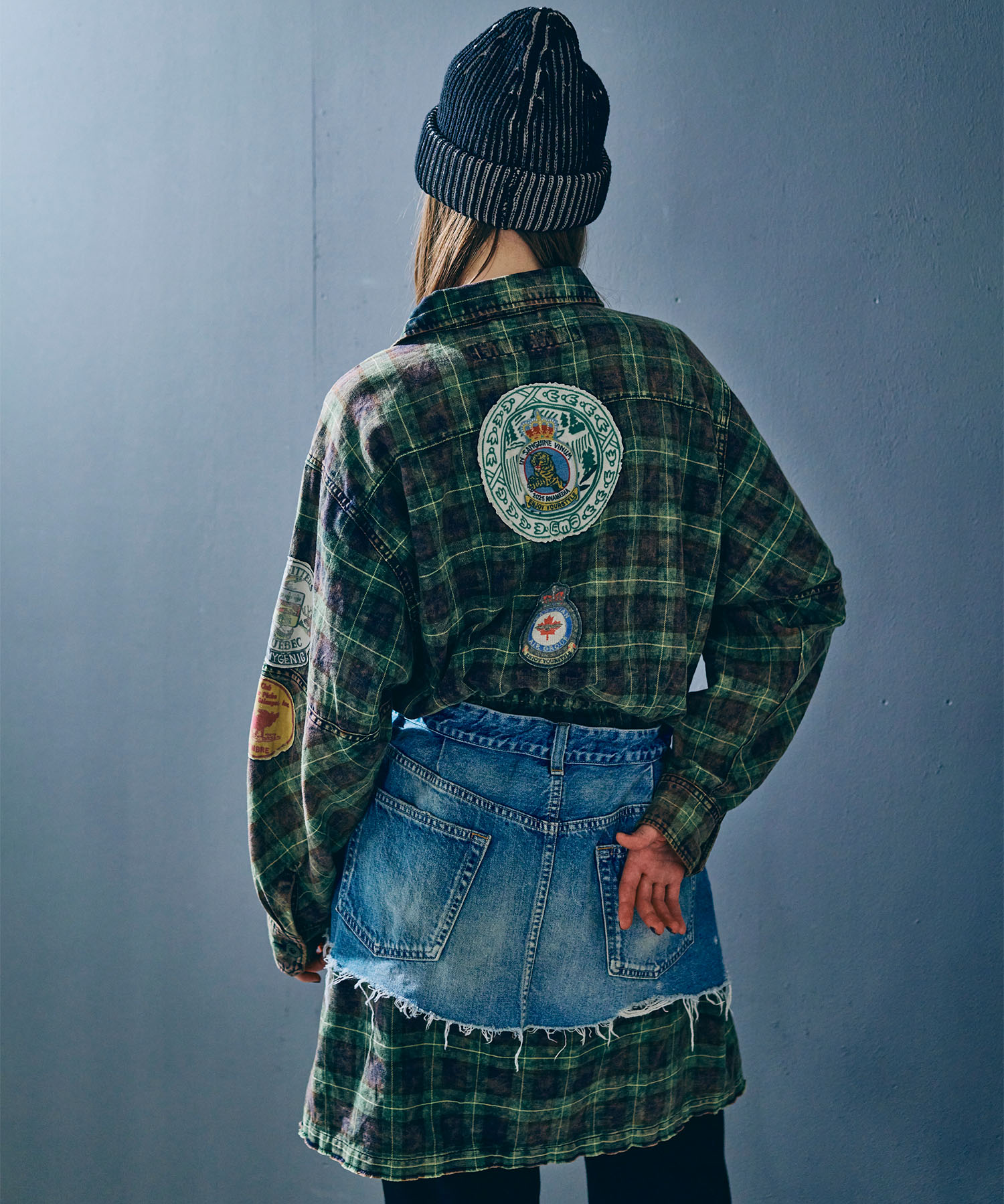 ・カラー436は古着ライクなプリントワッペンをつけたケミカル加工