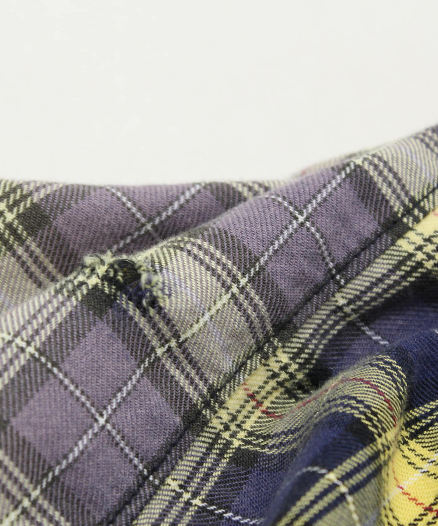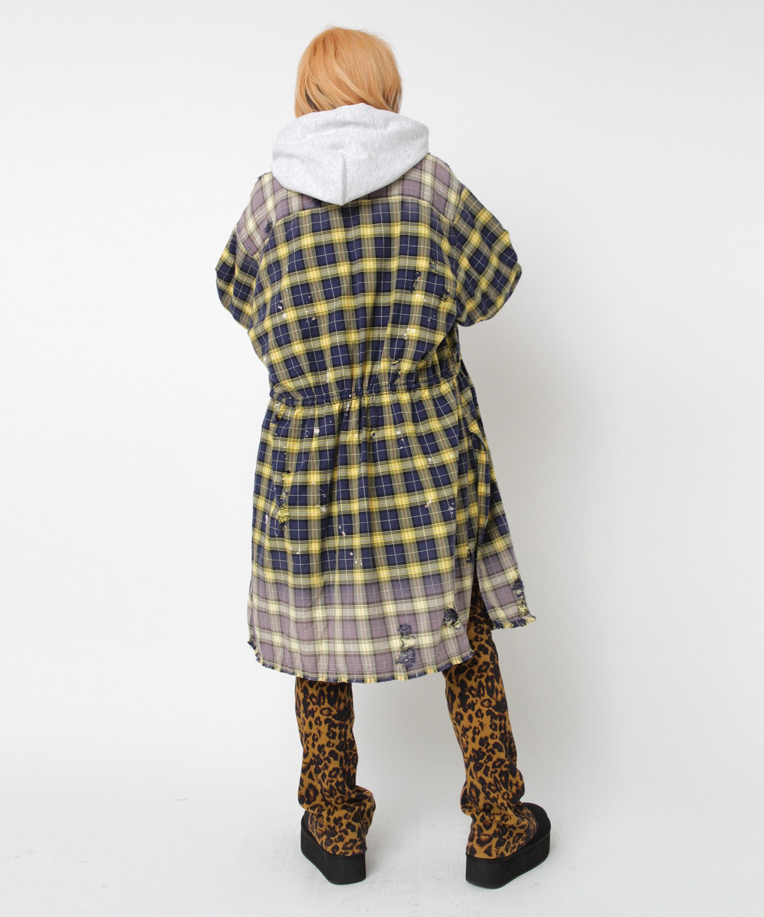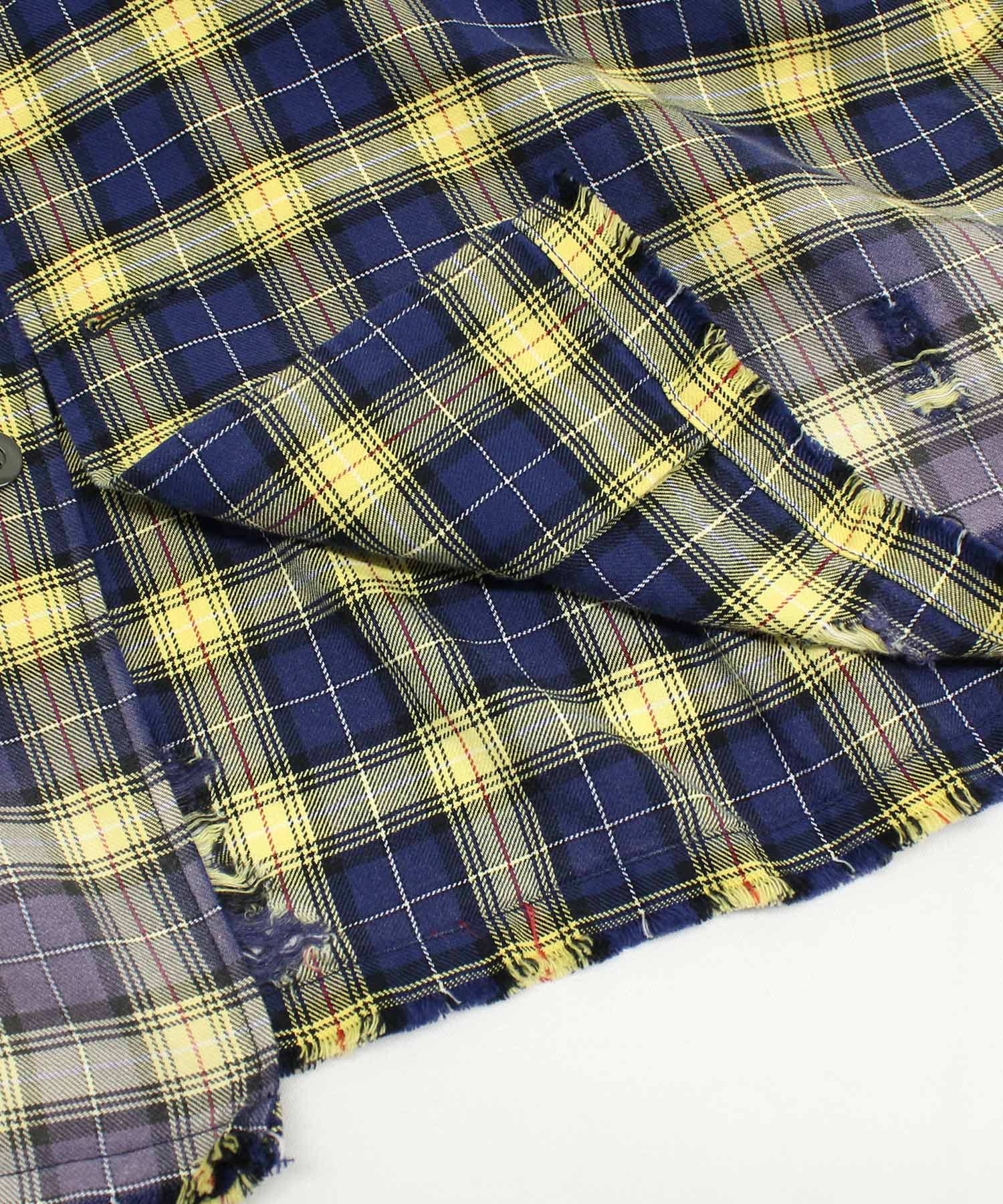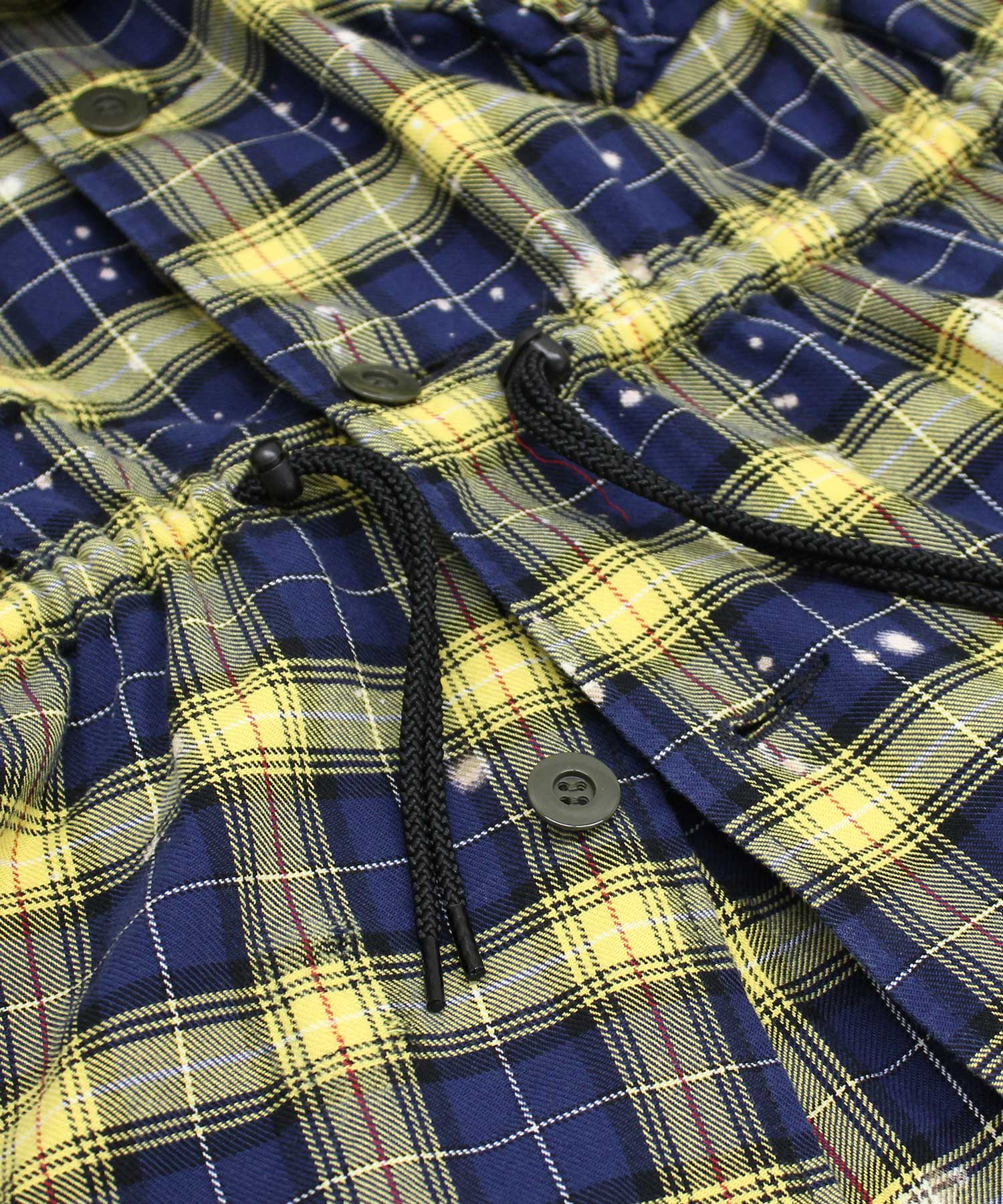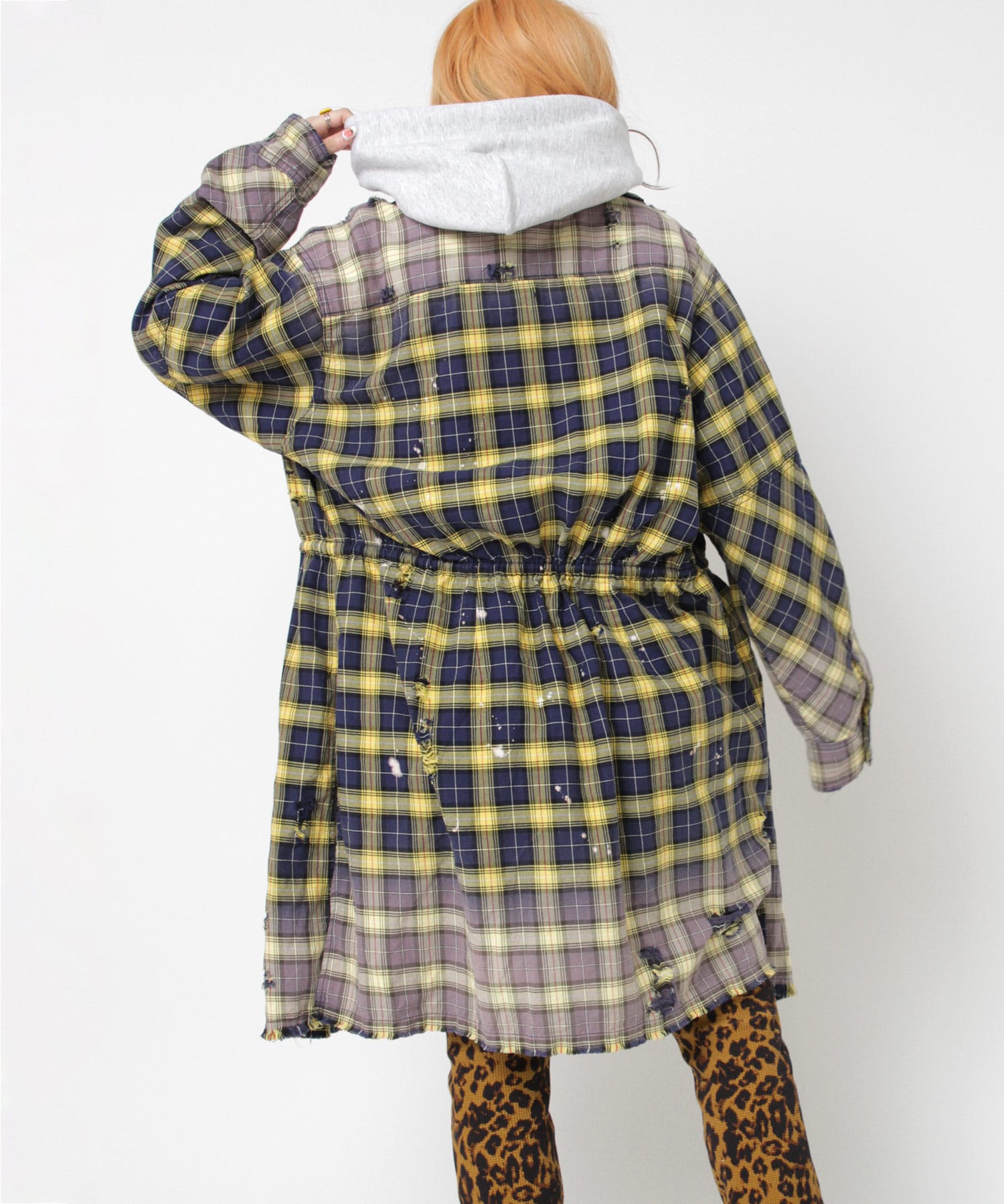 深く入ったサイドスリットが軽快に着用していただけます。ウエストコードでブラウジングする事でスタイルに変化を付ける事ができ、軽い羽織としてもお使い頂けます。伝統的な英国調のタータンチェックを手作業による激しい加工をする事で商品の個性を高めました。