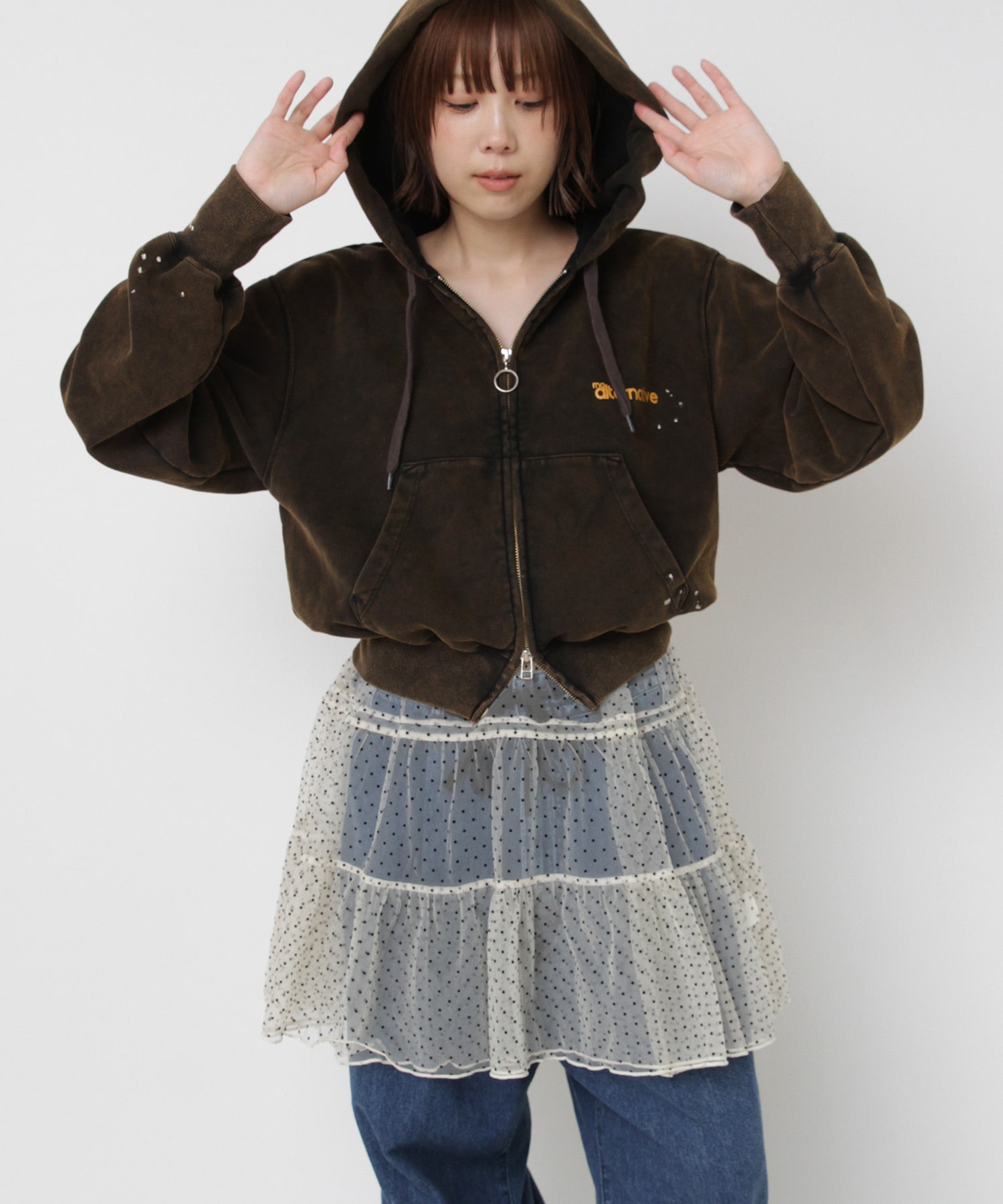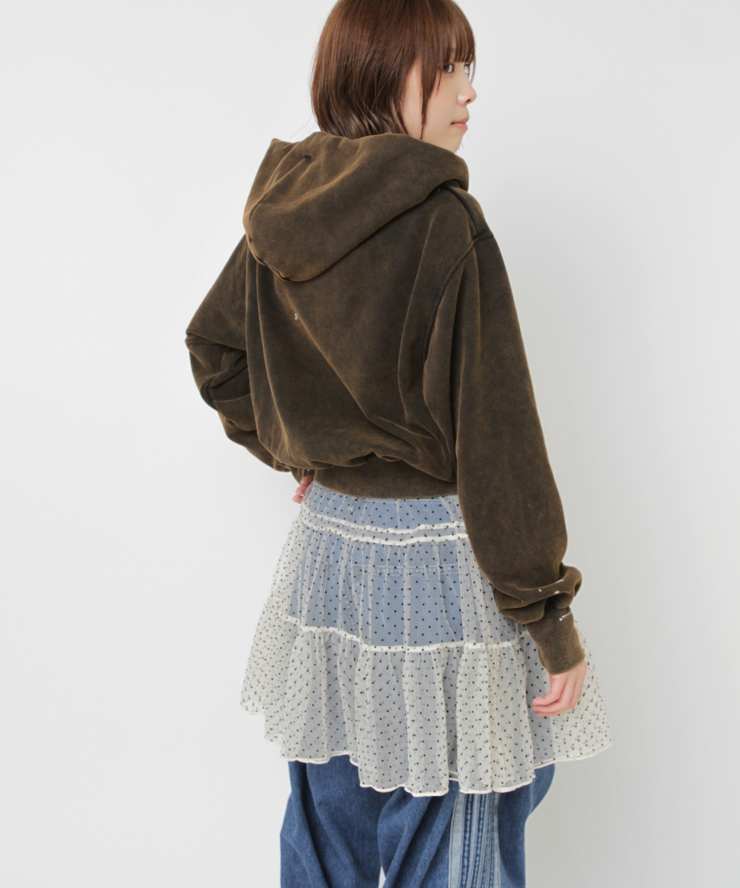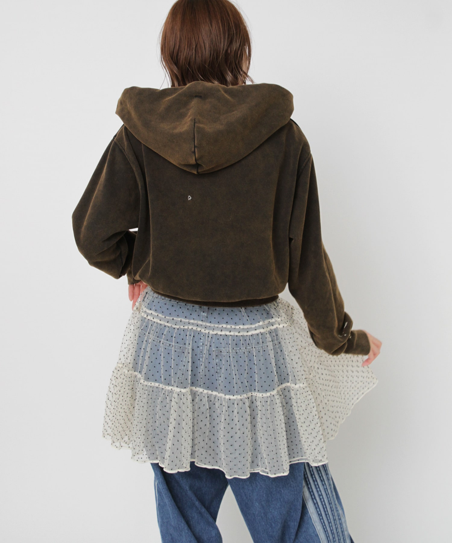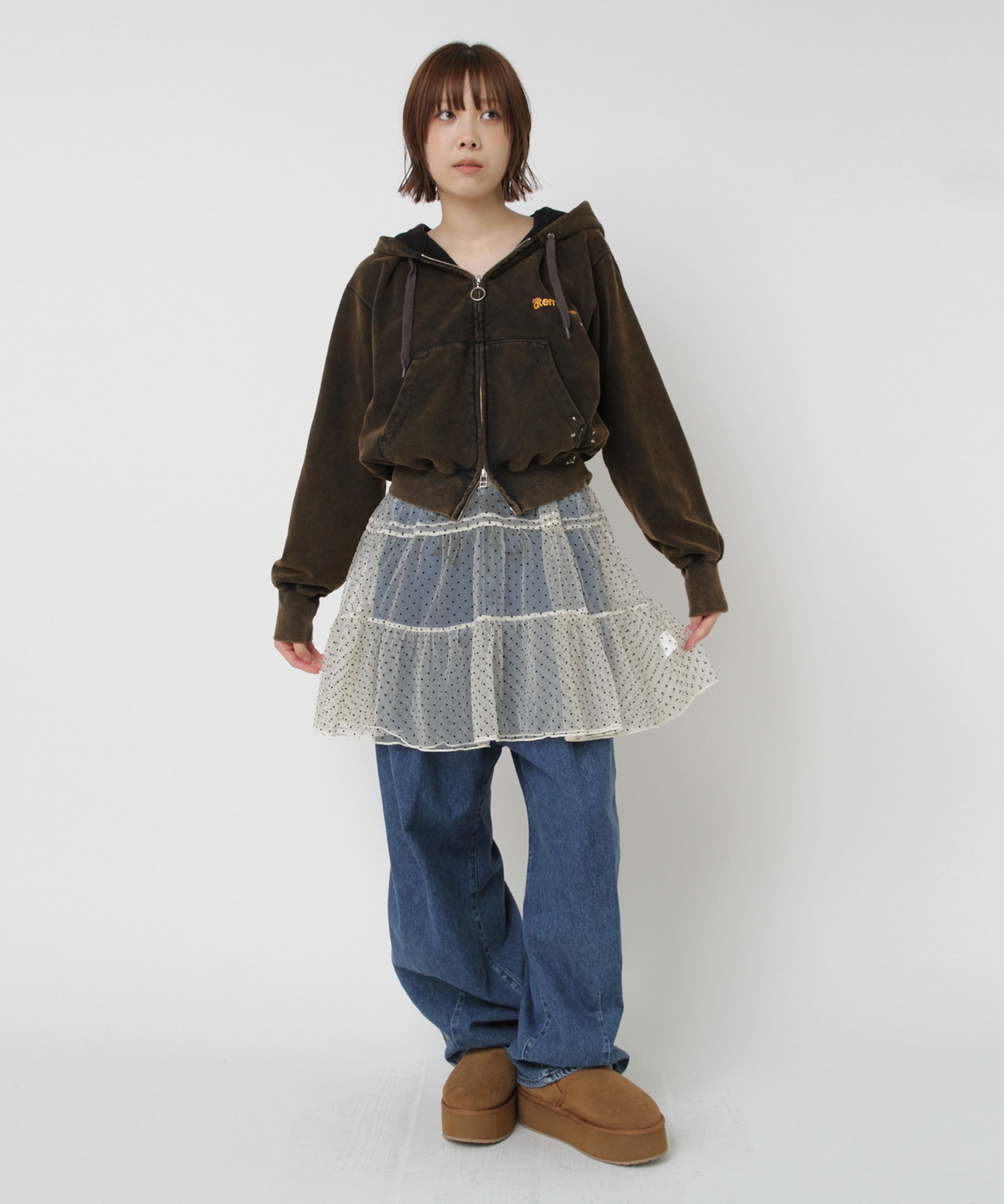 くたくたの着古したようなアイテムとチュールの繊細な感じが甘すぎず、RNAらしく他にはないコーディネートに仕上げてくれます。