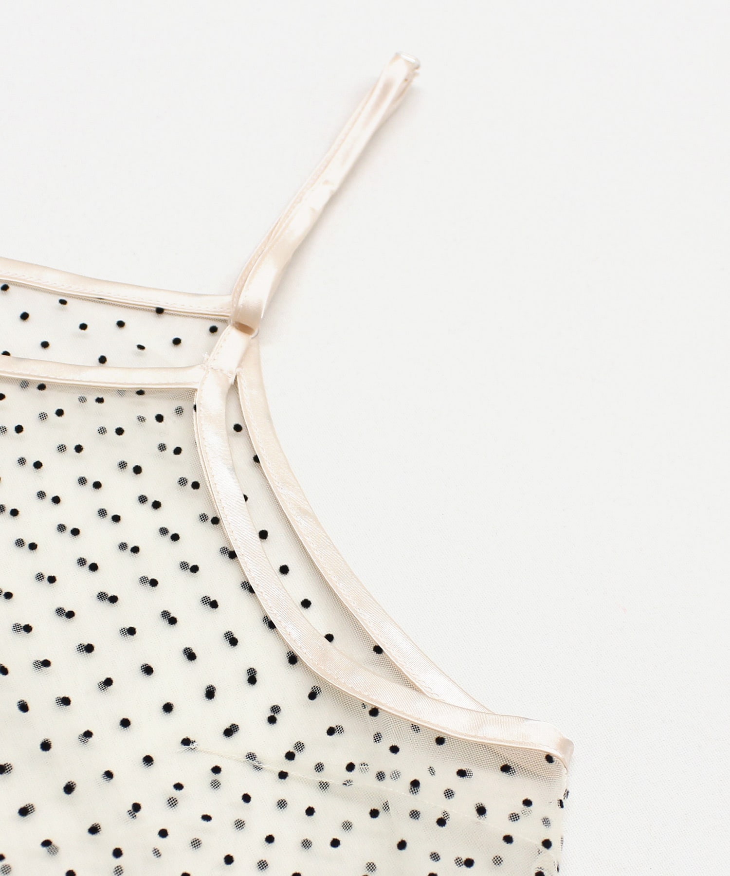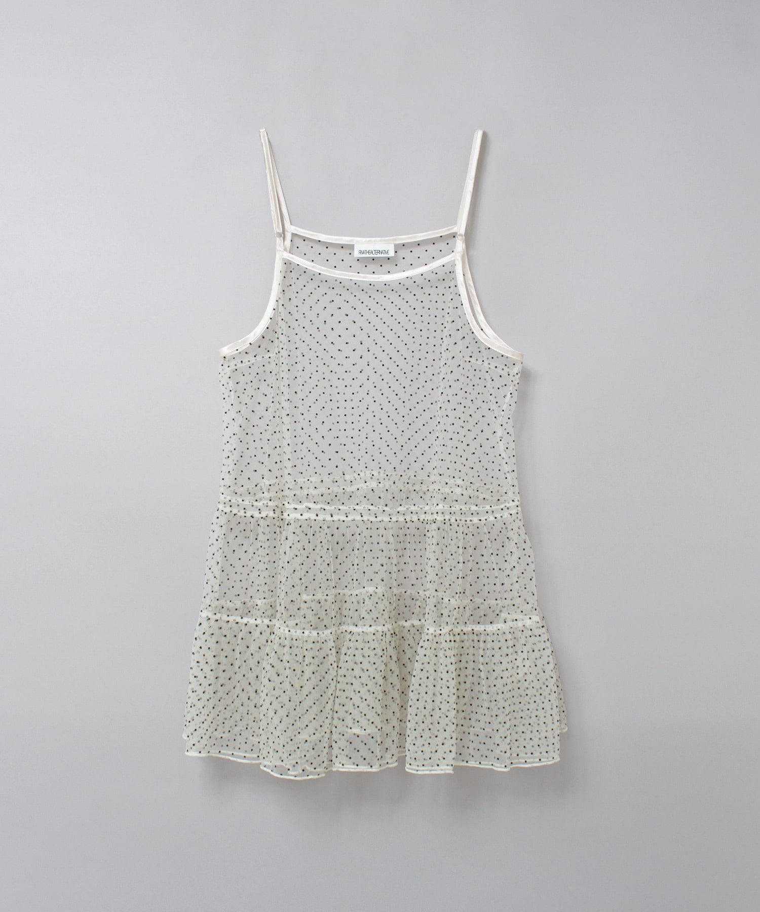 肩紐や上半身は華奢で、ボリュームのあるスカートが甘すぎず丁度よいバランスのワンピ。