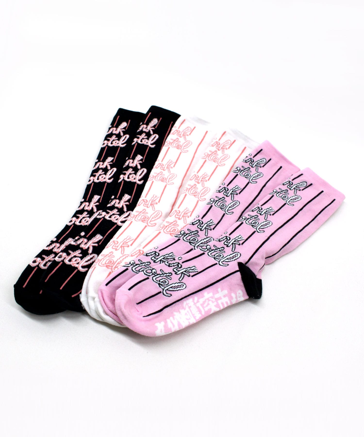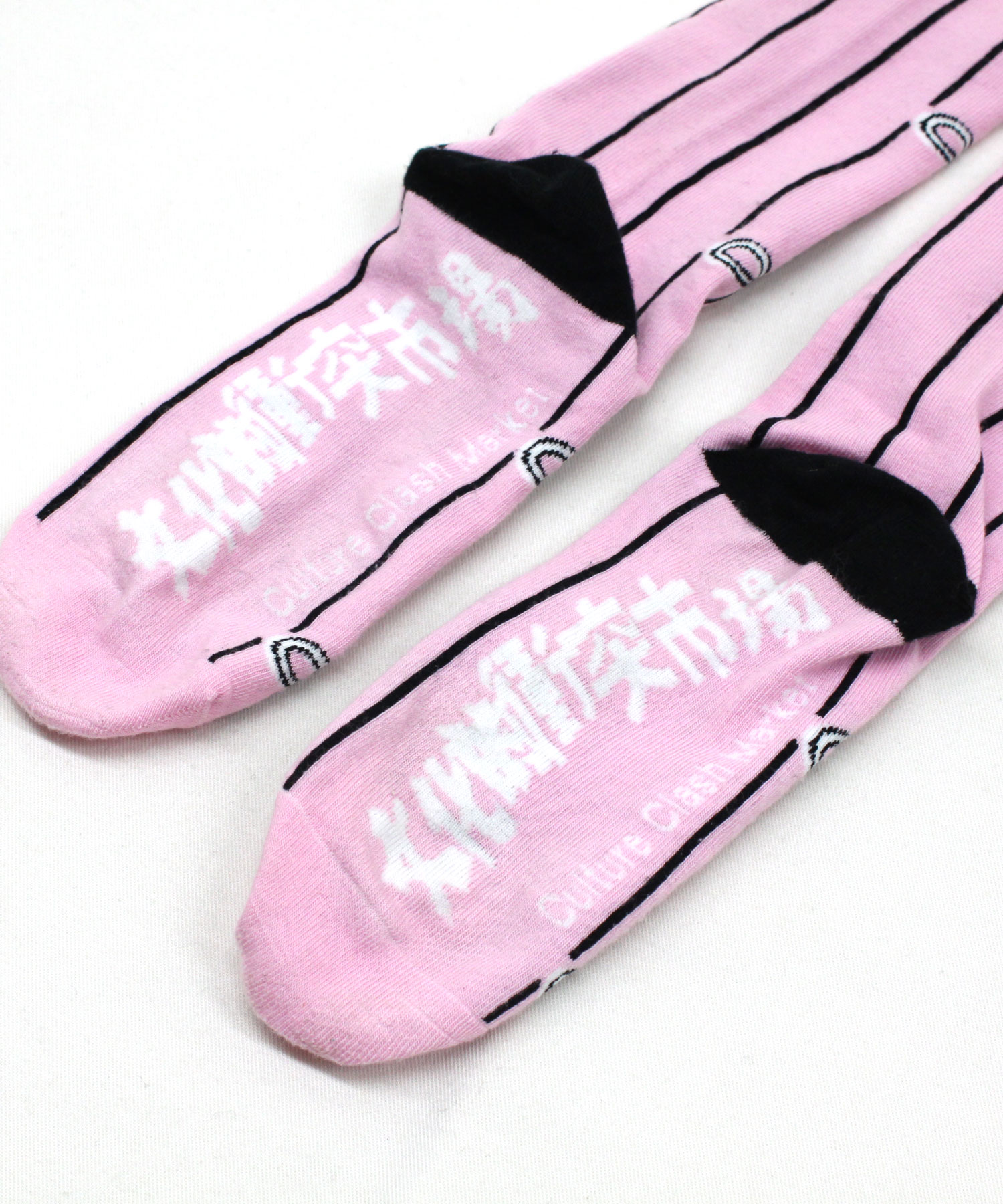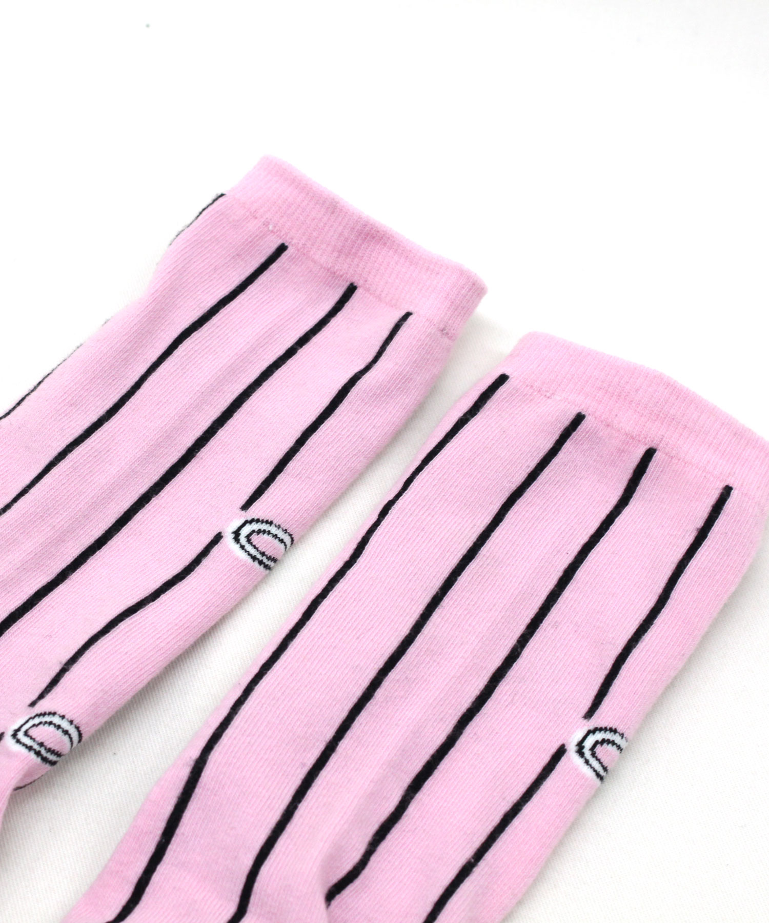 ピンストライプにPMネオンサインを前甲に編み込んだクールなソックス。