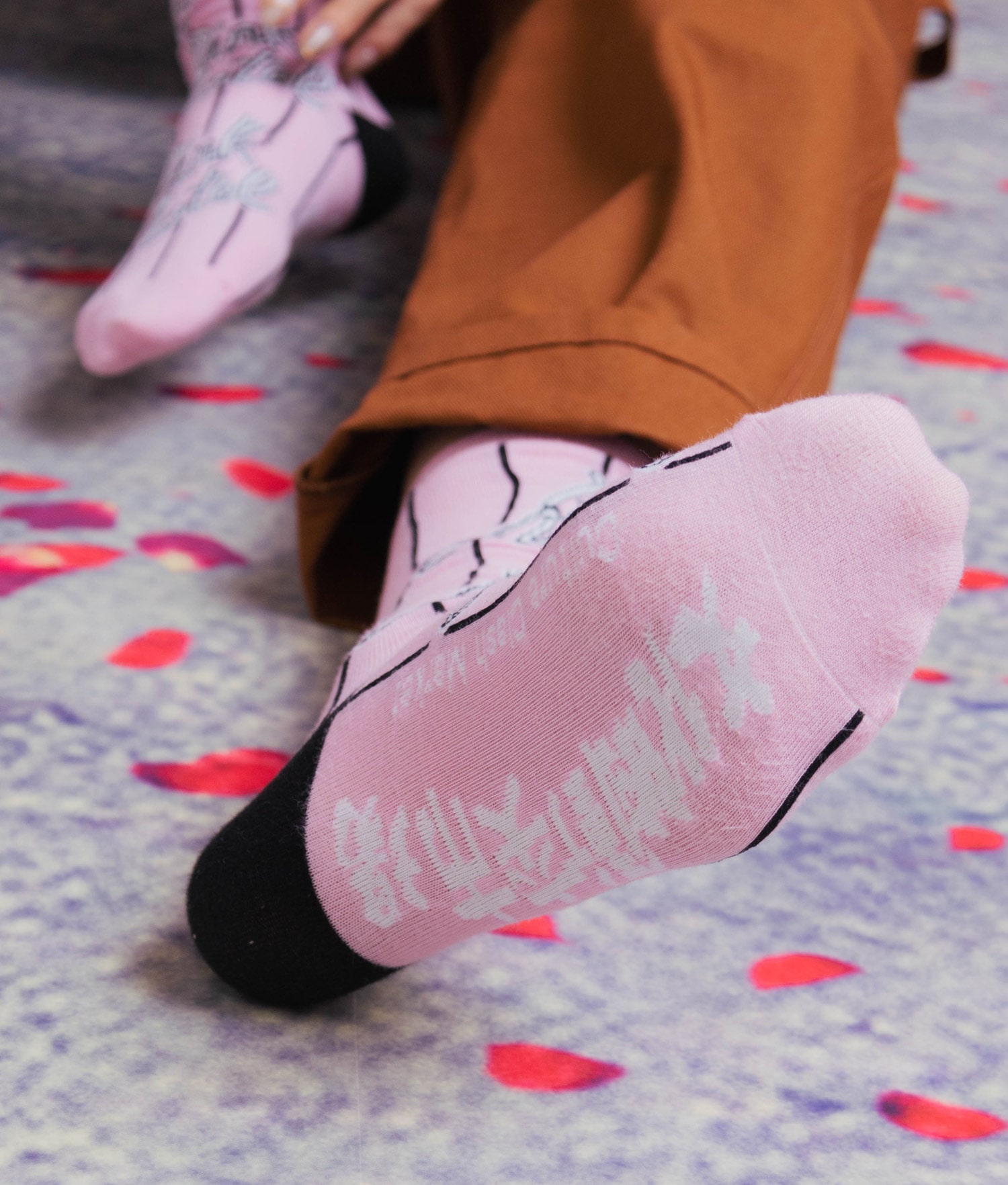 足裏に今回のテーマ文言を編み込んでいるのもさりげないこだわりになります。