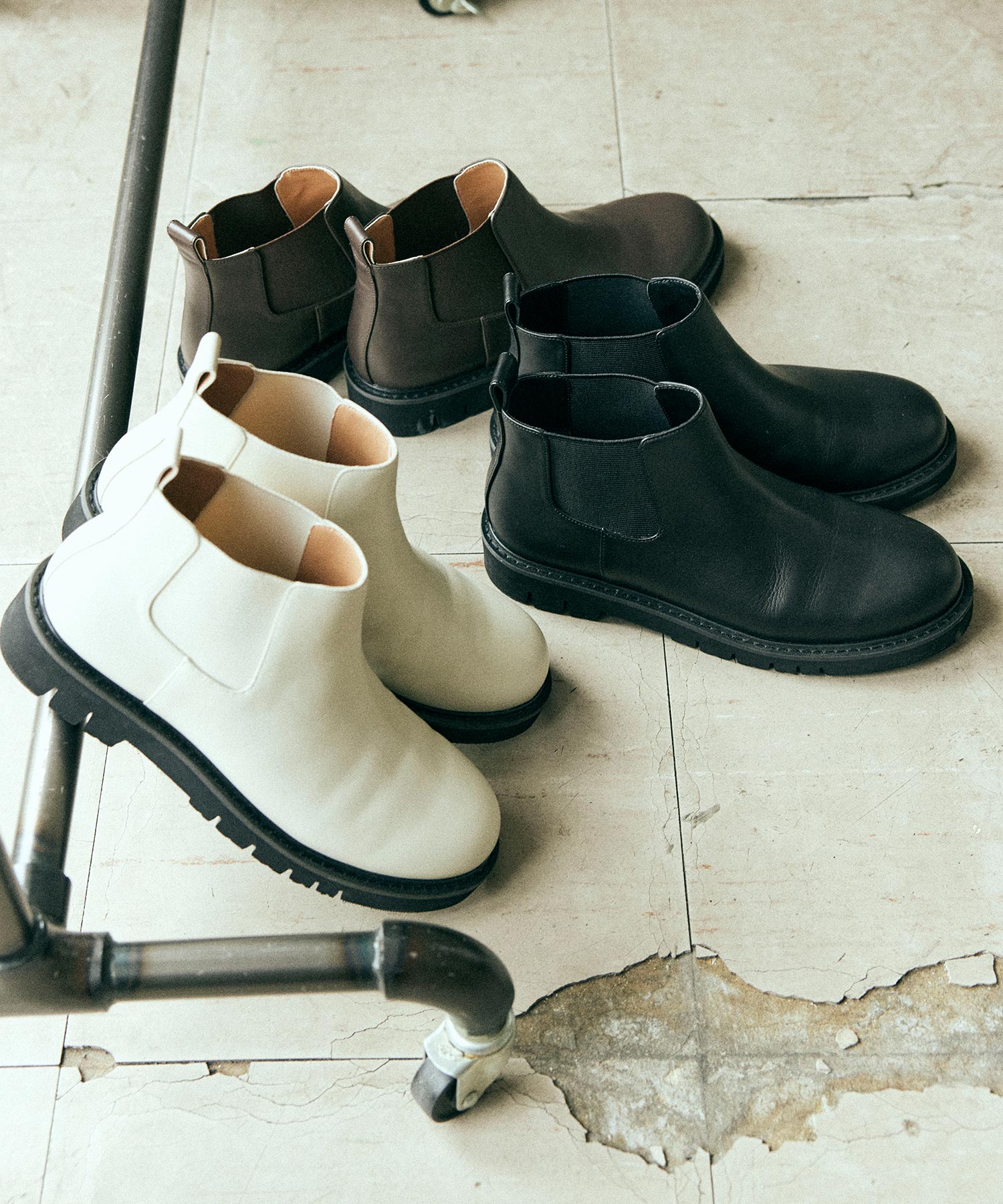 アンクル丈でパンツともスカートとも相性がいい本革のブーツです。
