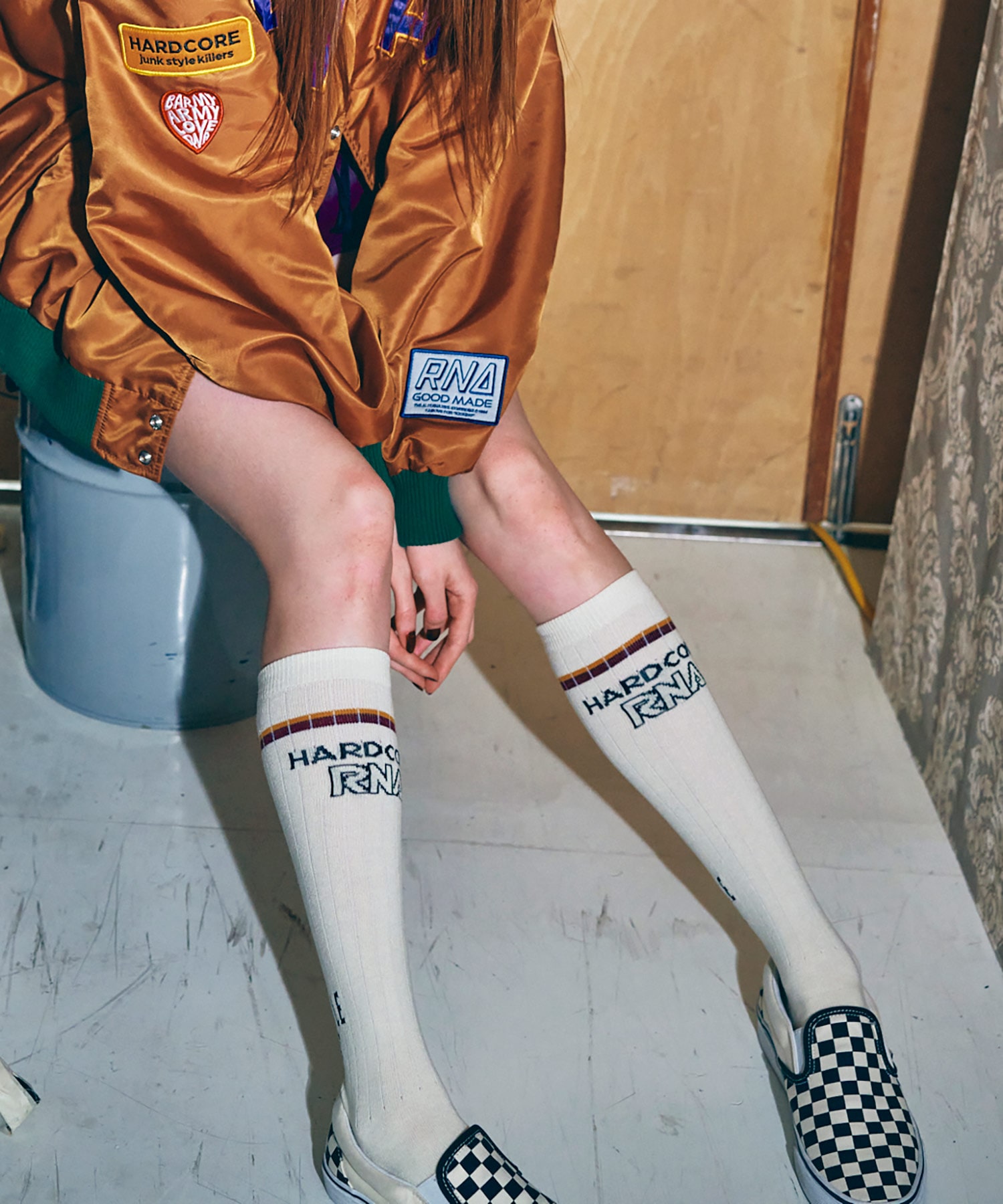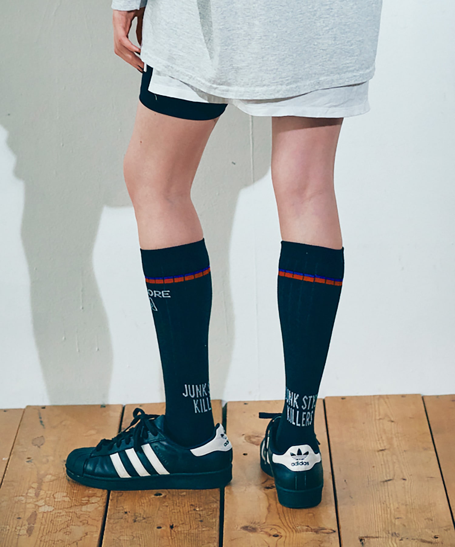 ハイソックスとして膝下まで伸ばして履くのが基本のイメージですが、クシュっと短くして履くのも可愛いです。