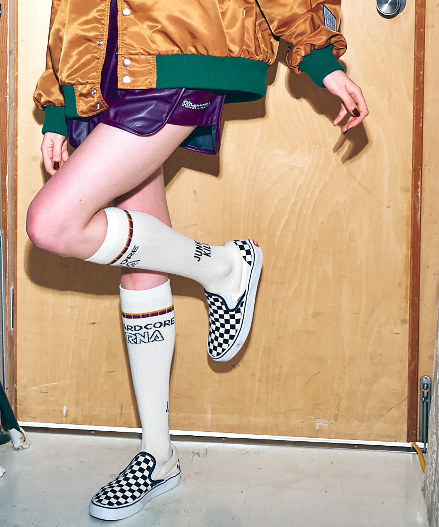 履き口の近くにあるカラーのラインは、スケートソックスをイメージしました。