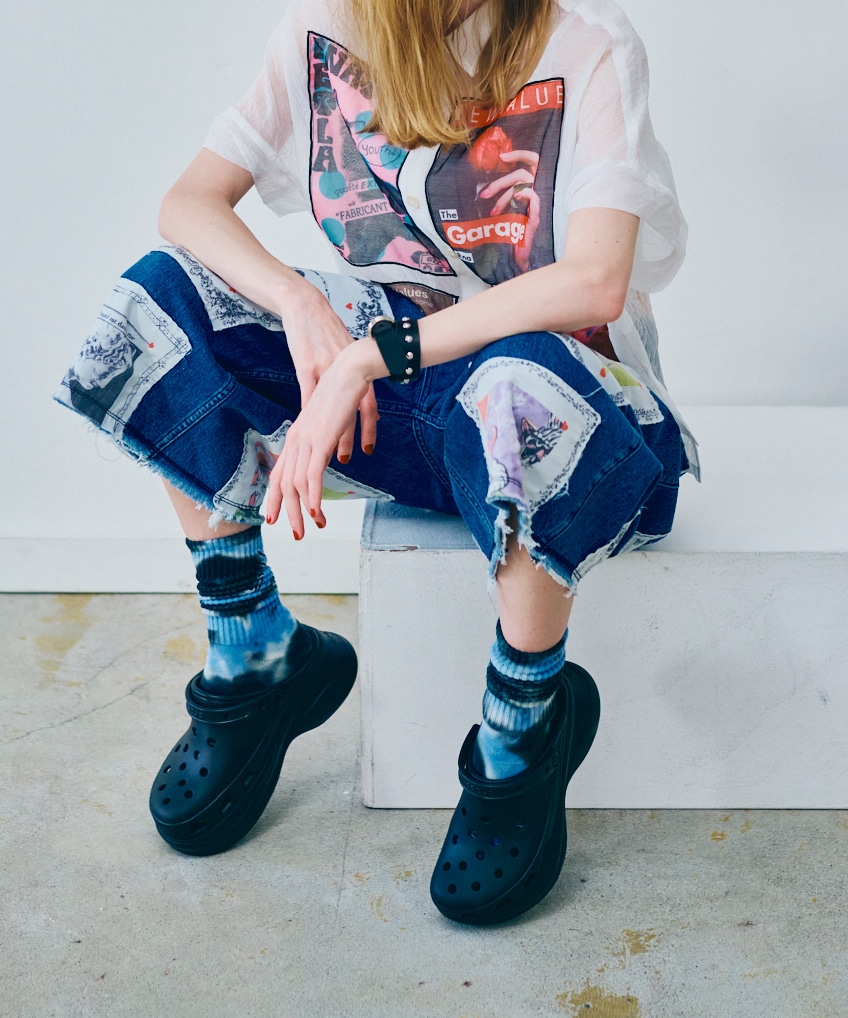2色のタイダイ染めが夏らしい色合いのスタイリングのアクセントにもなるソックスです。