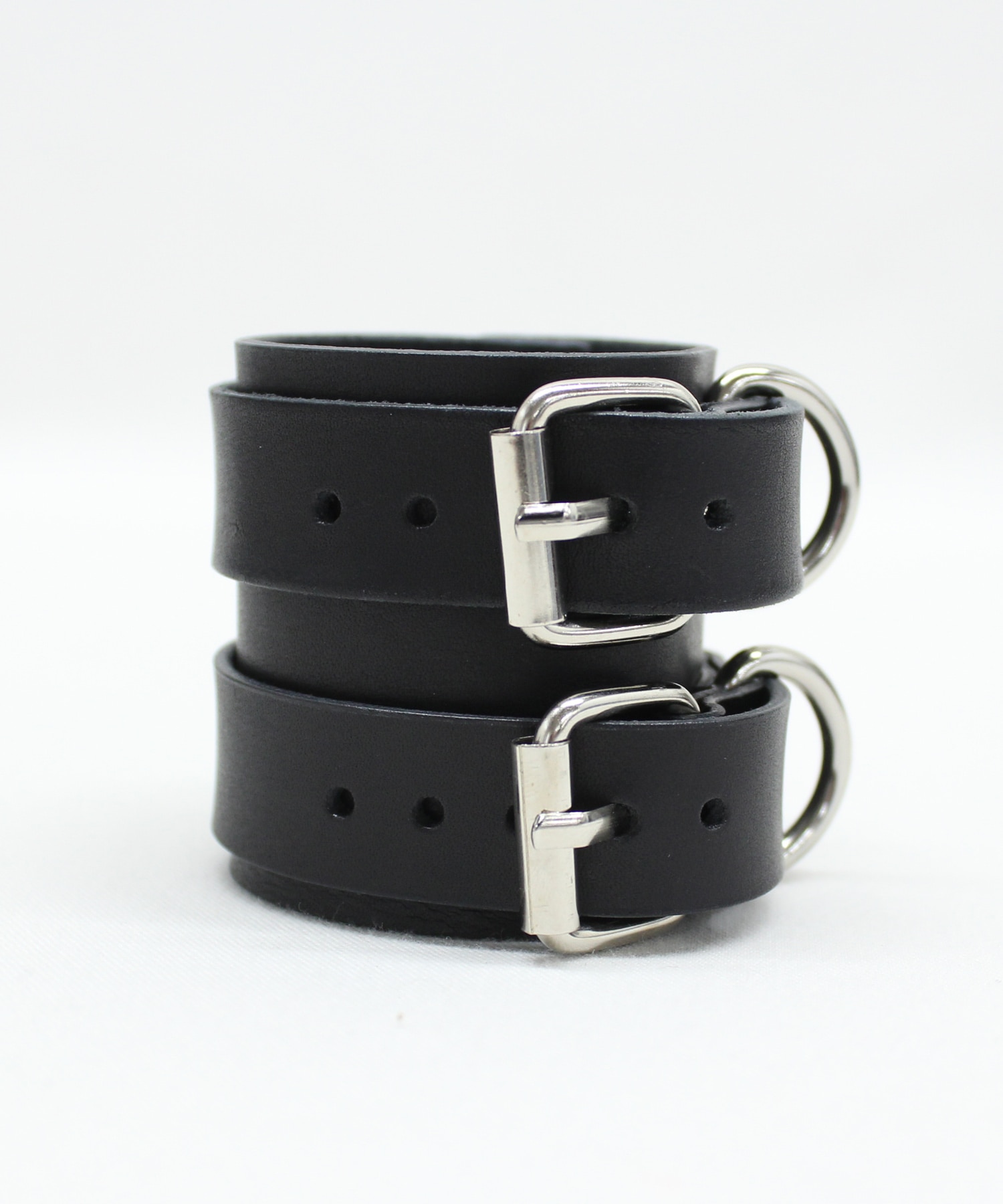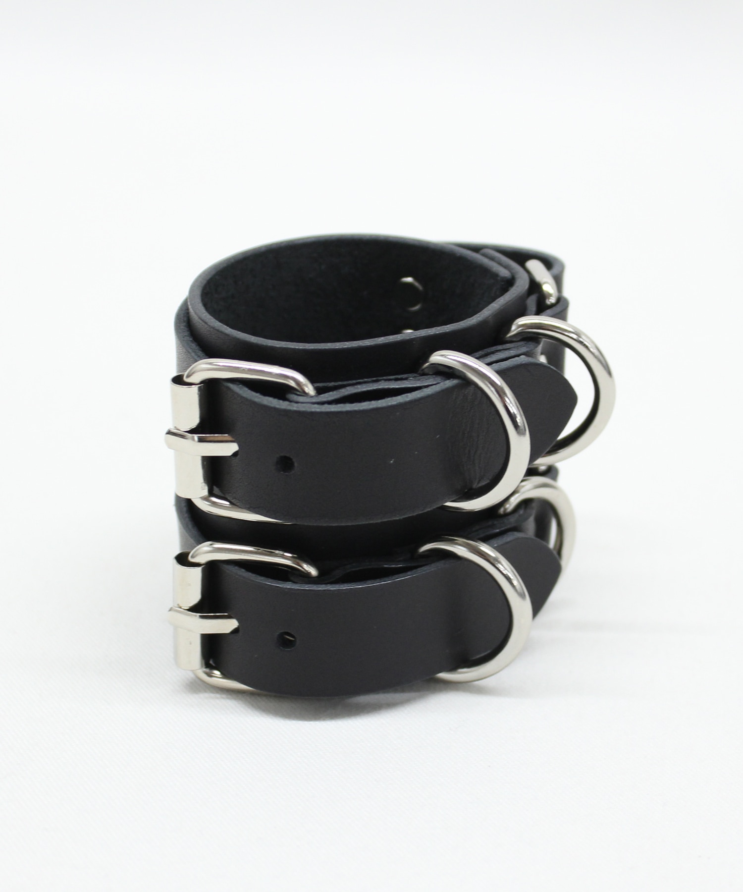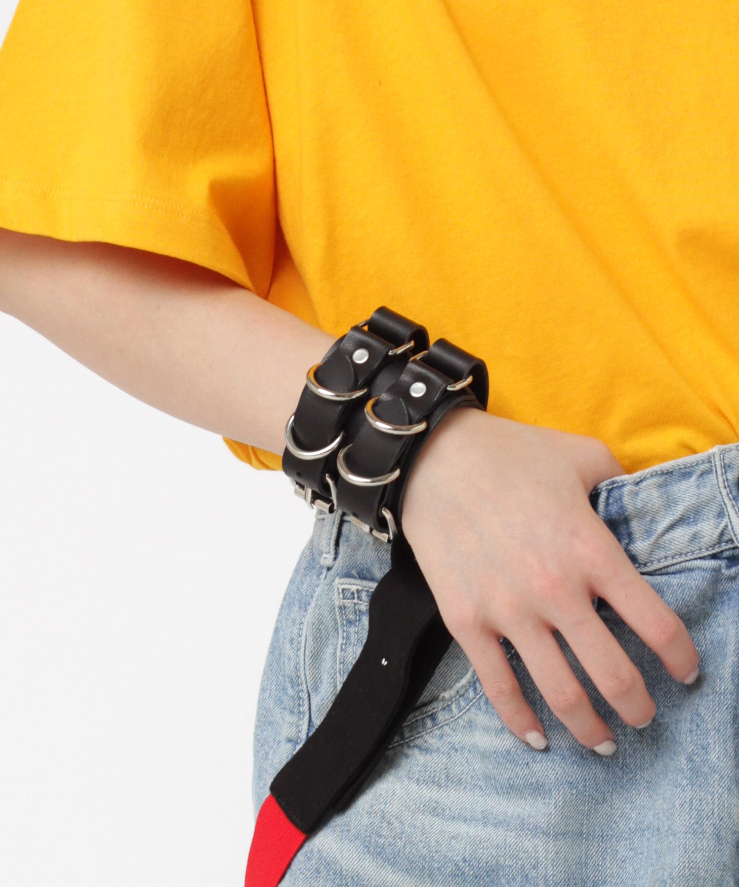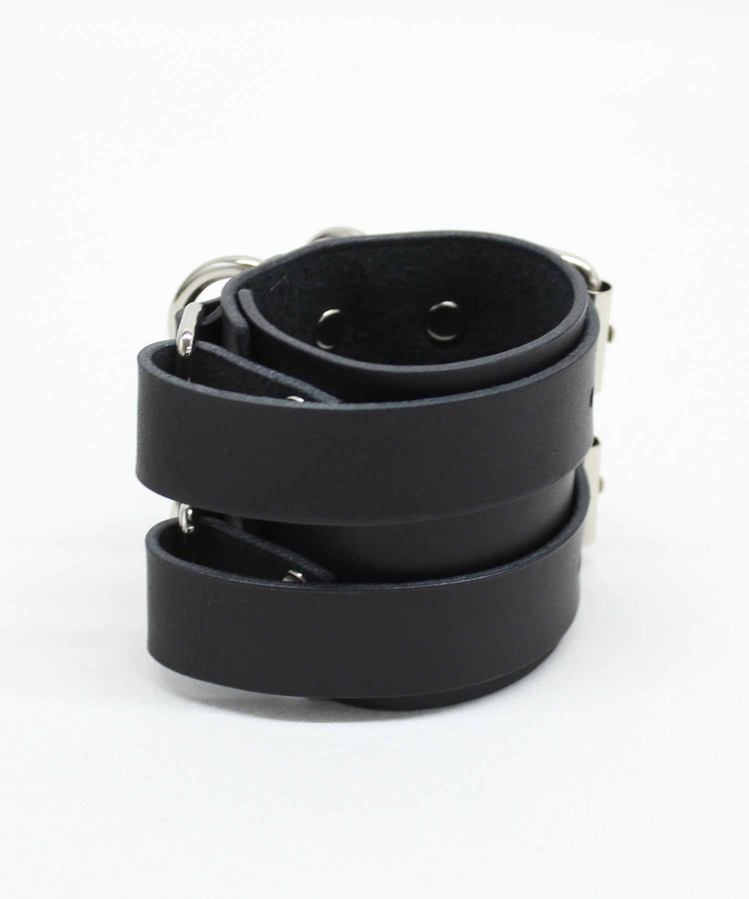ワイドなベルトを2本のベルトで止めて付けるタイプのリストバンド