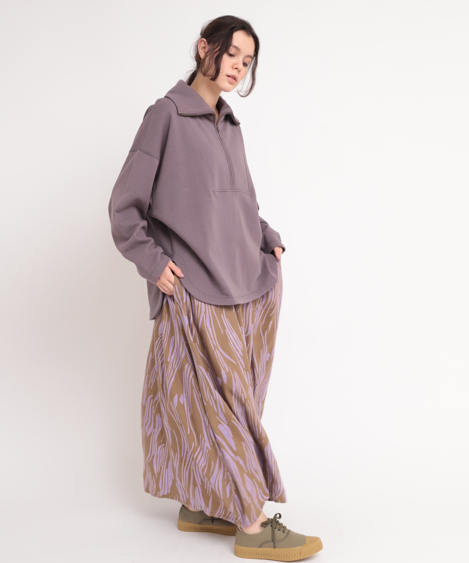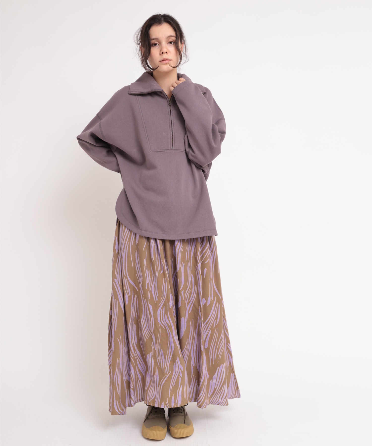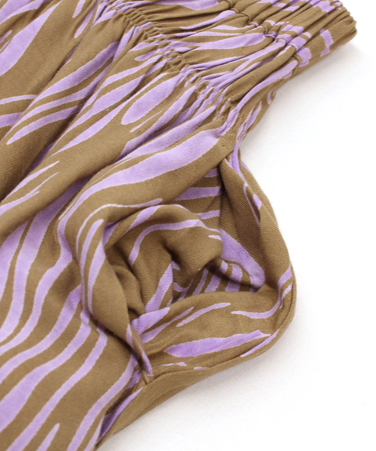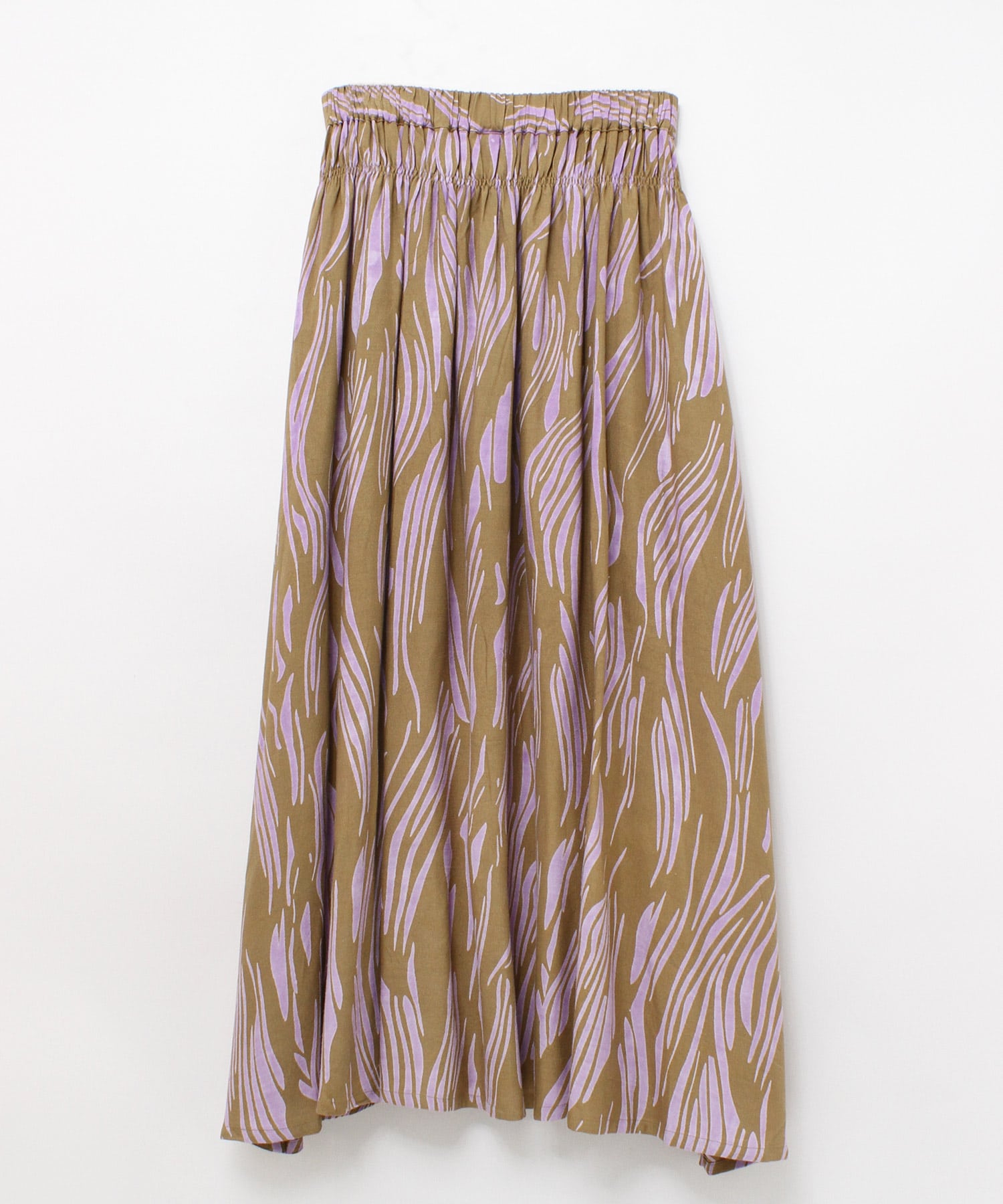 ギャザーたっぷりの裾はレーヨンの落ち感で、収まりよく、でもボリューミーに履いてもらえます。