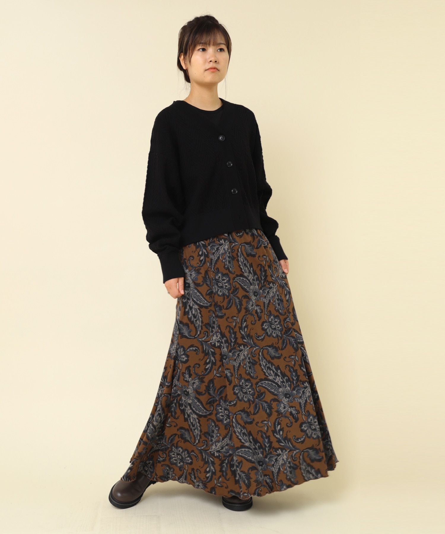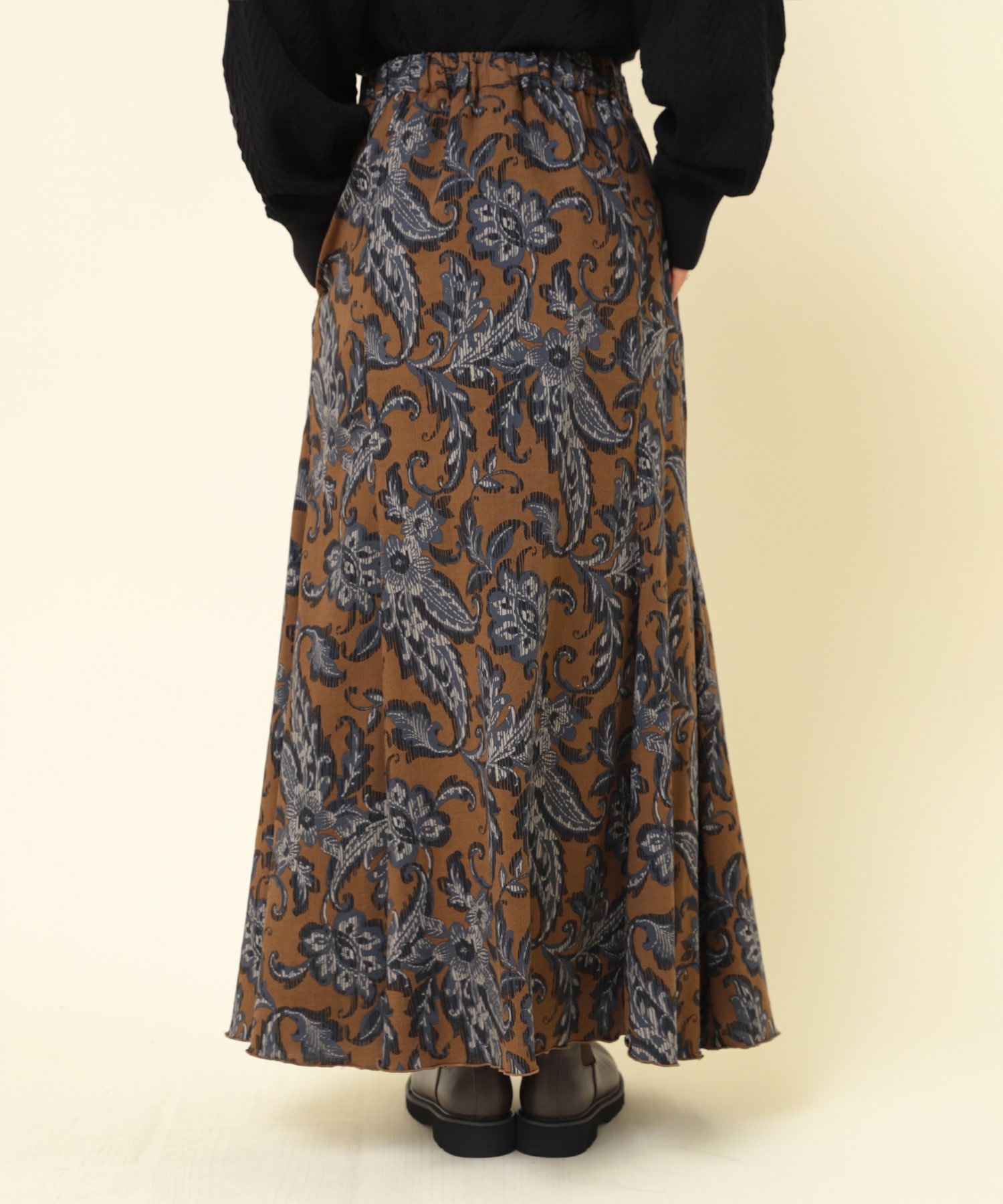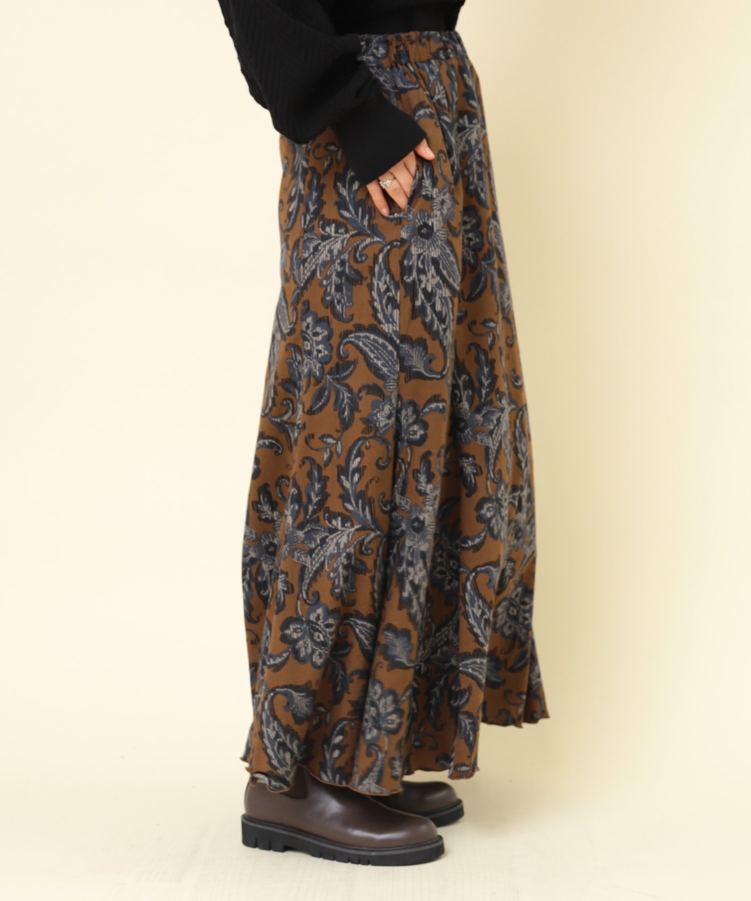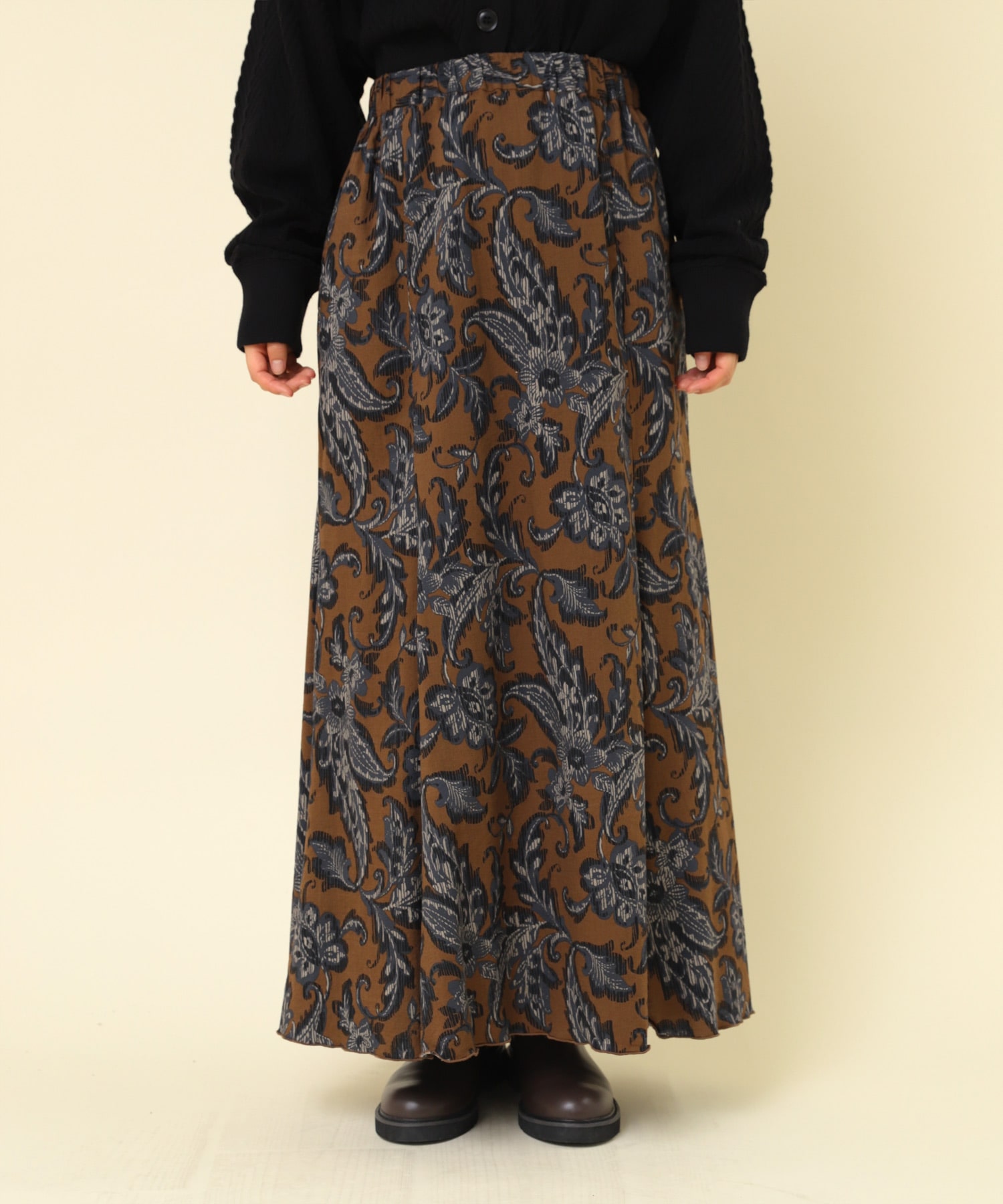 G1079 植物柄プリントフレアロングスカート