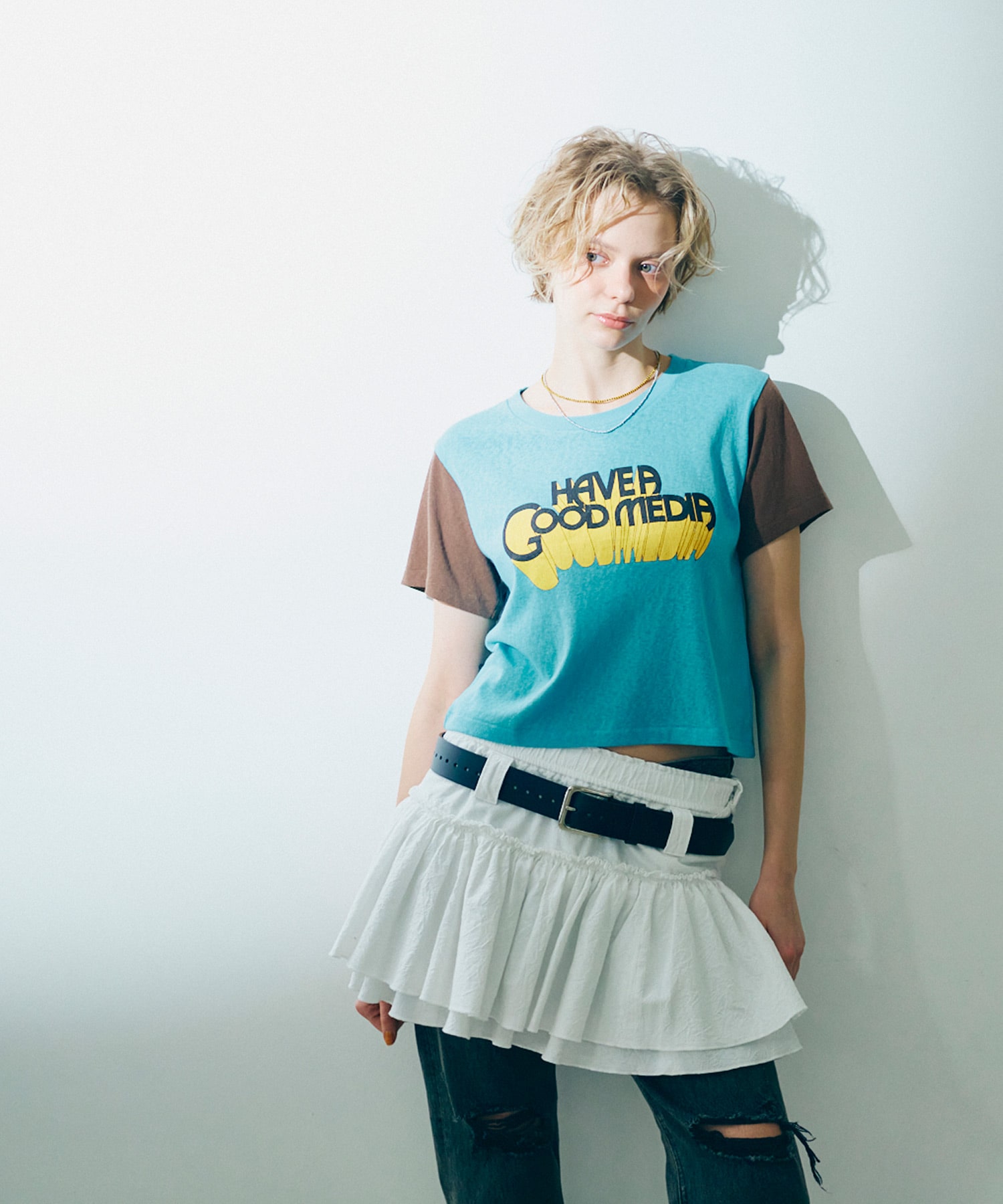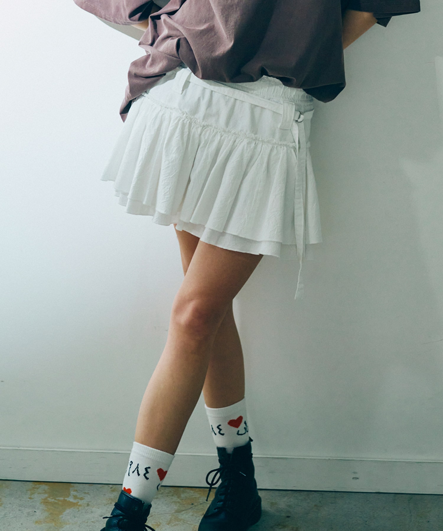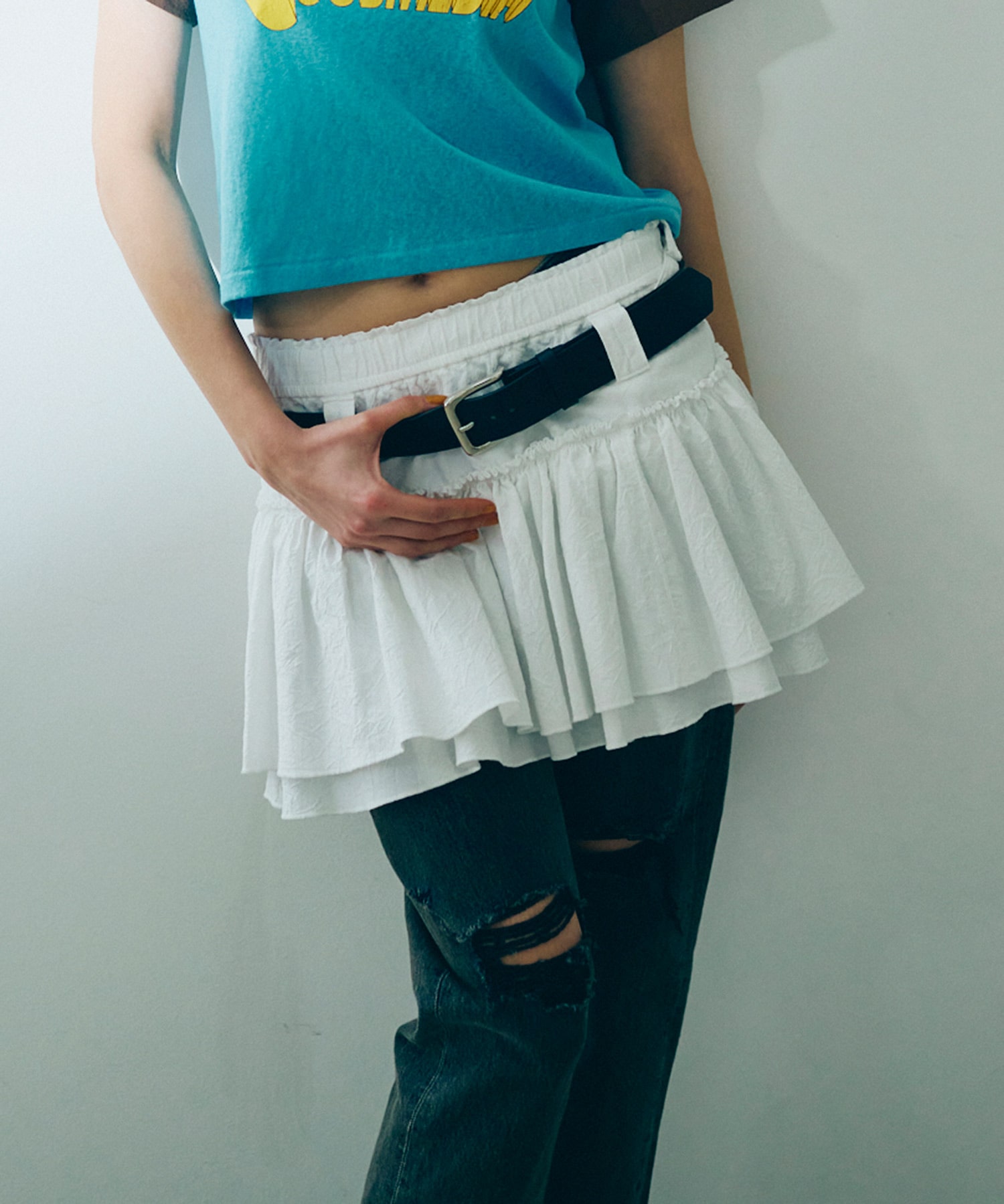 ラフな雰囲気のあるシーチングにワッシャー加工が施された生地を使用したミニスカートです。