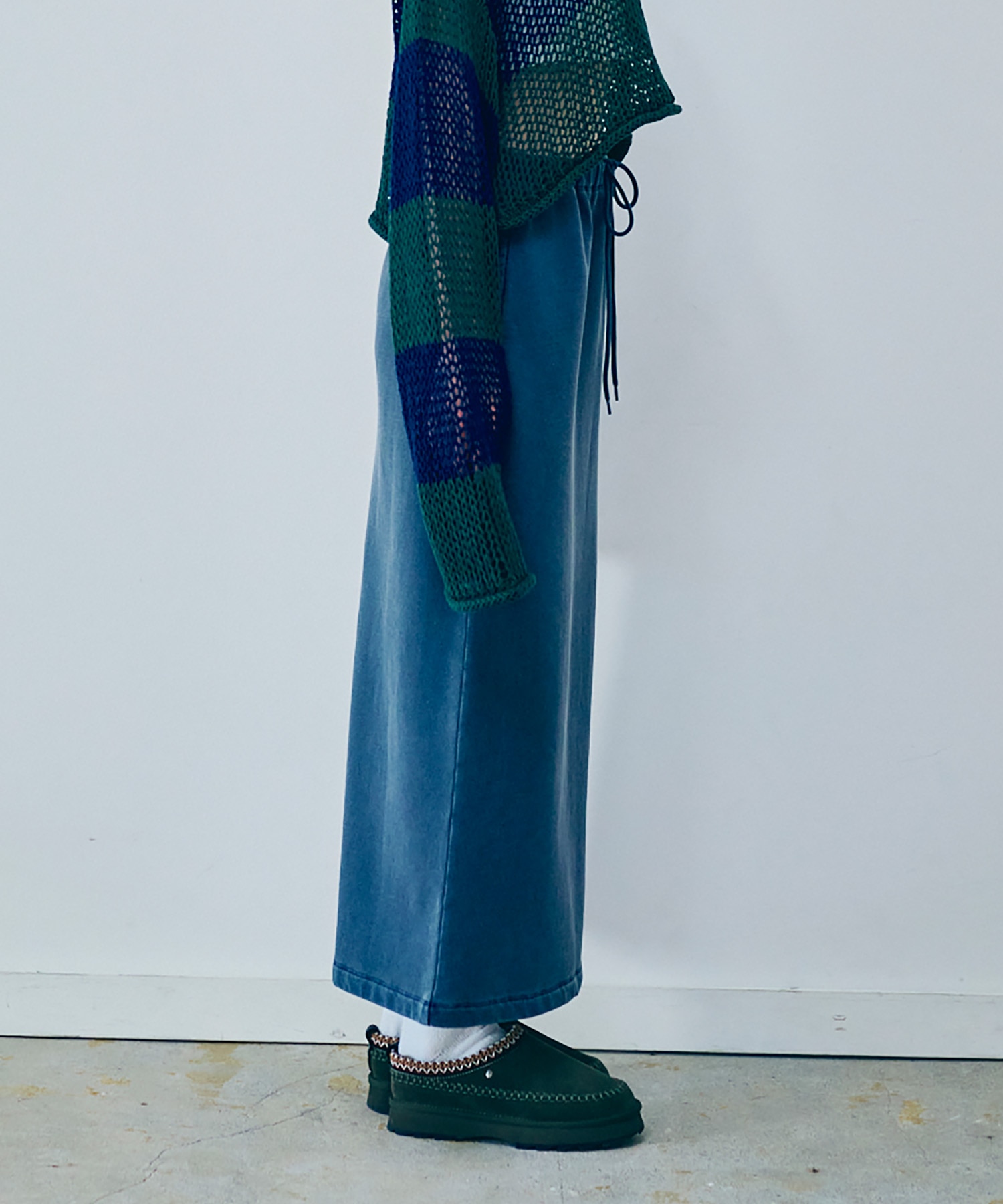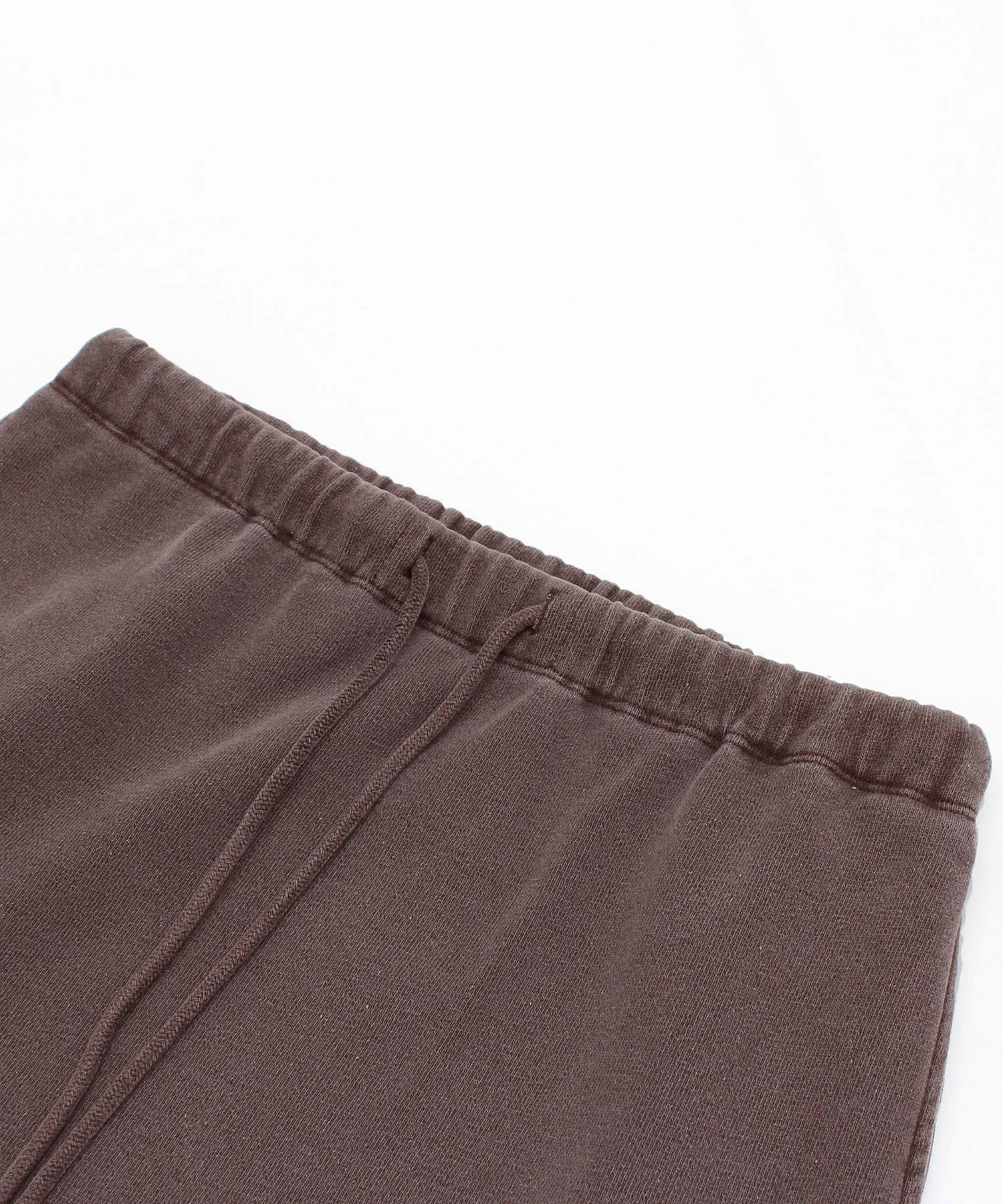 太番手のオープンエンド糸特有のうねりがピグメントの色落ちと色溜まりを際立たせより古着ライクな仕上がりになっています。