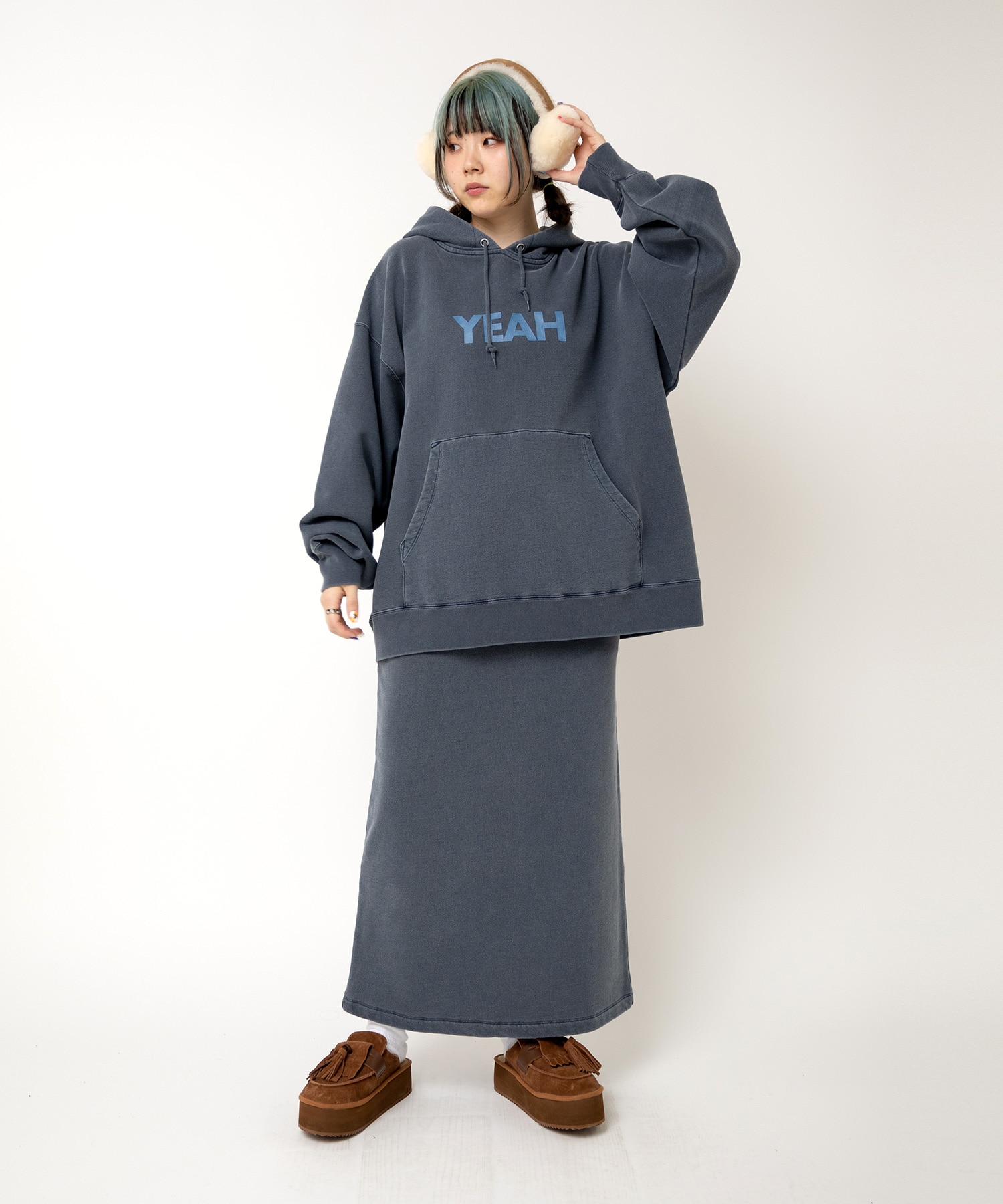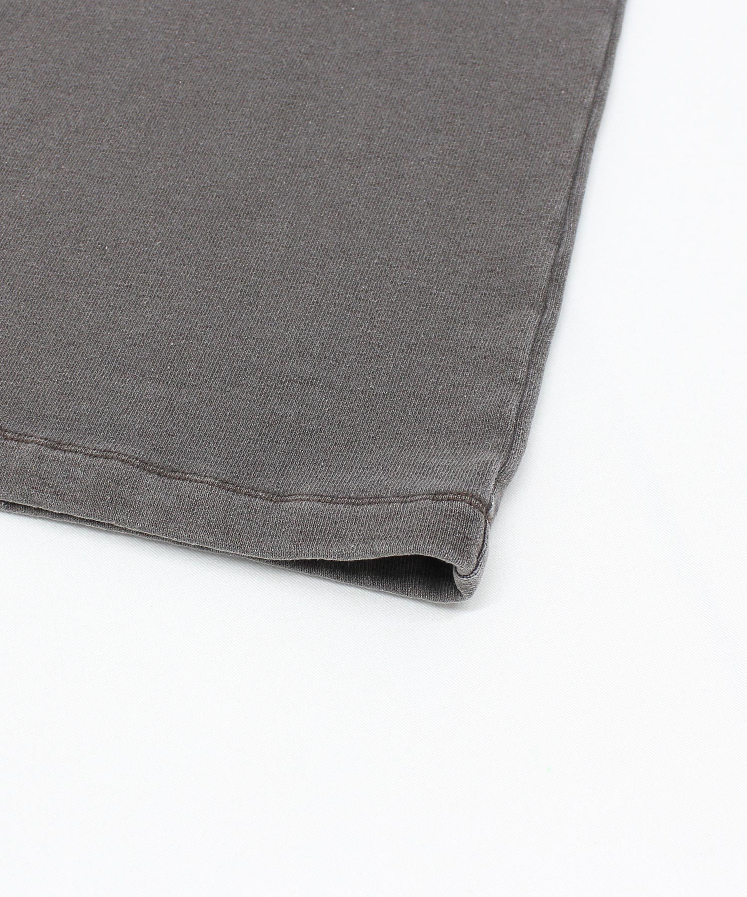 太番手のオープンエンド糸特有のうねりがピグメントの色落ちと色溜まりを際立たせより古着ライクな仕上がりになっています。