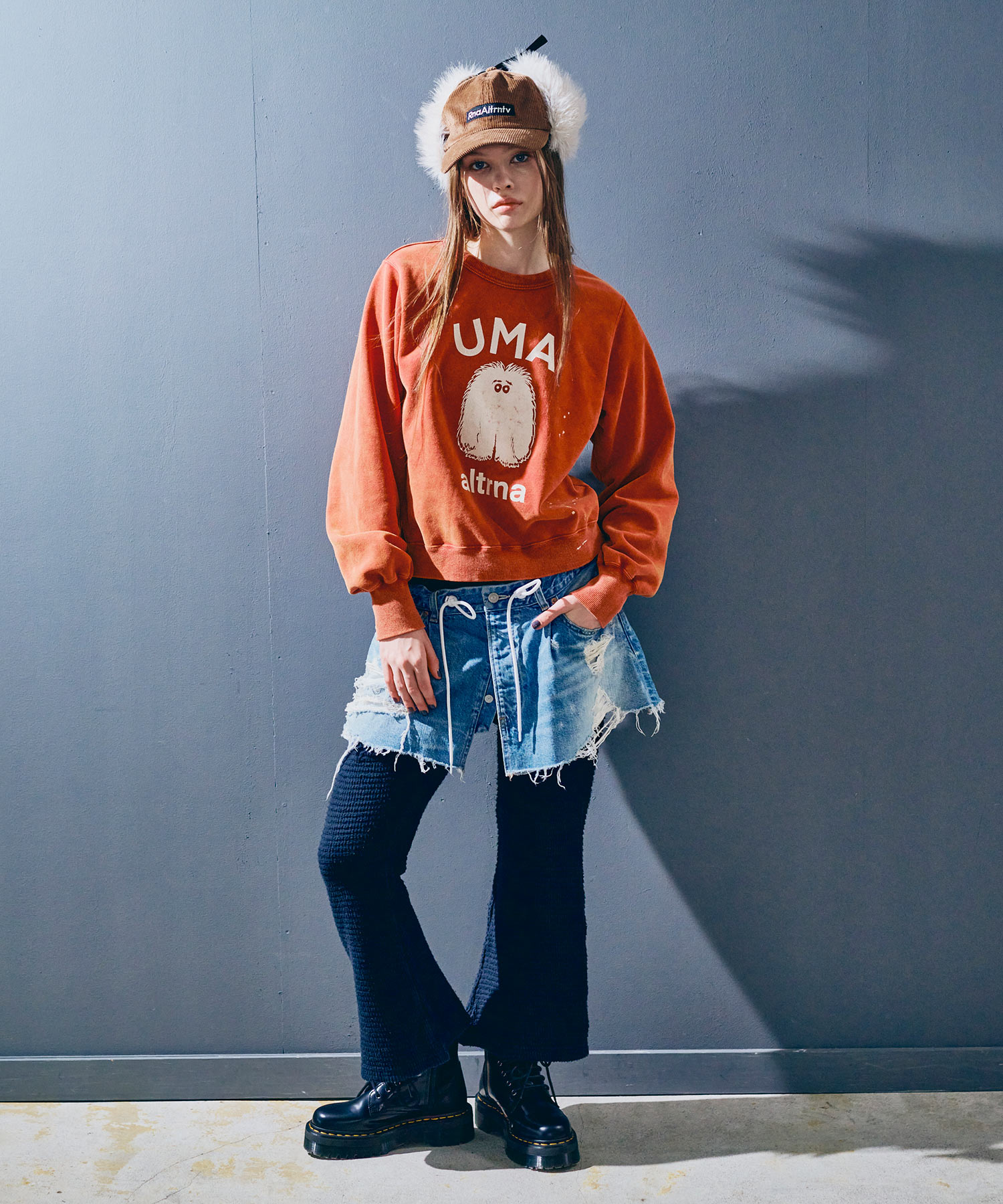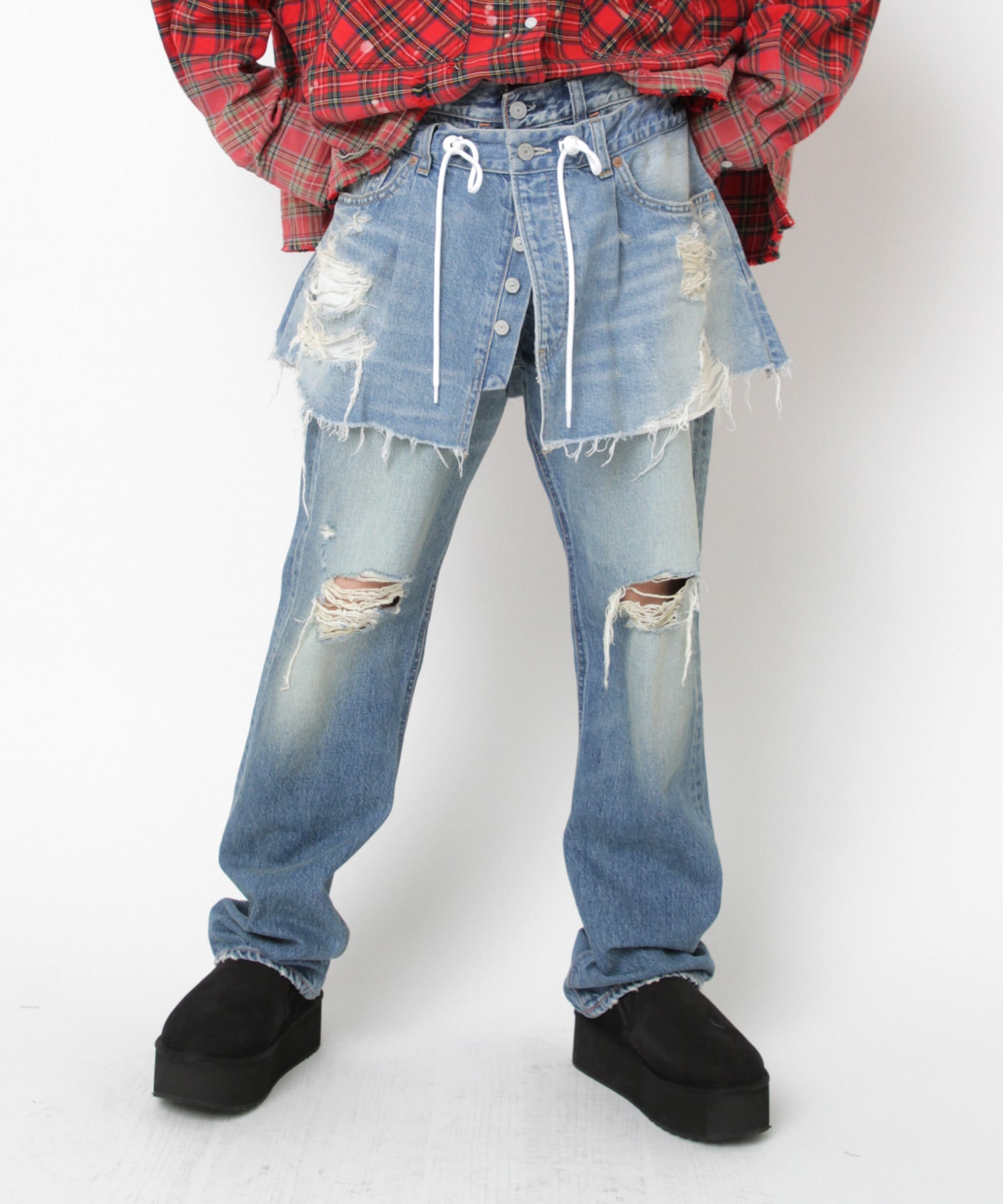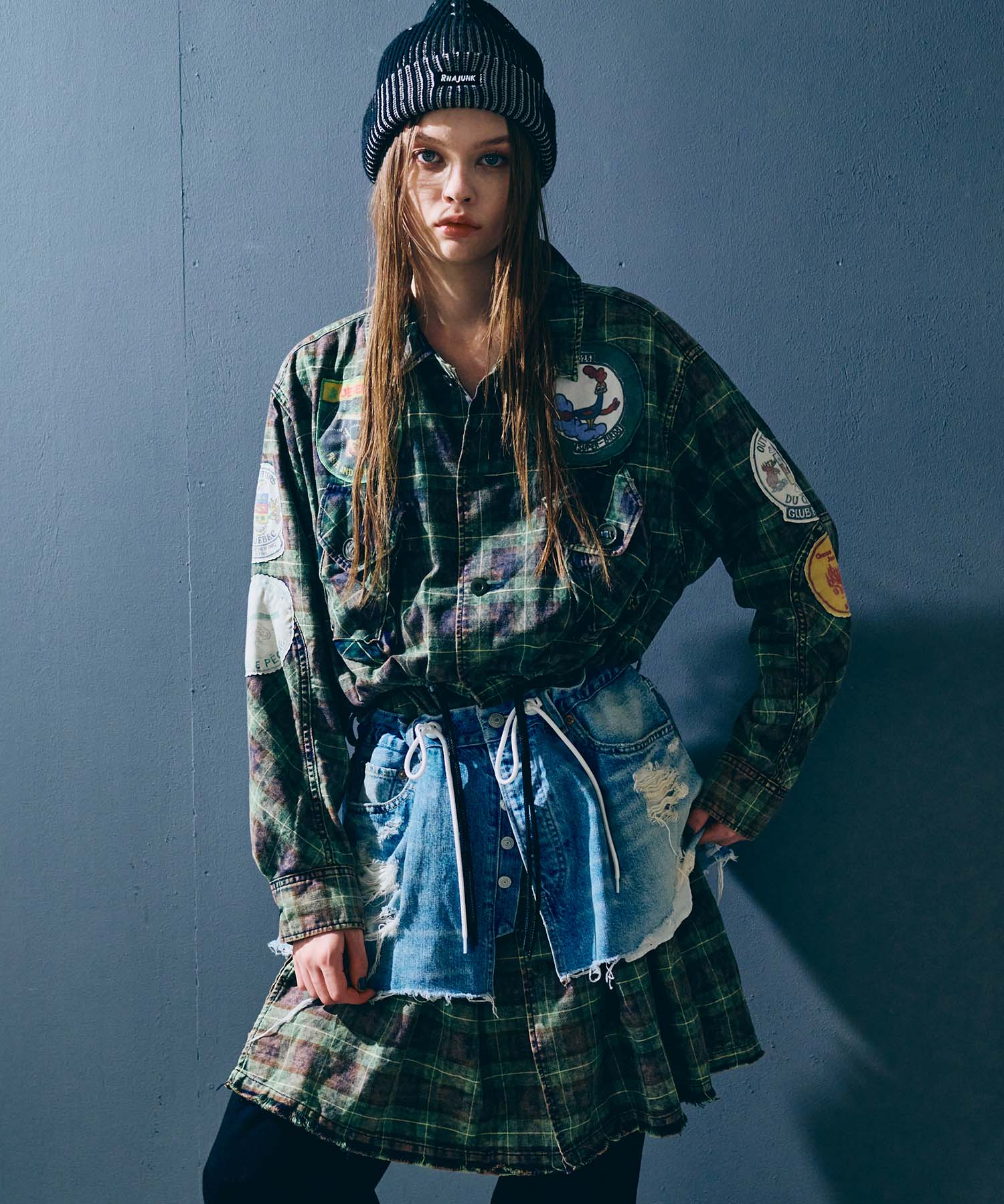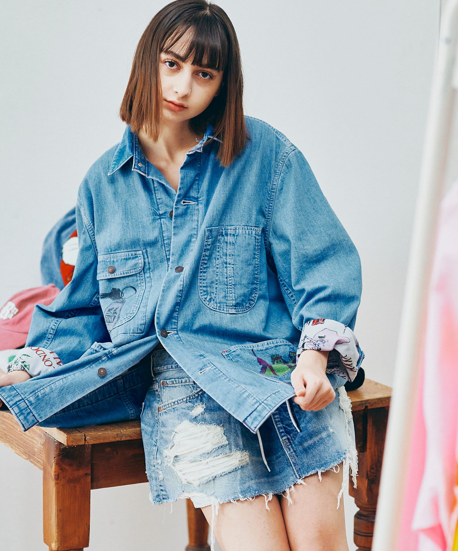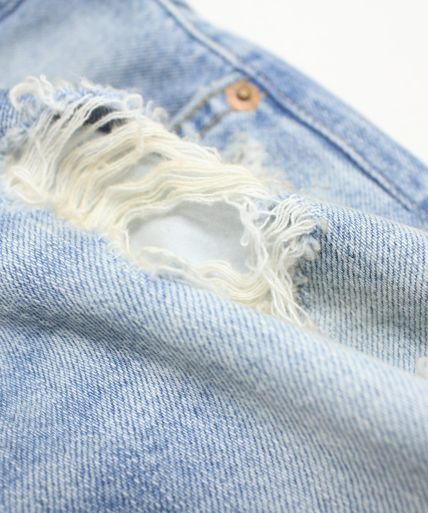 ベースにはしっかりと中古加工を施し、大胆なダメージを入れることでリアルな古着のような存在感を持たせています。