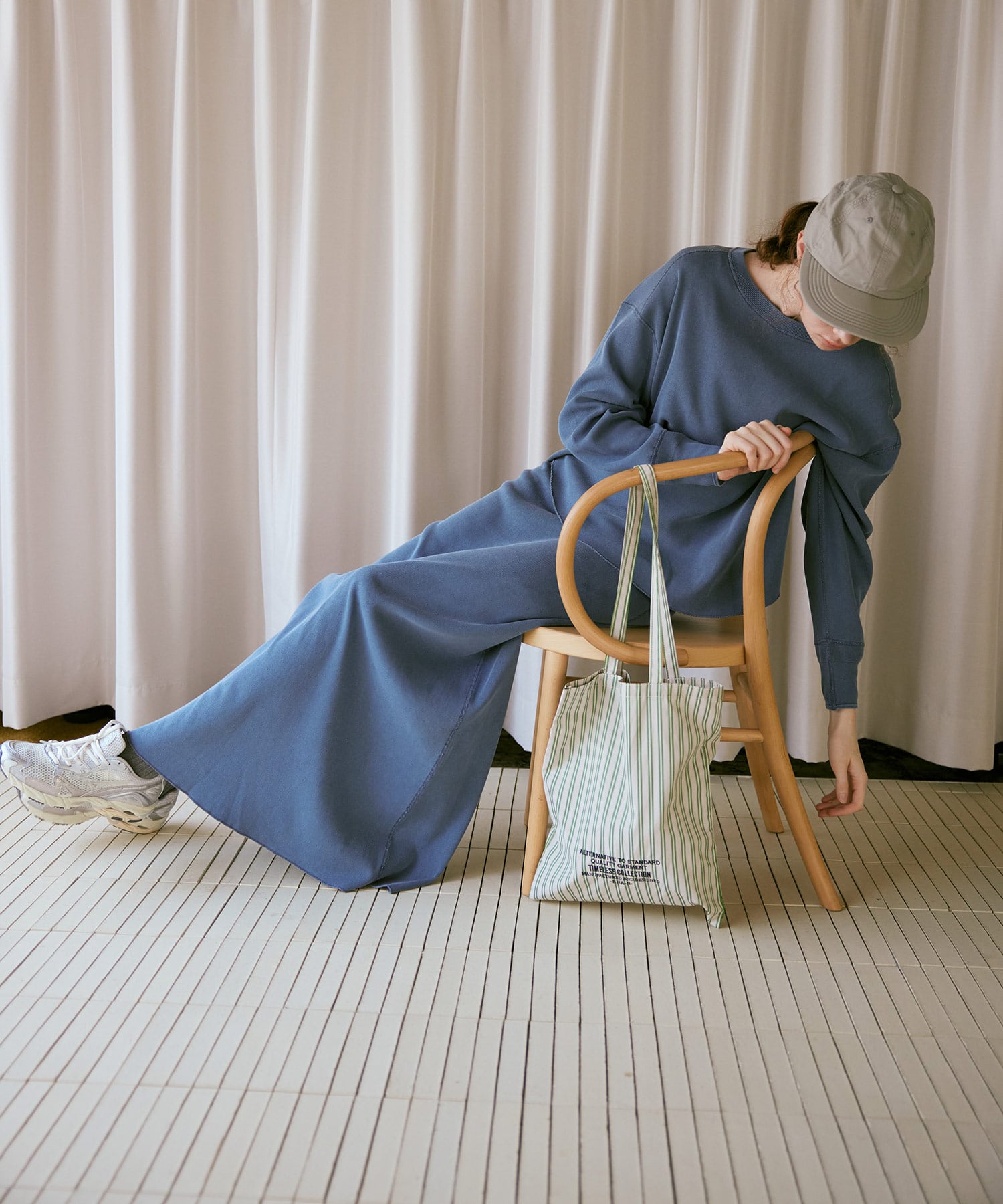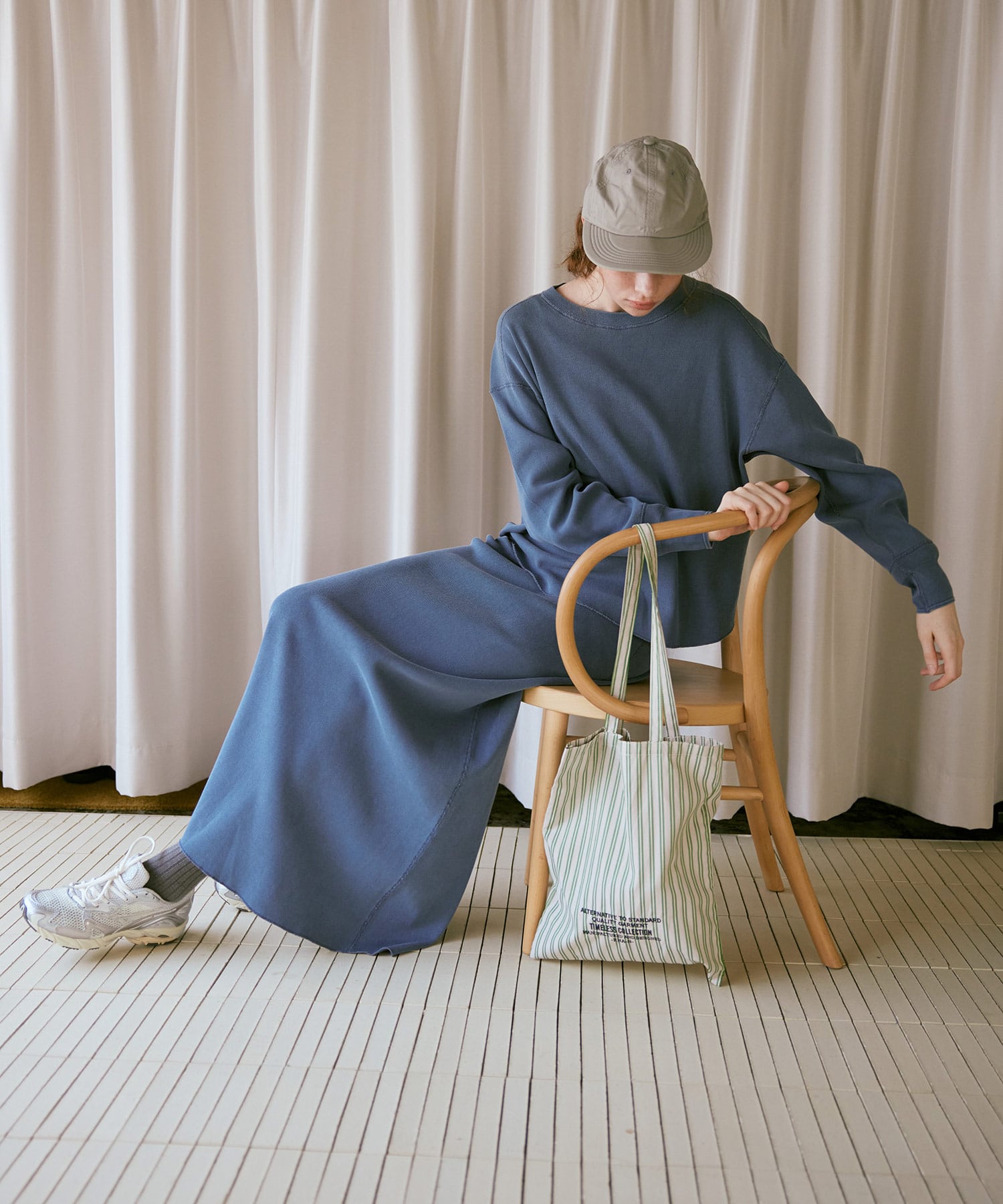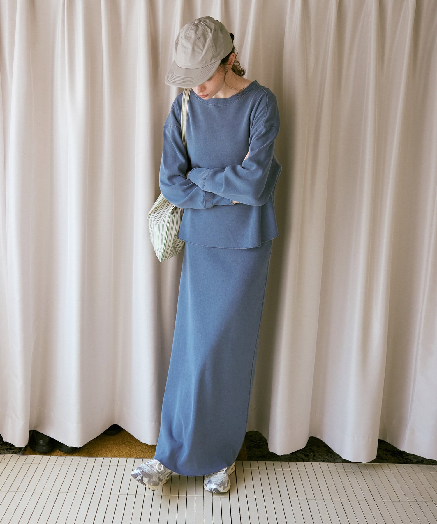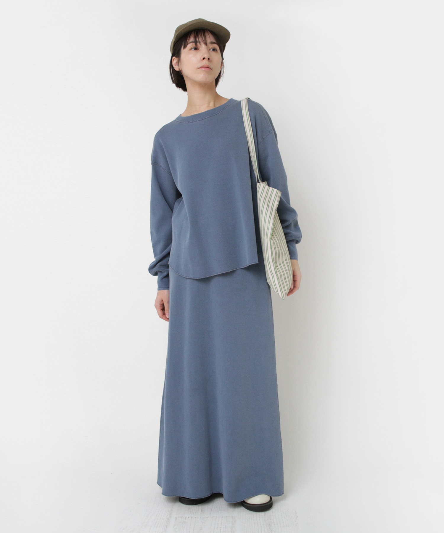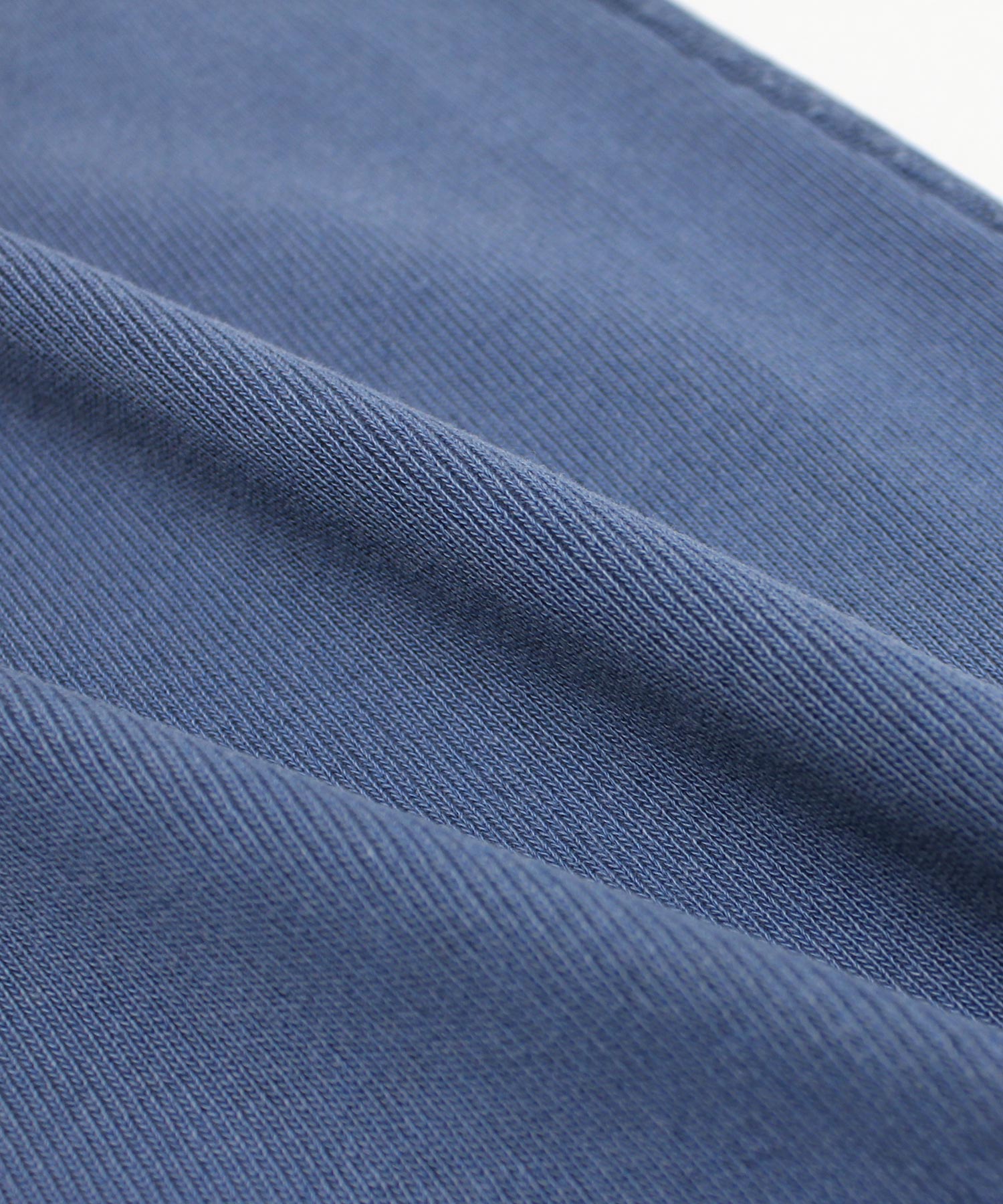顔料染めで仕上げたコットンフライス生地は、柔らかく肌に寄り添いながらも、表面にはざっくりとした凹凸が特徴。
