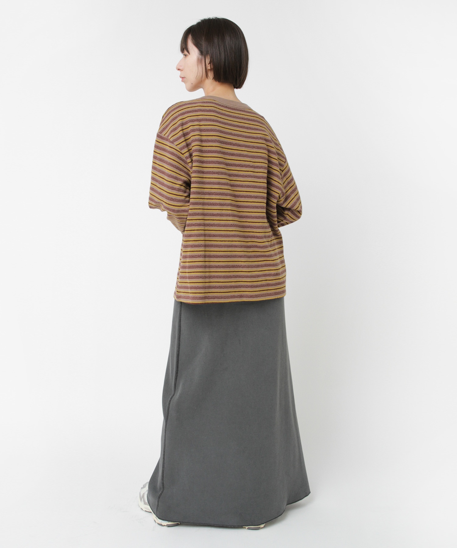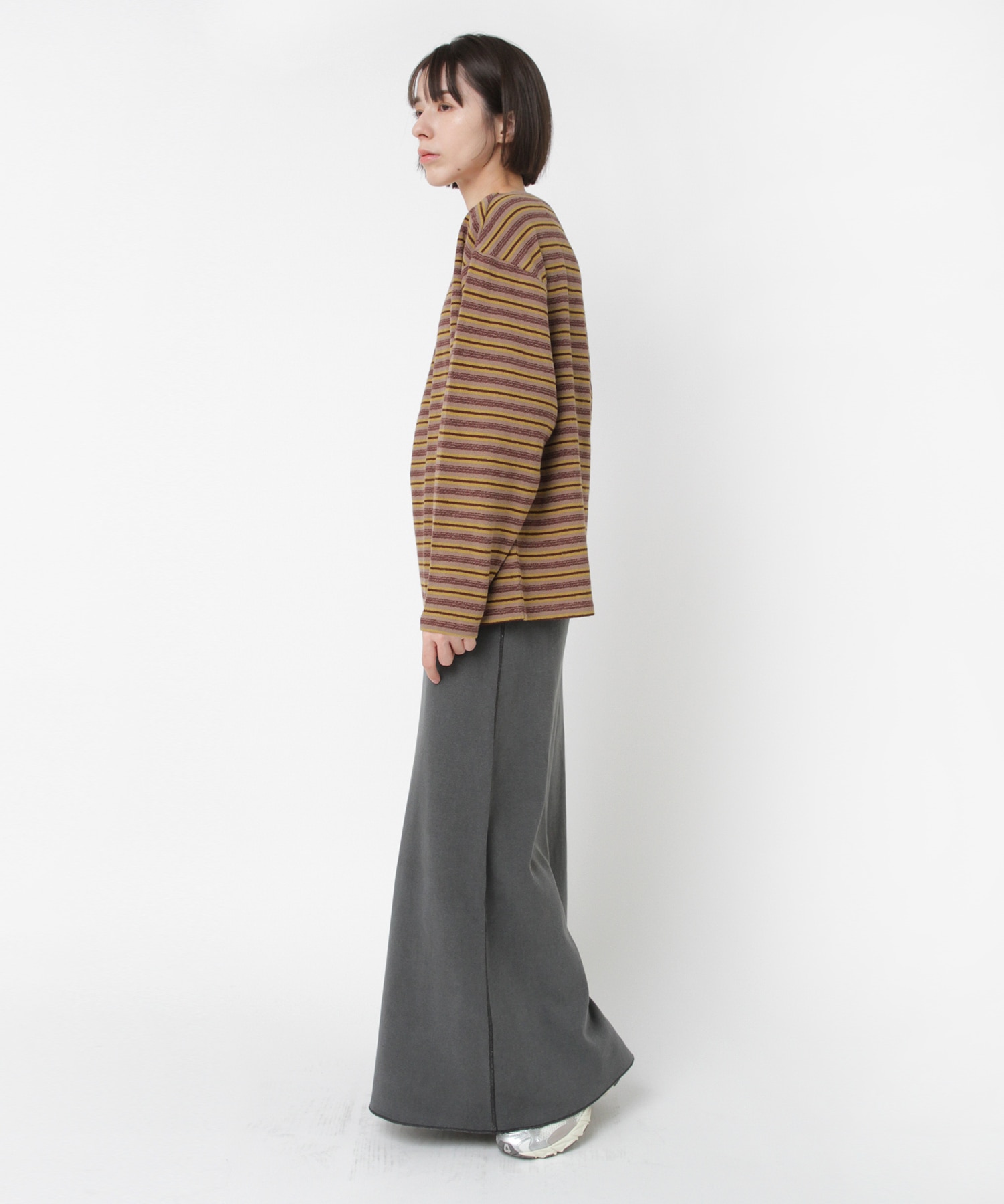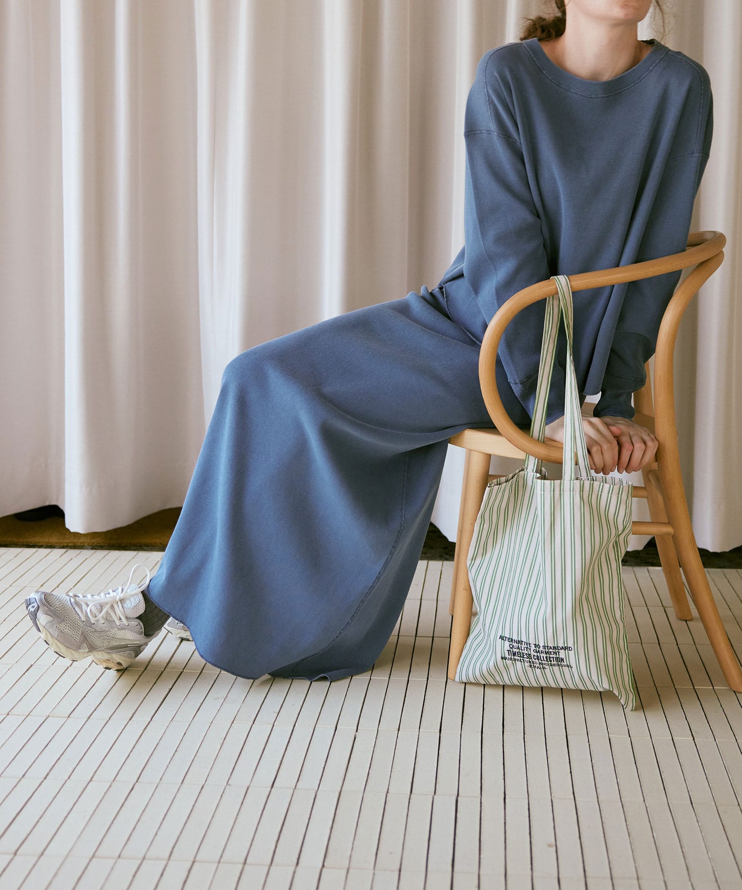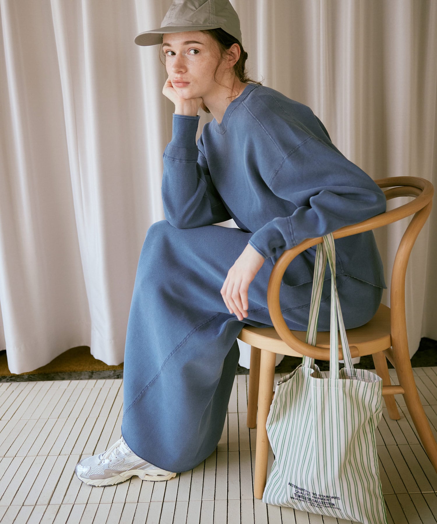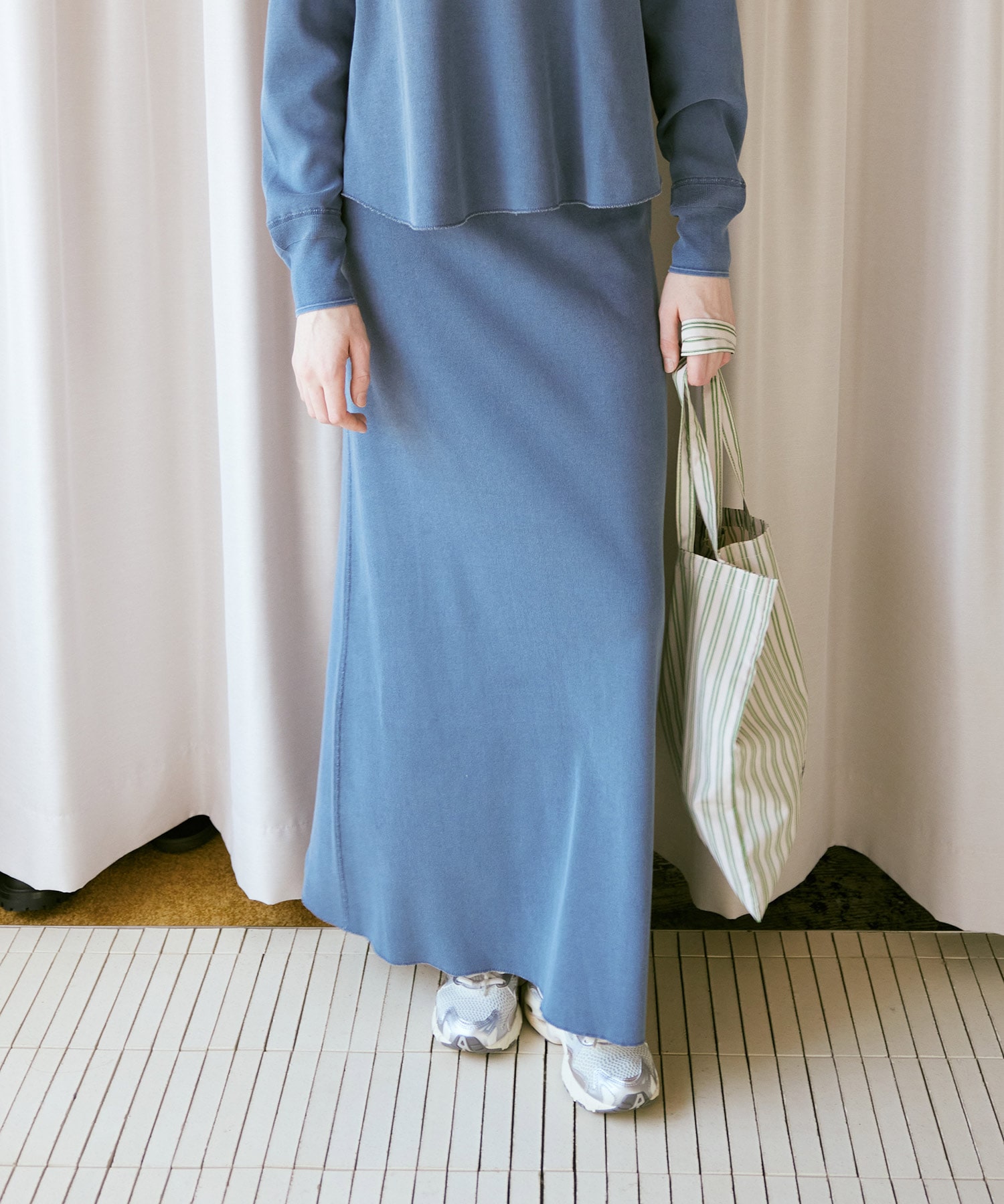 顔料染めで仕上げたコットンフライス生地は、柔らかく肌に寄り添いながらも、表面にはざっくりとした凹凸が特徴。
