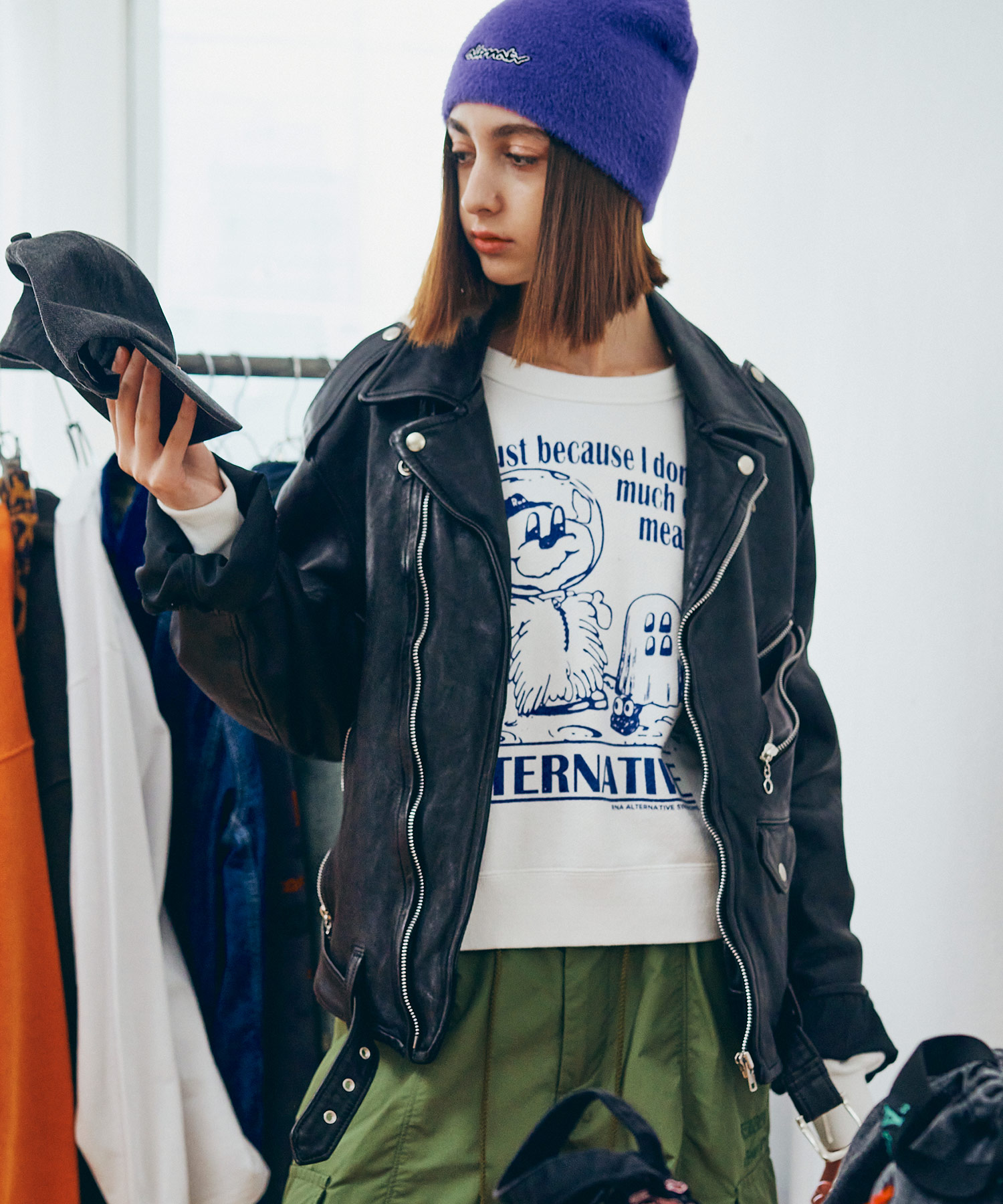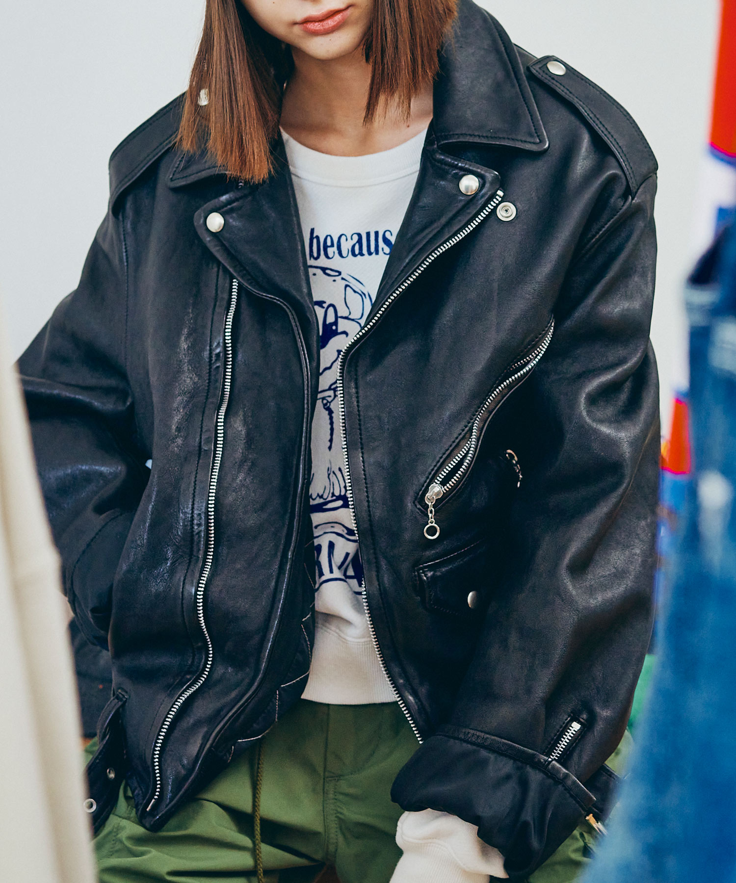 ライダースジャケットがストリートスタイルとして定着した1950年代のビンテージライダースのパターンやライダースJKを取り巻く、サブカルチャーの背景を重ね合わせて作成しました。