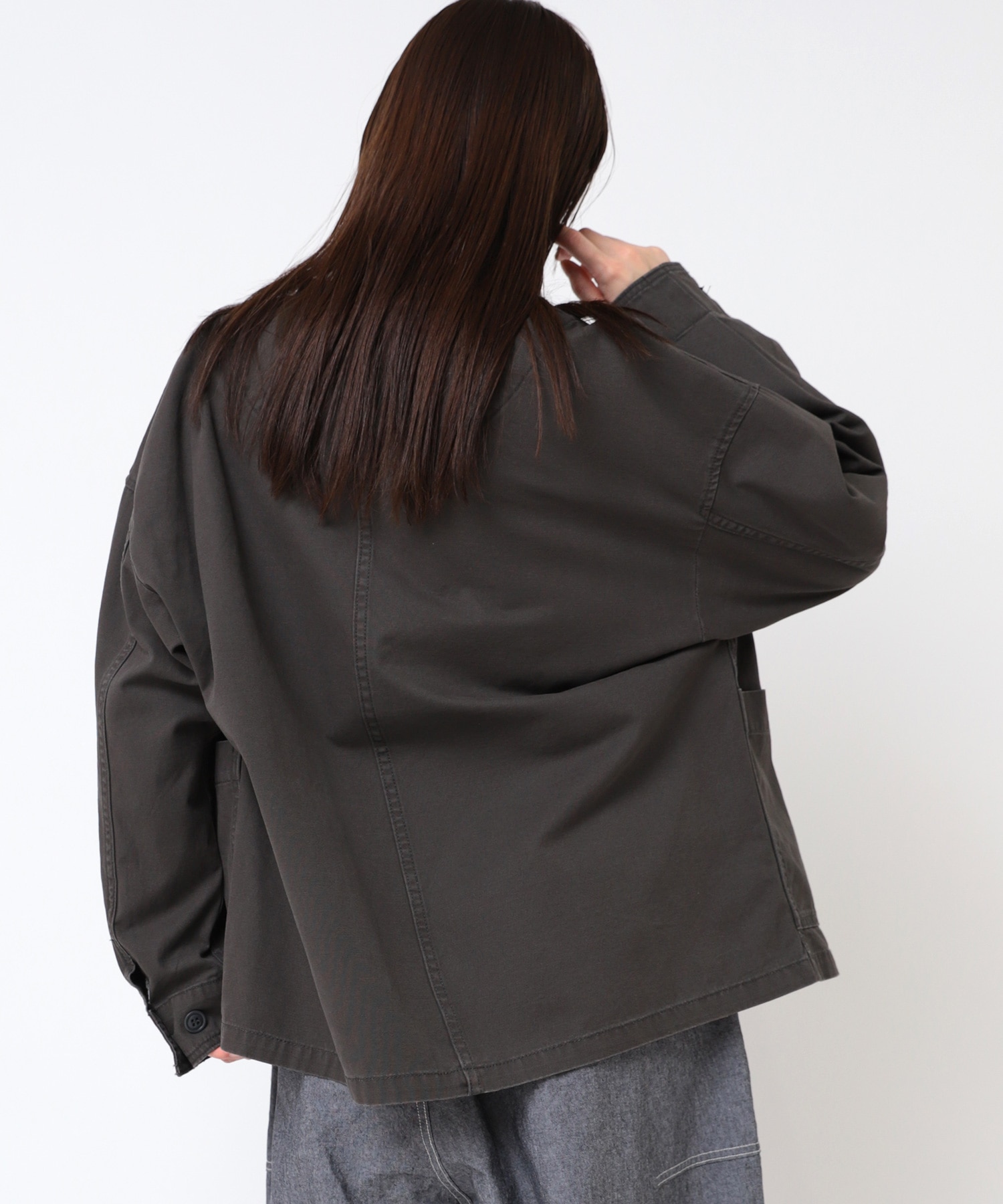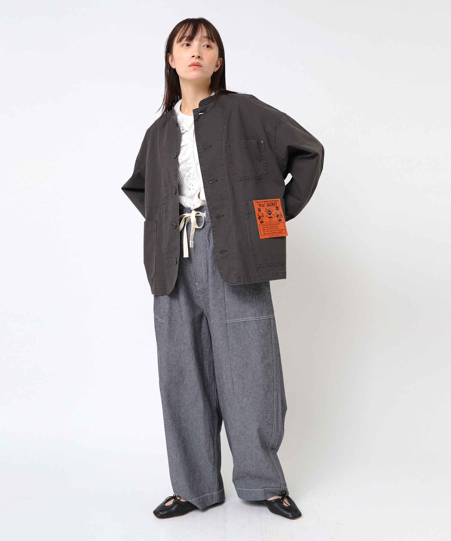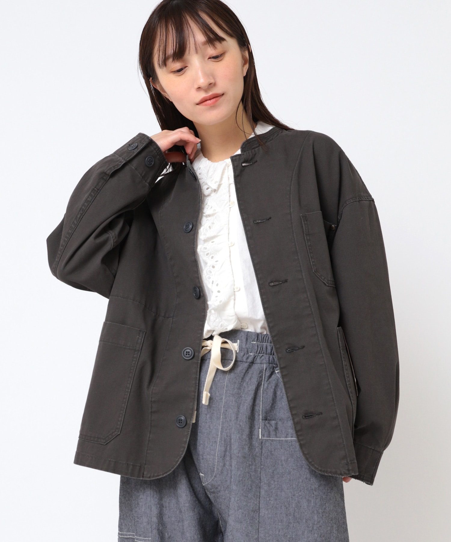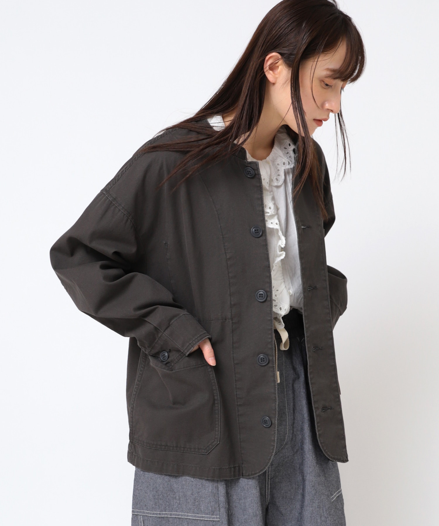 ヴィンテージワークテイストの小さな立ち衿と右胸の内ポケットがポイントです。